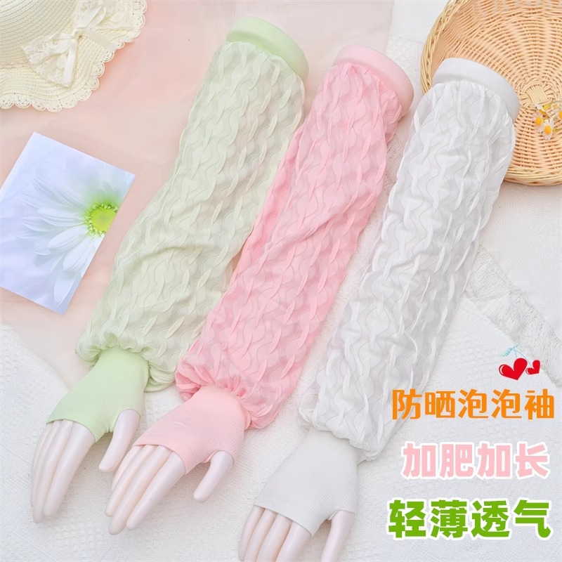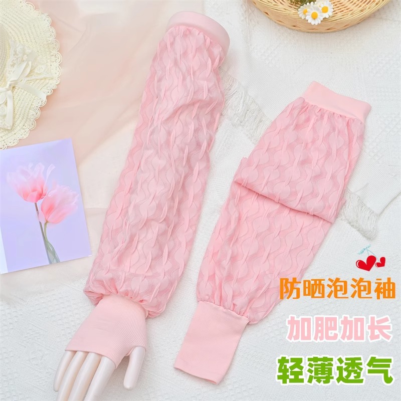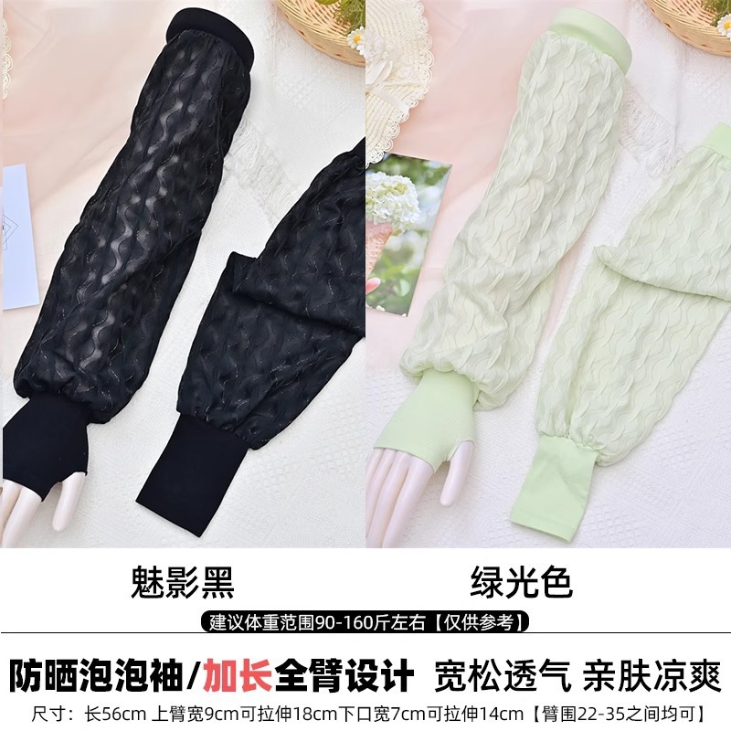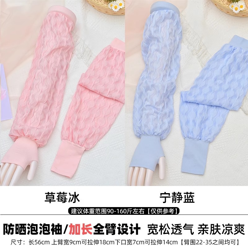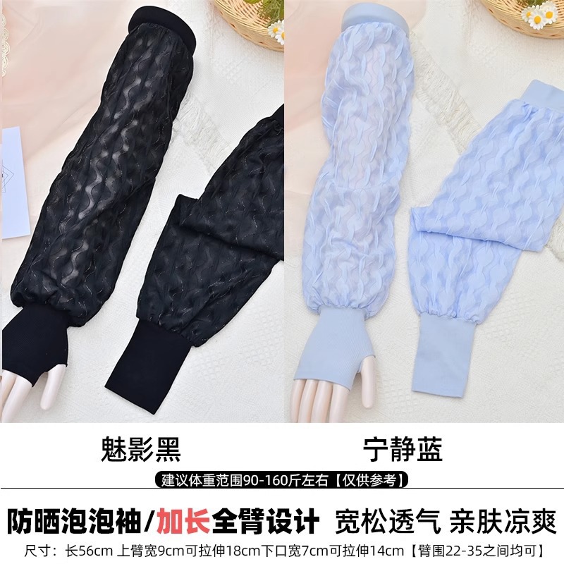 2025新款防晒冰袖女夏季罗口宽松加大户外骑行护臂冰丝防晒泡泡袖