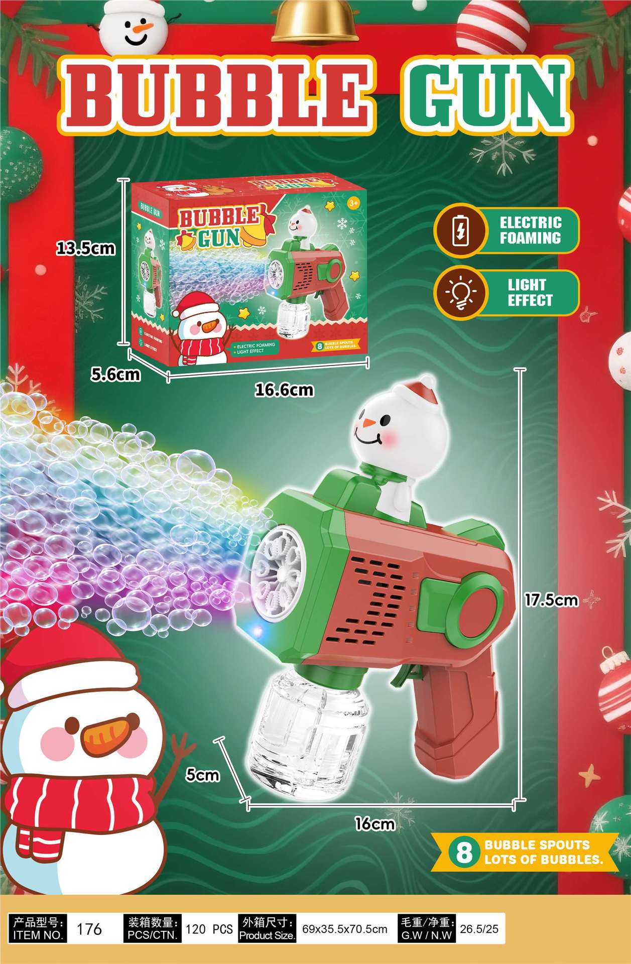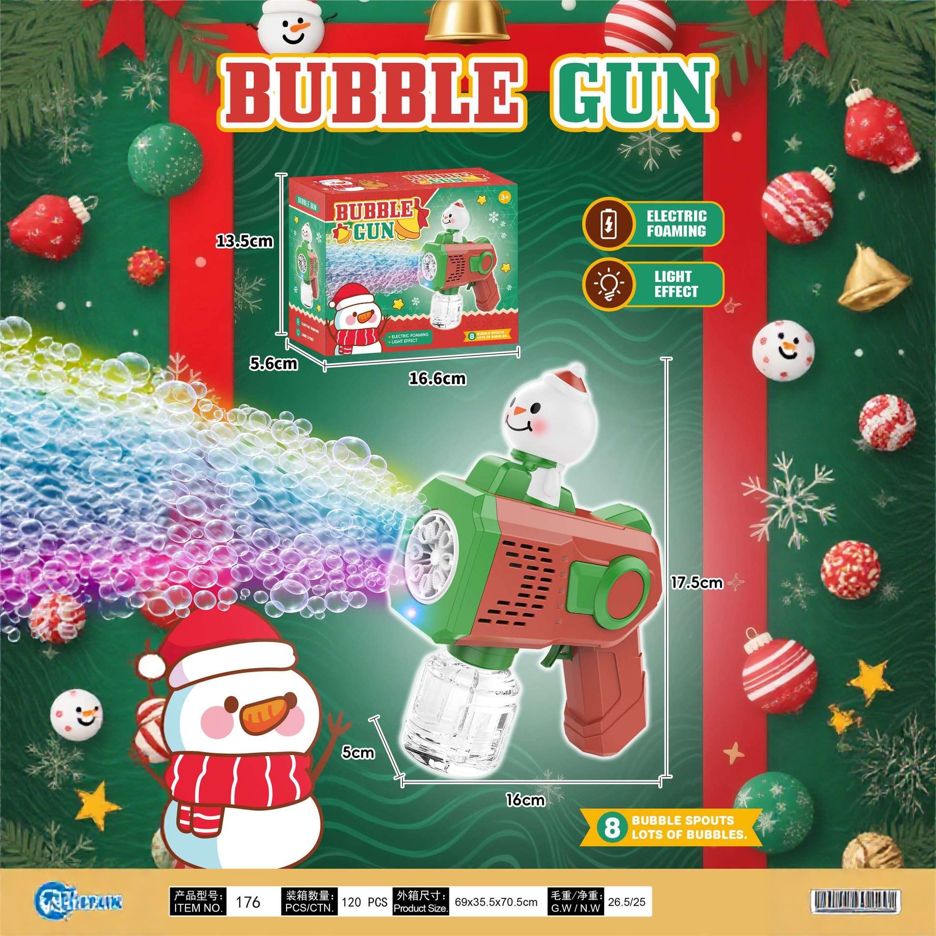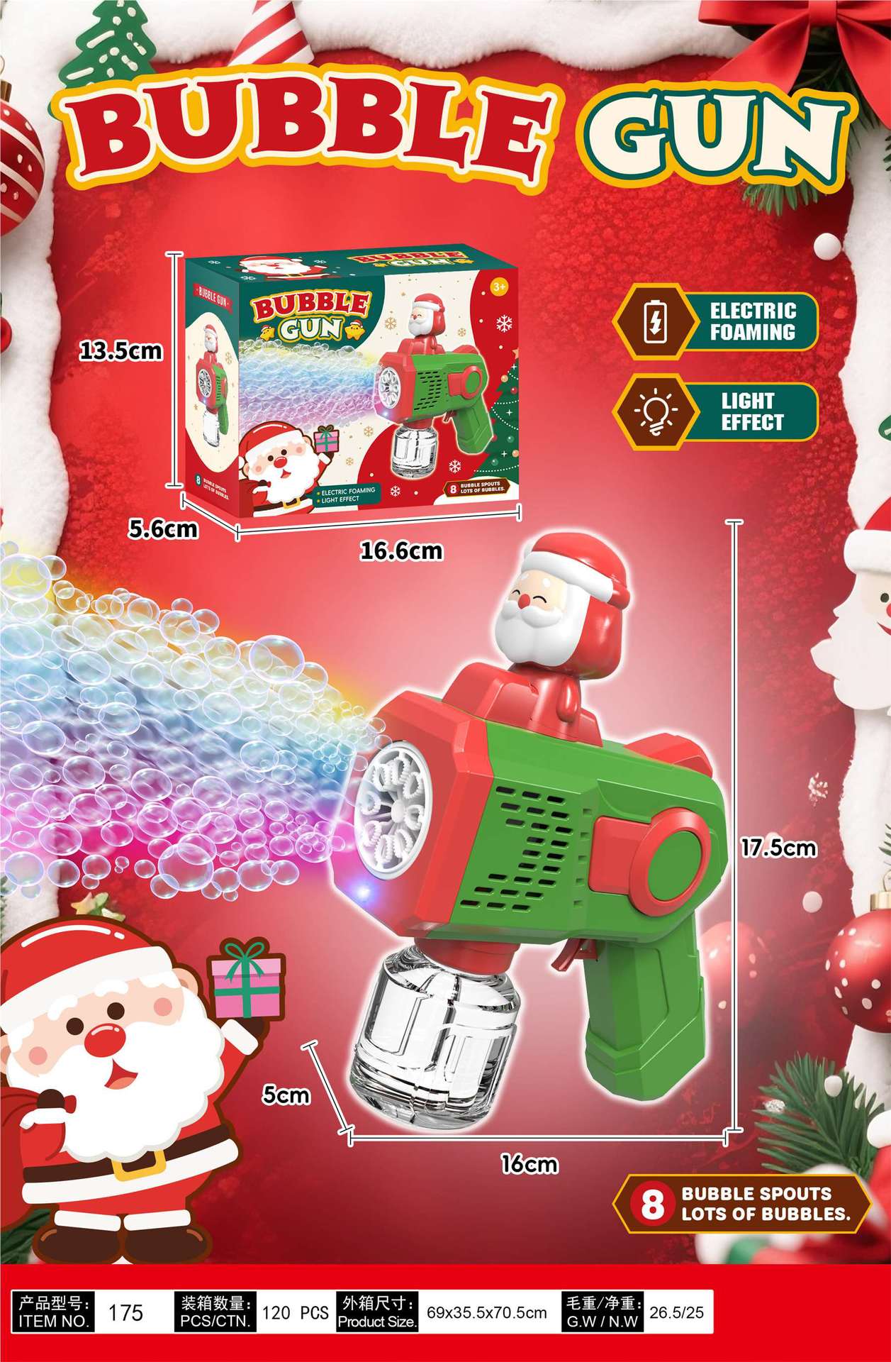 新款儿童全自动手持泡泡枪8孔圣诞节圣诞老人自动泡泡机带灯光