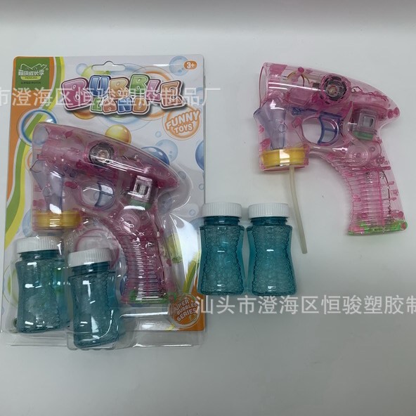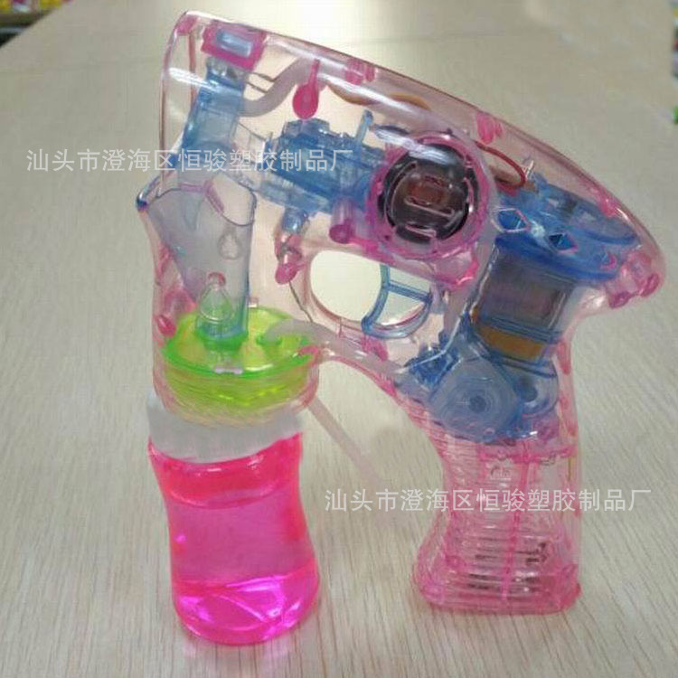 专供电商新款儿童透明音乐灯光全自动泡泡枪配2瓶水电动泡泡玩具