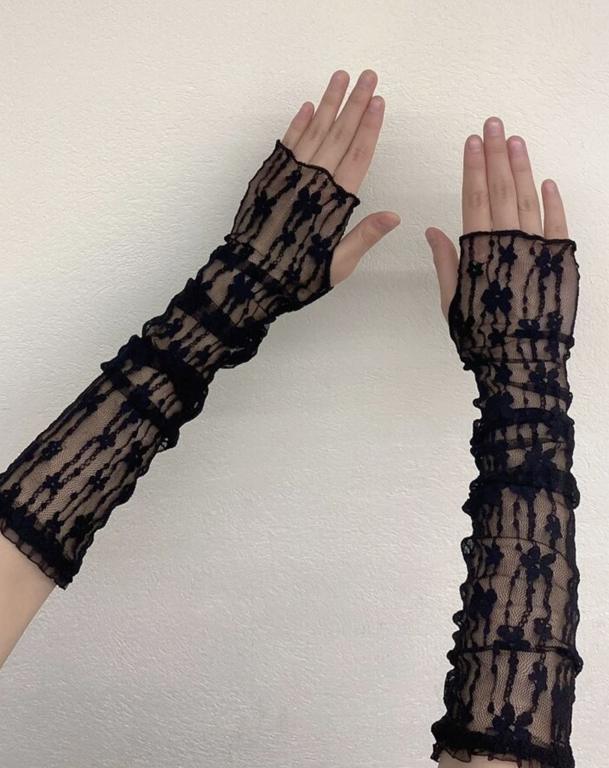 蕾丝防晒袖套女夏季薄款防紫外线冰袖子开车骑行冰丝护臂手臂套潮