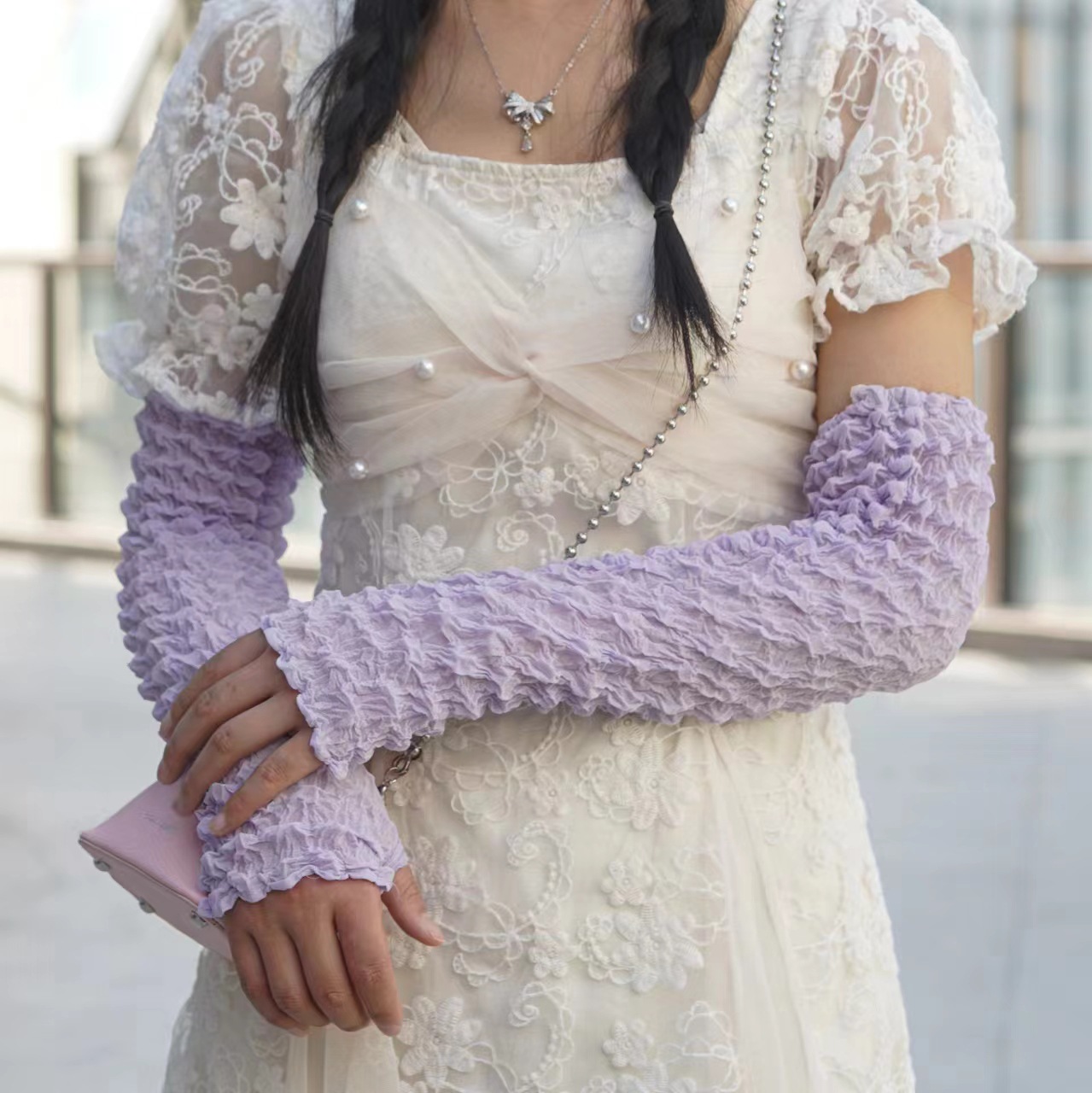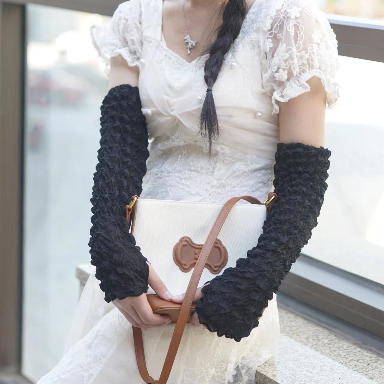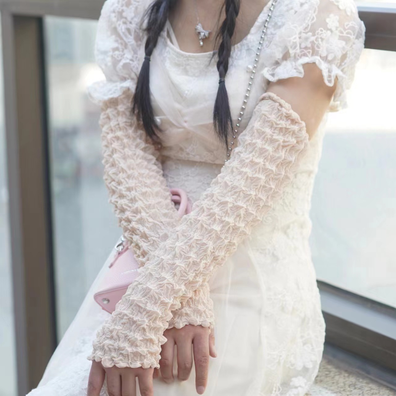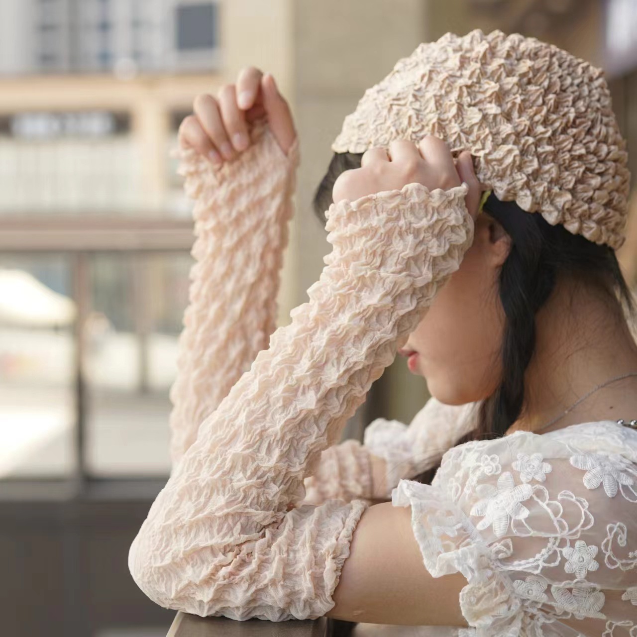 日韩夏季防晒袖套雪纺泡泡褶皱袖套亲爽透气户外骑行防紫外线遮阳
