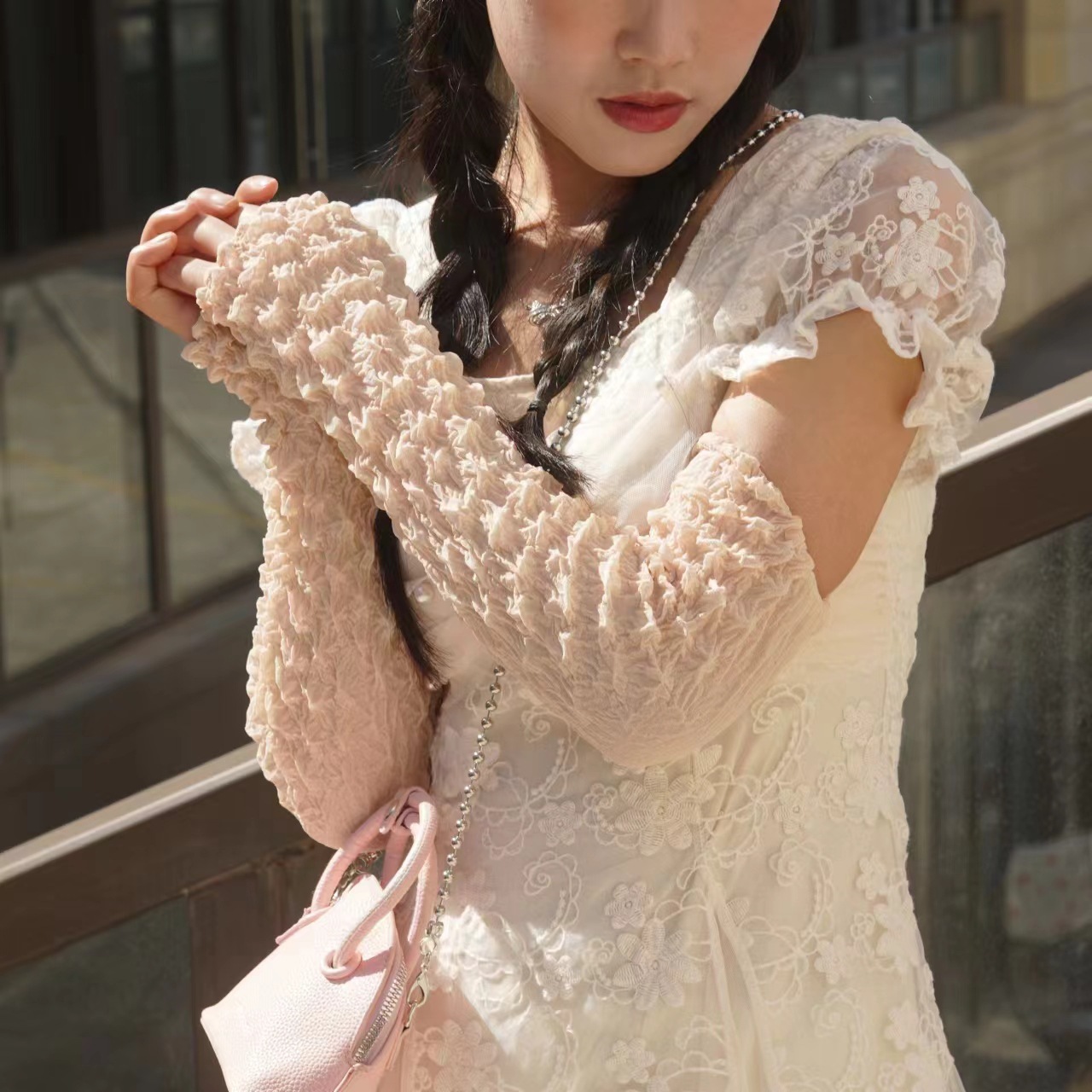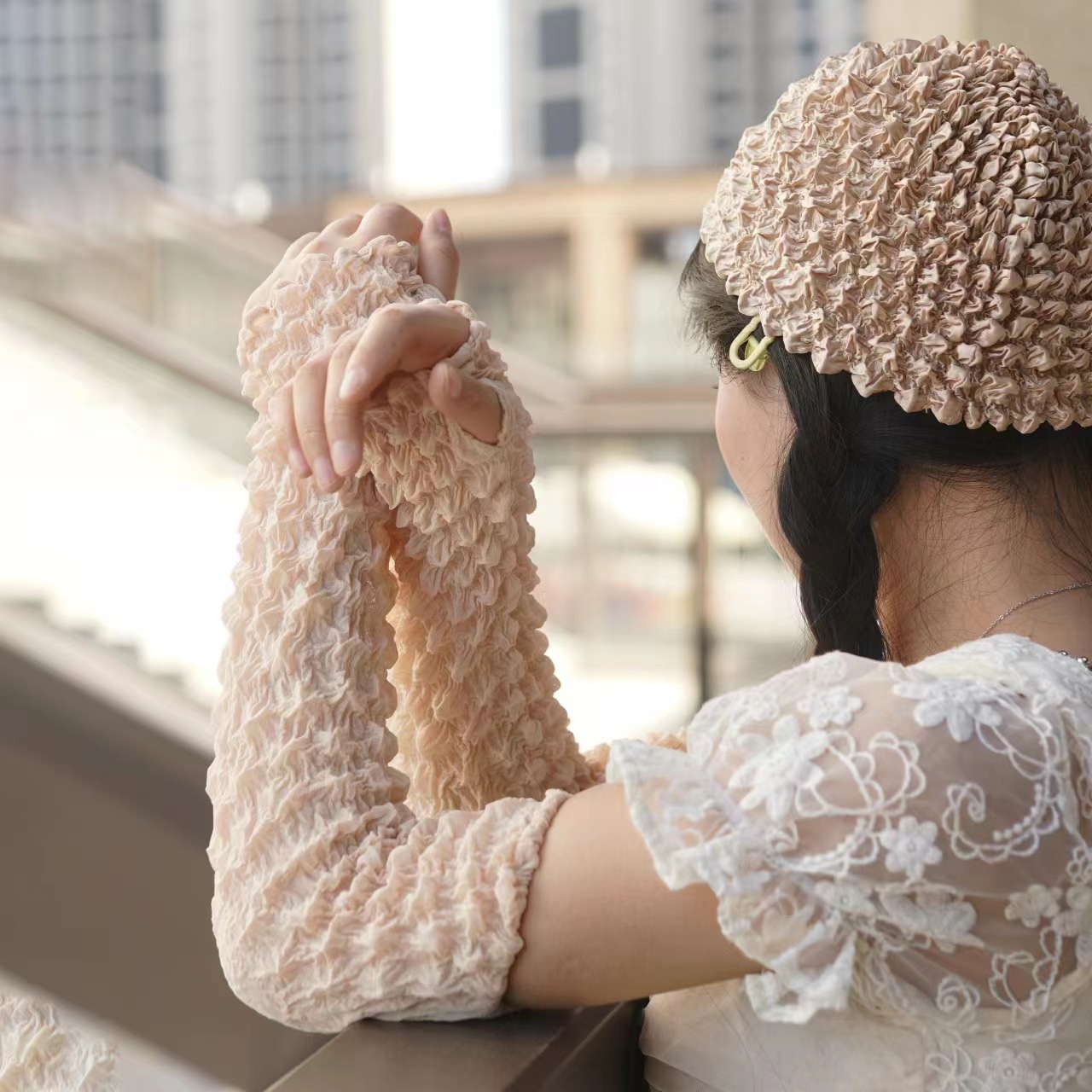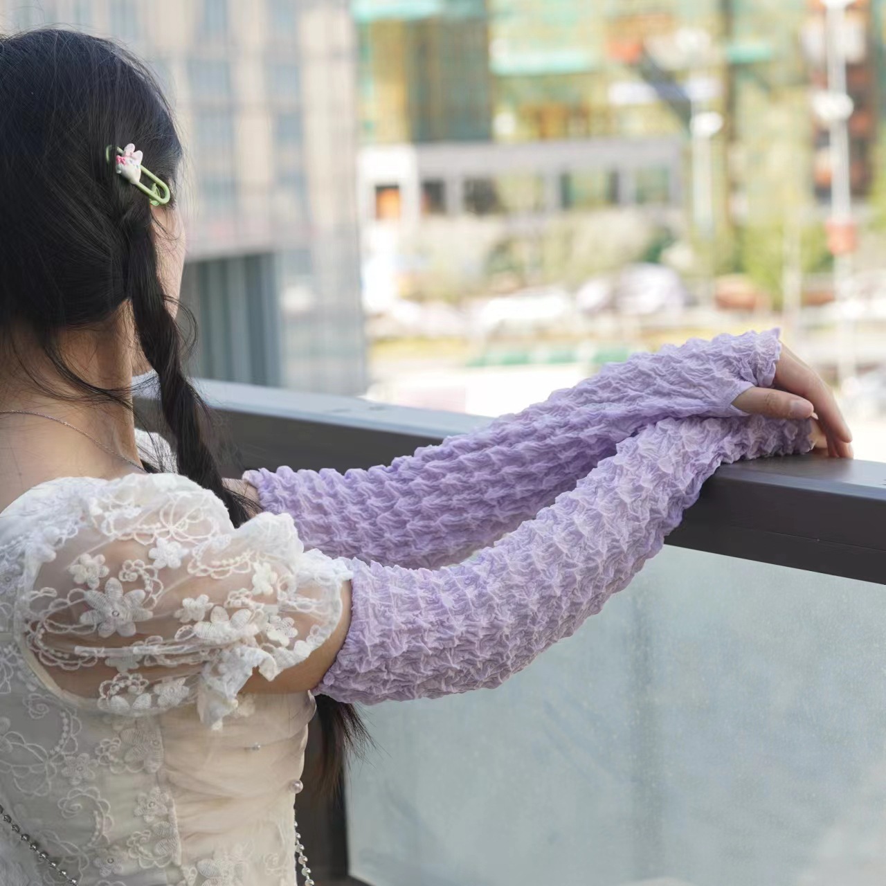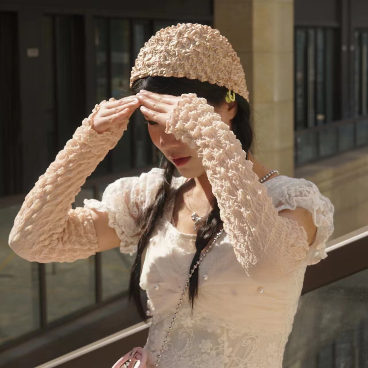 日韩夏季防晒袖套雪纺泡泡褶皱袖套亲爽透气户外骑行防紫外线遮阳