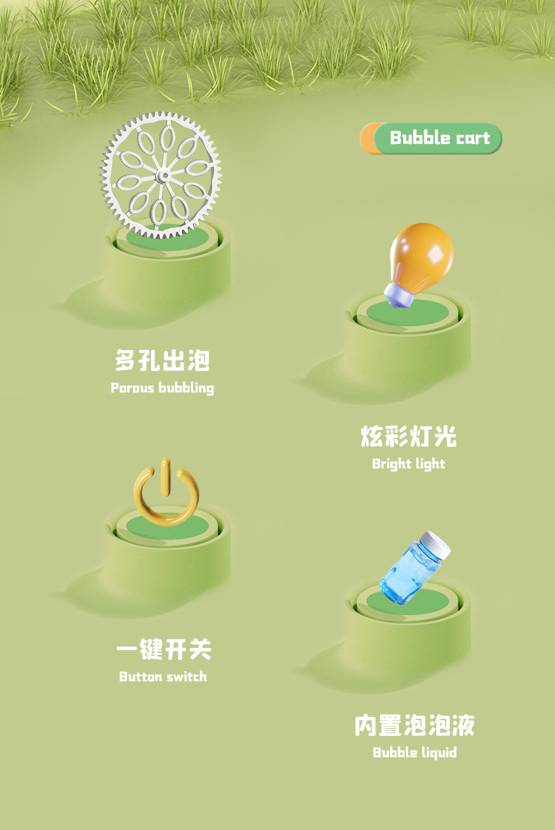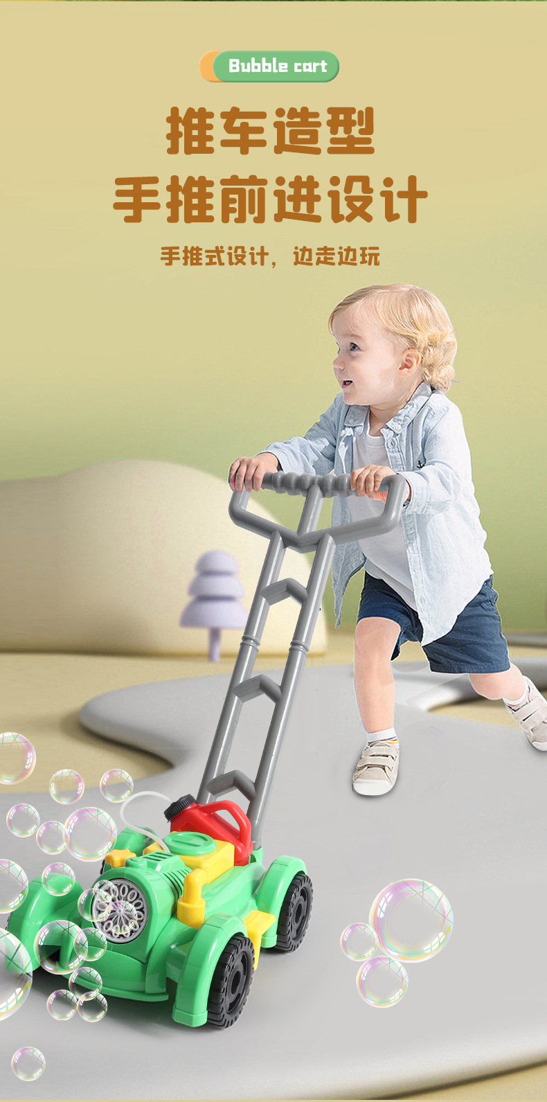 跨境儿童手推拖拉机泡泡机全自动灯光户外花园卡通男孩泡泡机玩具