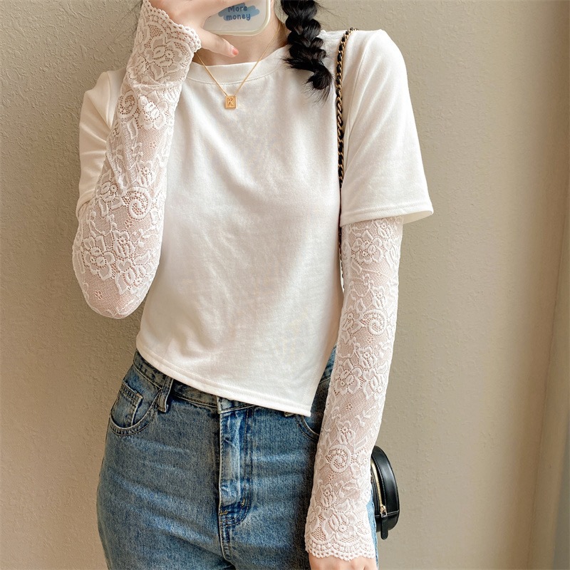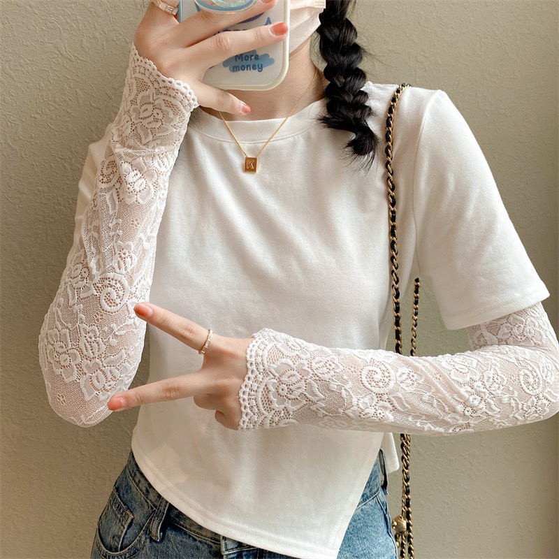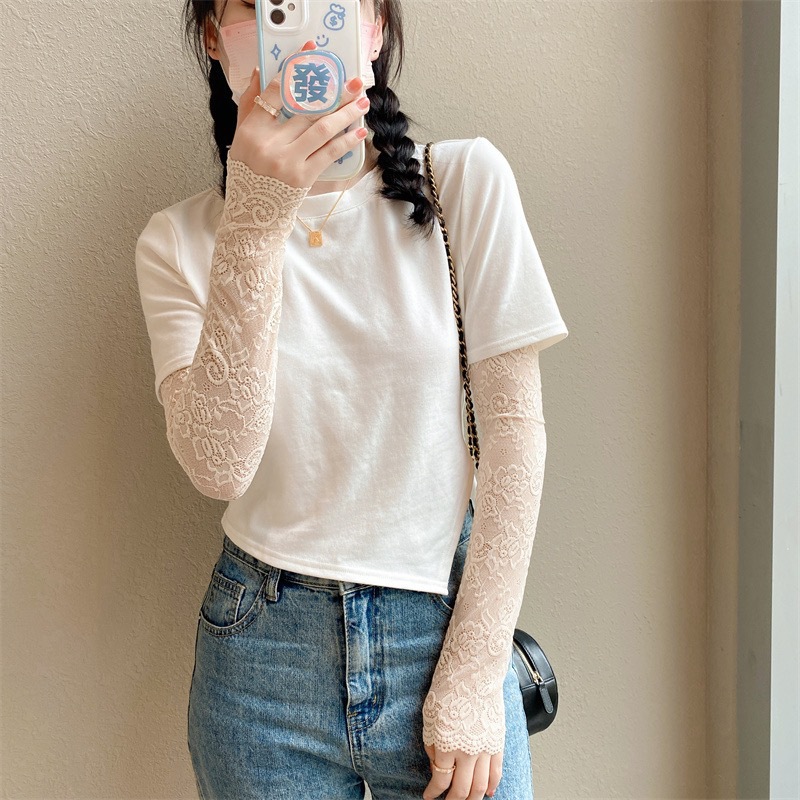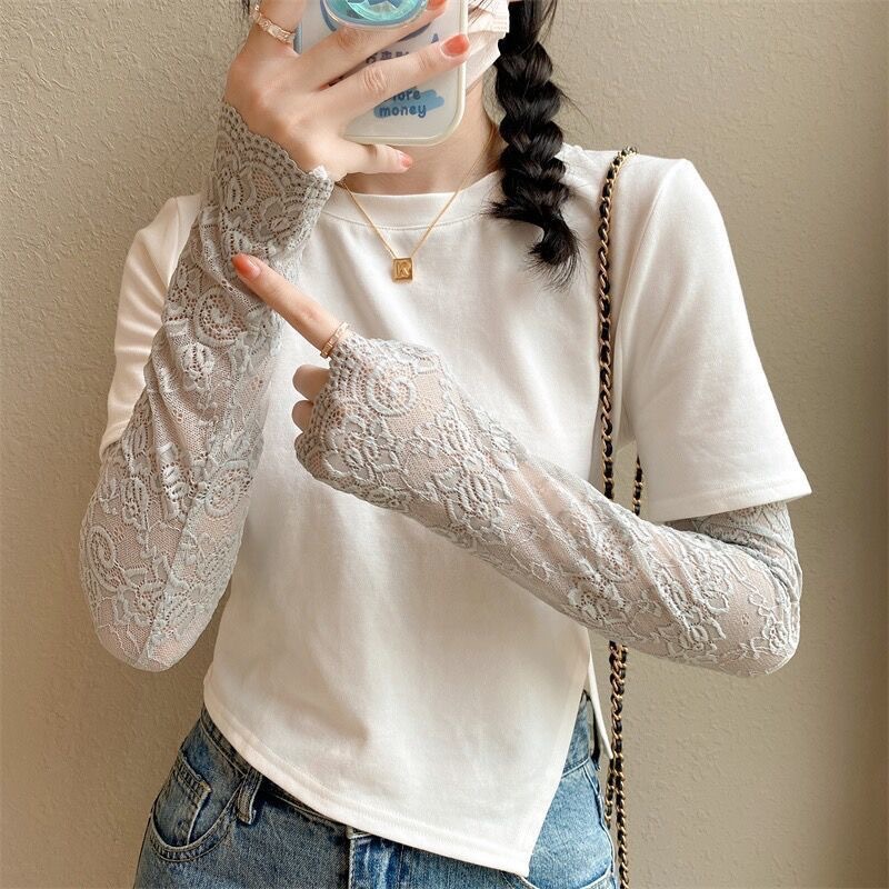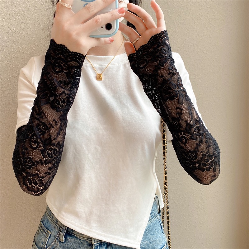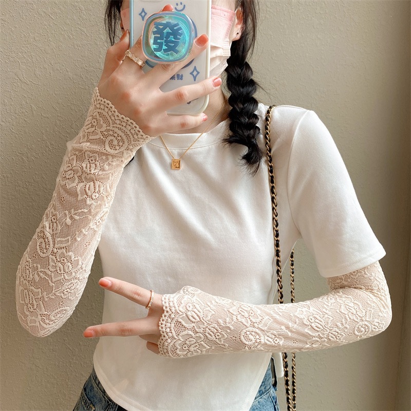 新款女夏季防晒手套冰蕾丝花边袖套开车挡手臂袖套长假袖子装饰袖