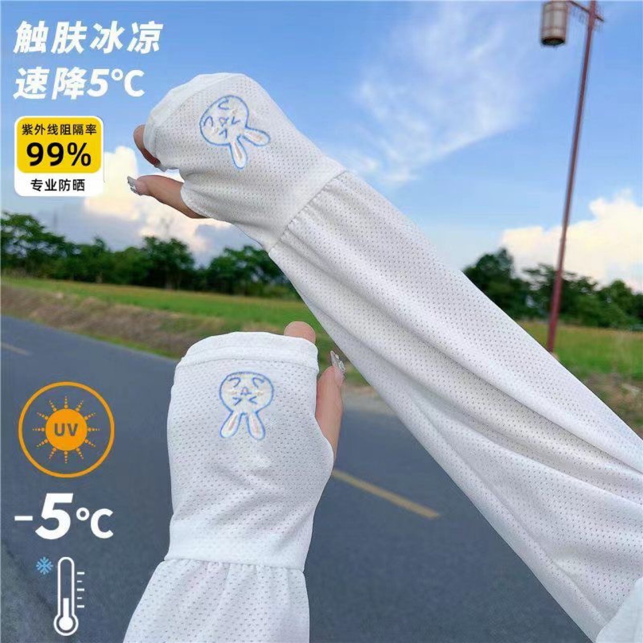 女防紫外线冰丝防晒袖套透气宽松加长薄款夏季免子护手臂套袖冰袖