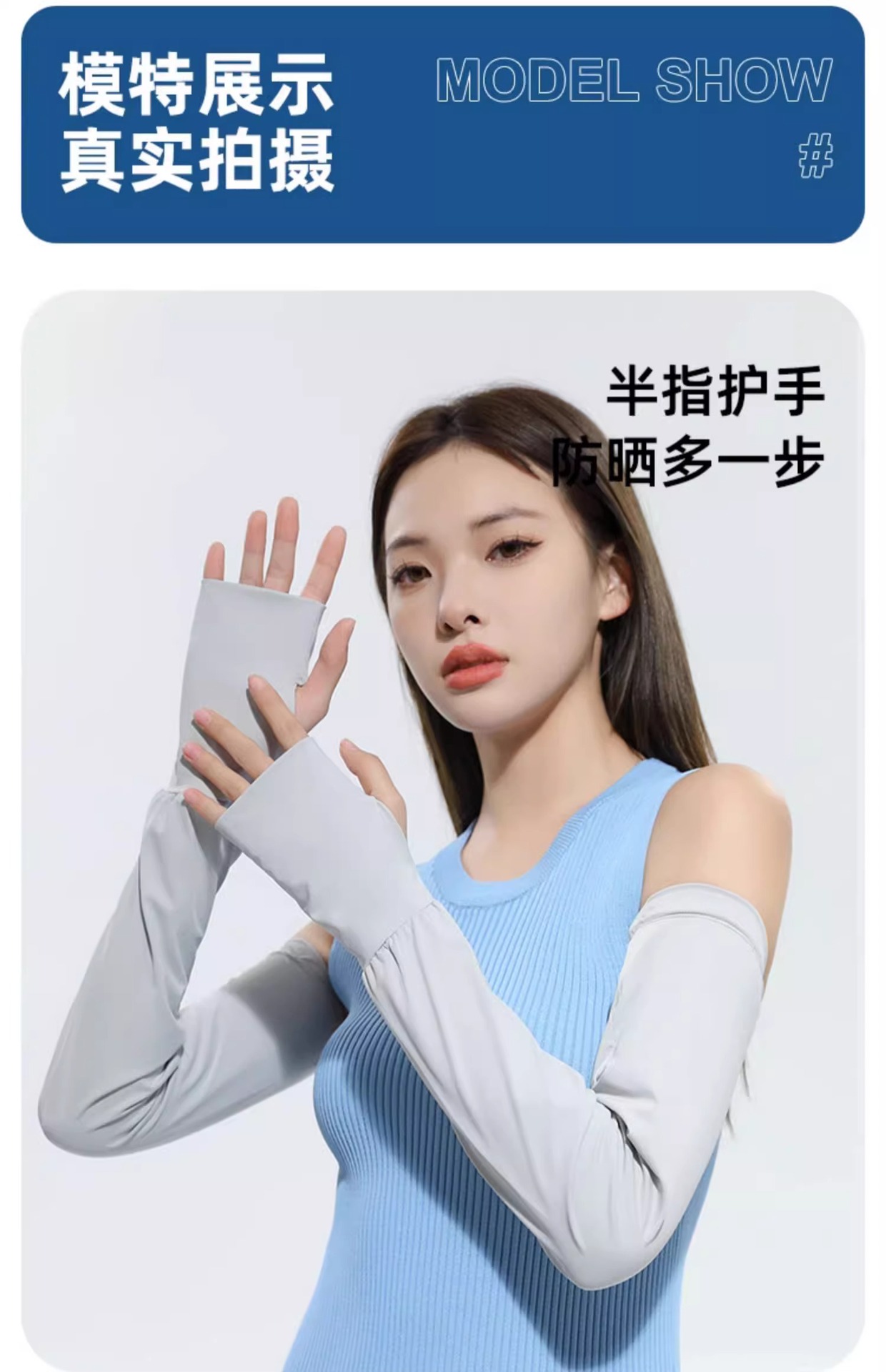 冰袖防晒套袖女夏季开车防紫外线宽松加长护臂薄款冰丝袖套露指