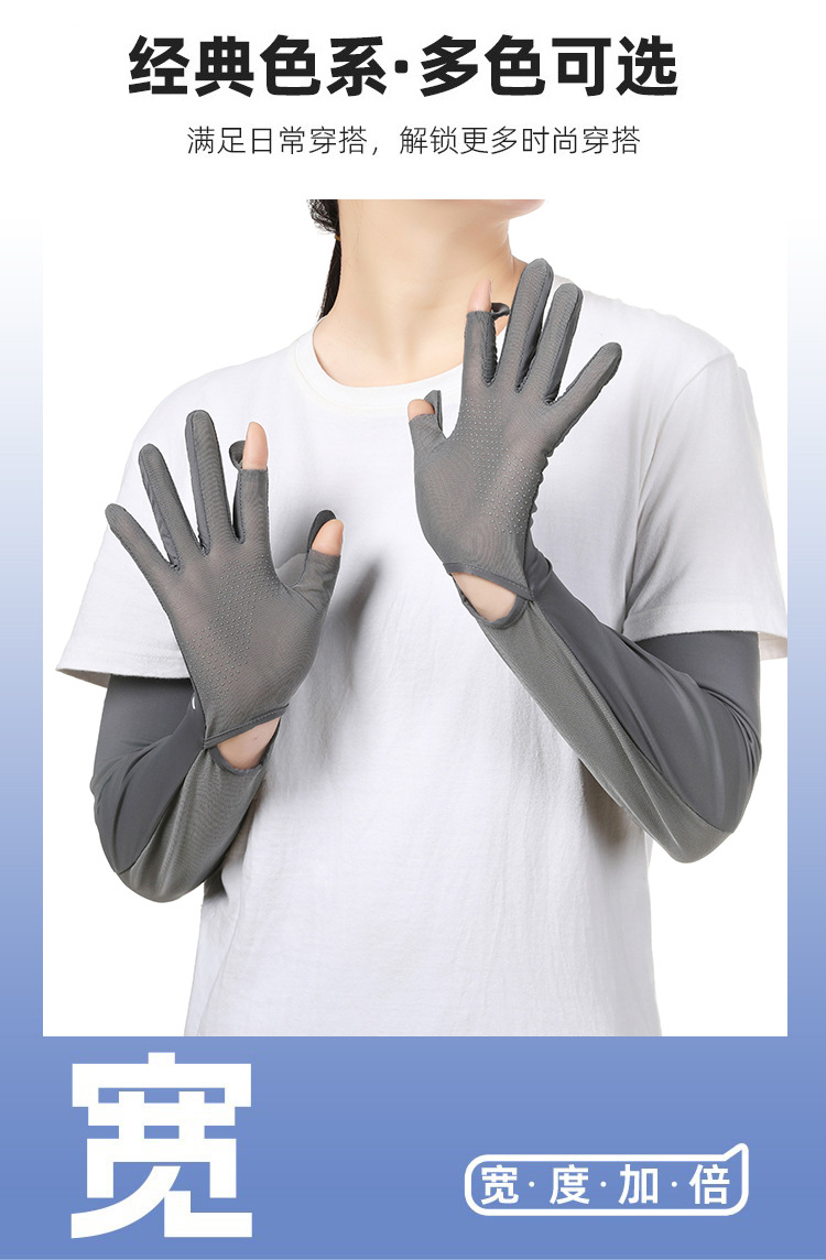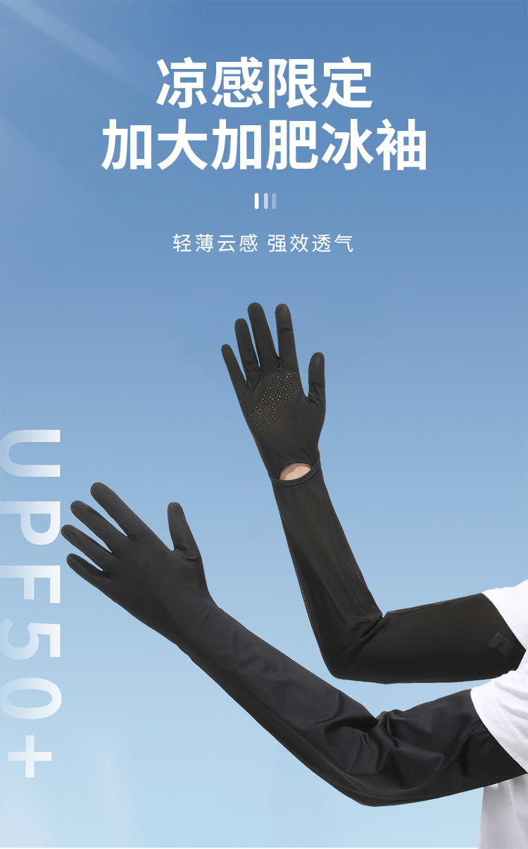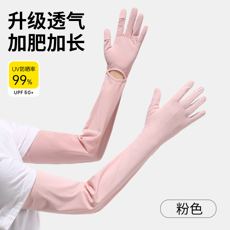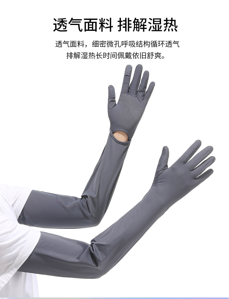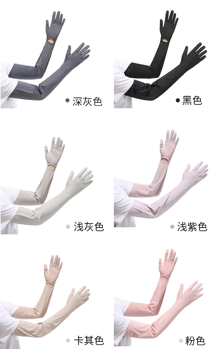夏季加长防晒手套冰袖女夏防紫外线长款冰袖冰丝袖套户外骑行护臂