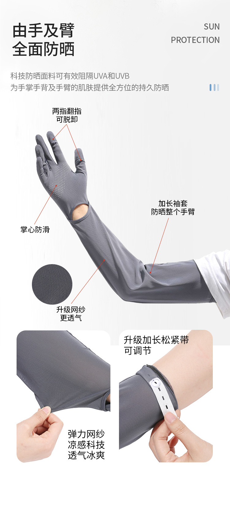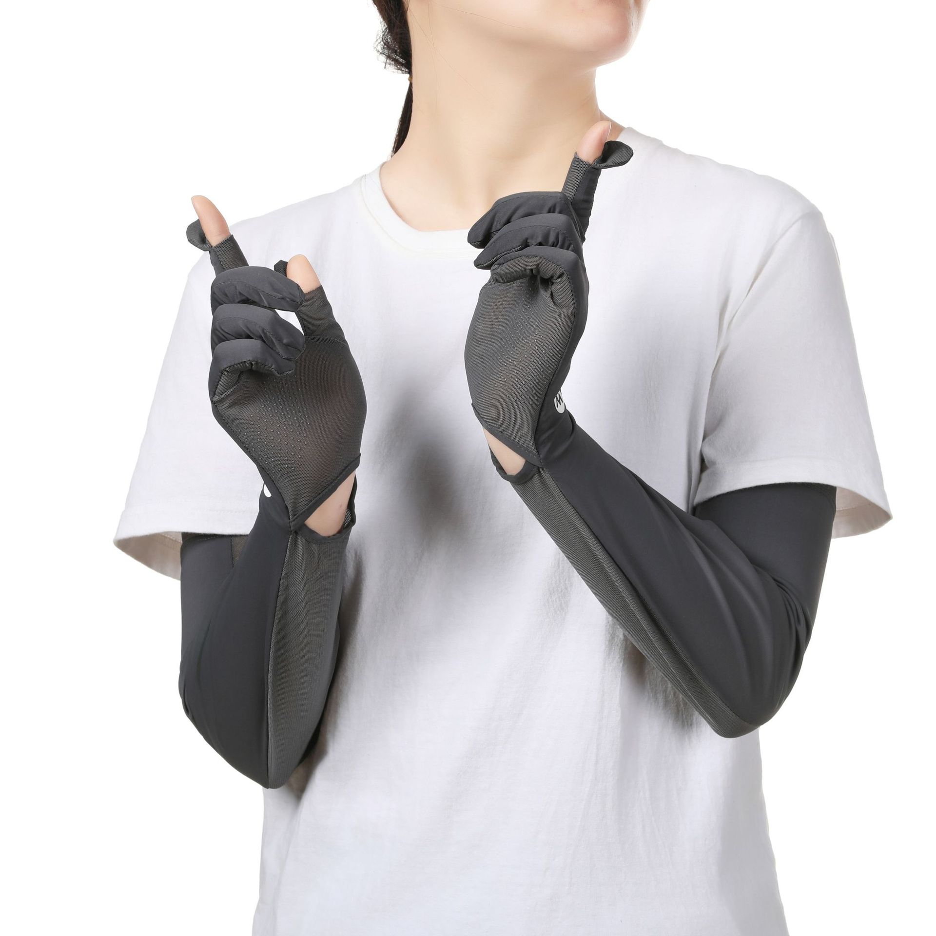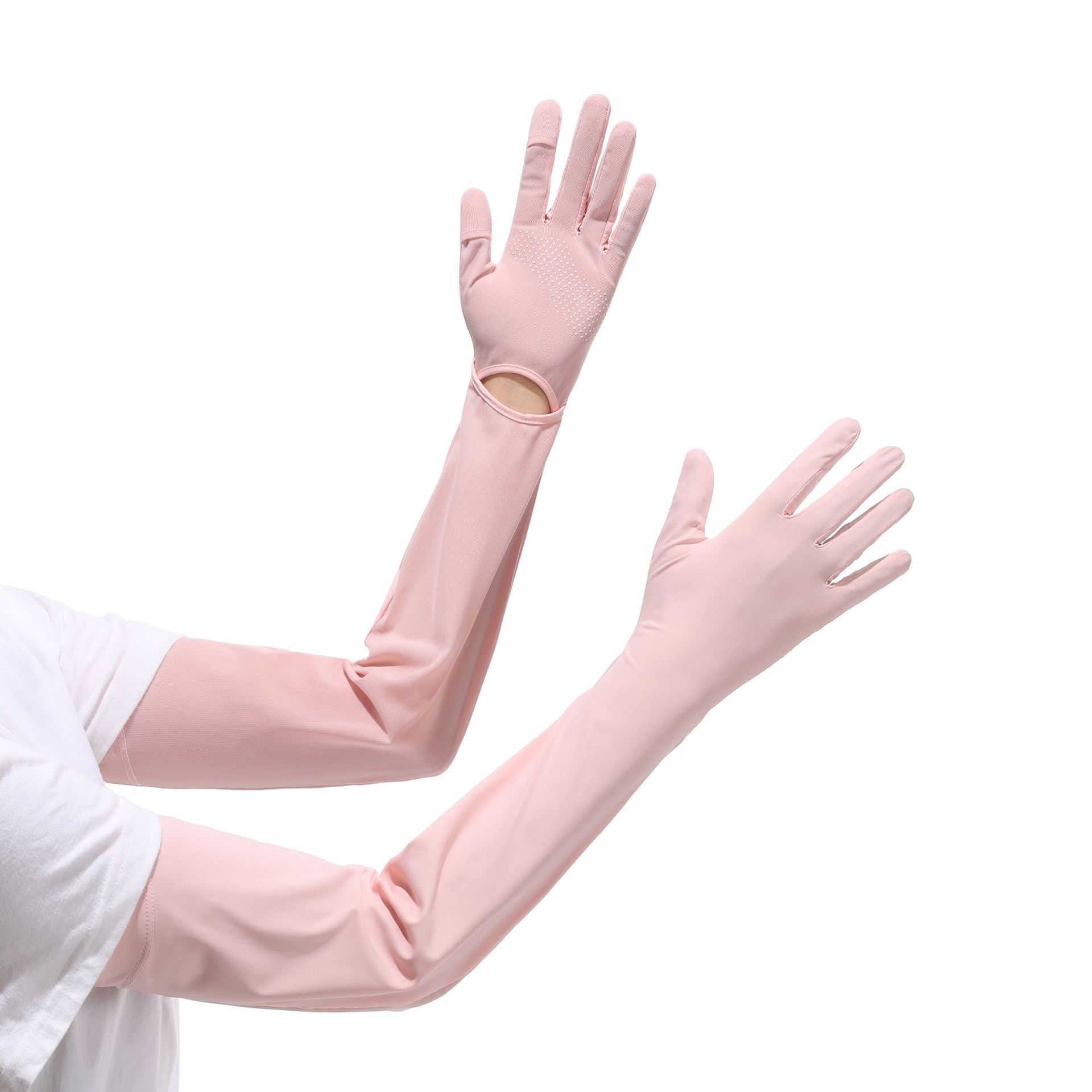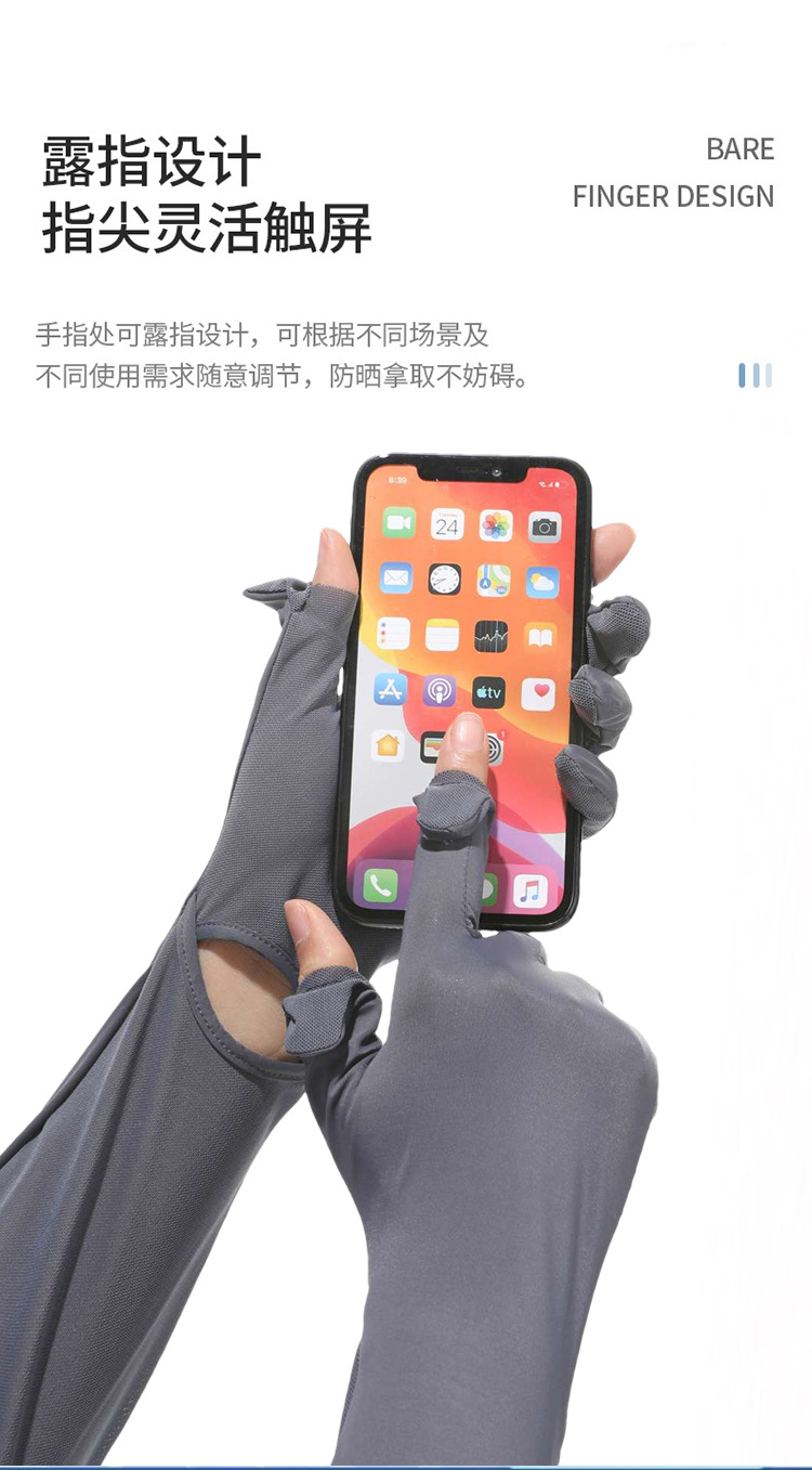 夏季加长防晒手套冰袖女夏防紫外线长款冰袖冰丝袖套户外骑行护臂