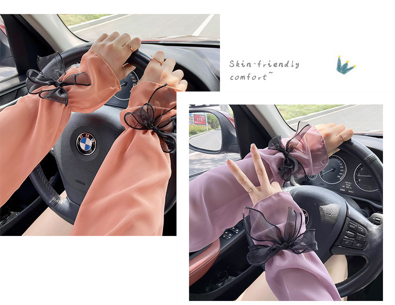 夏天防晒袖套女蕾丝薄款防紫外线冰袖户外防护宽松加长护臂手臂套