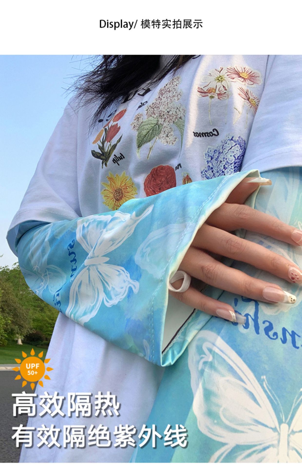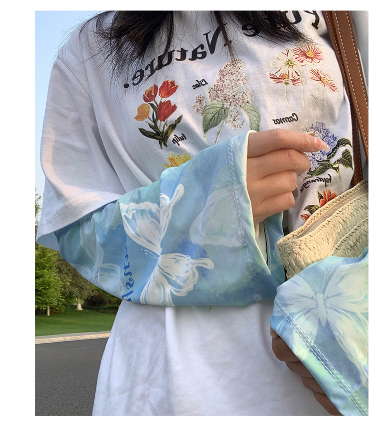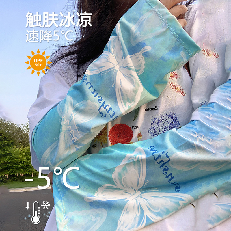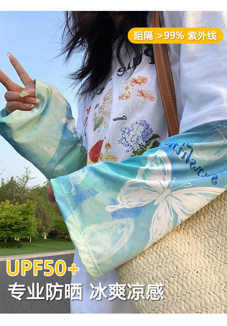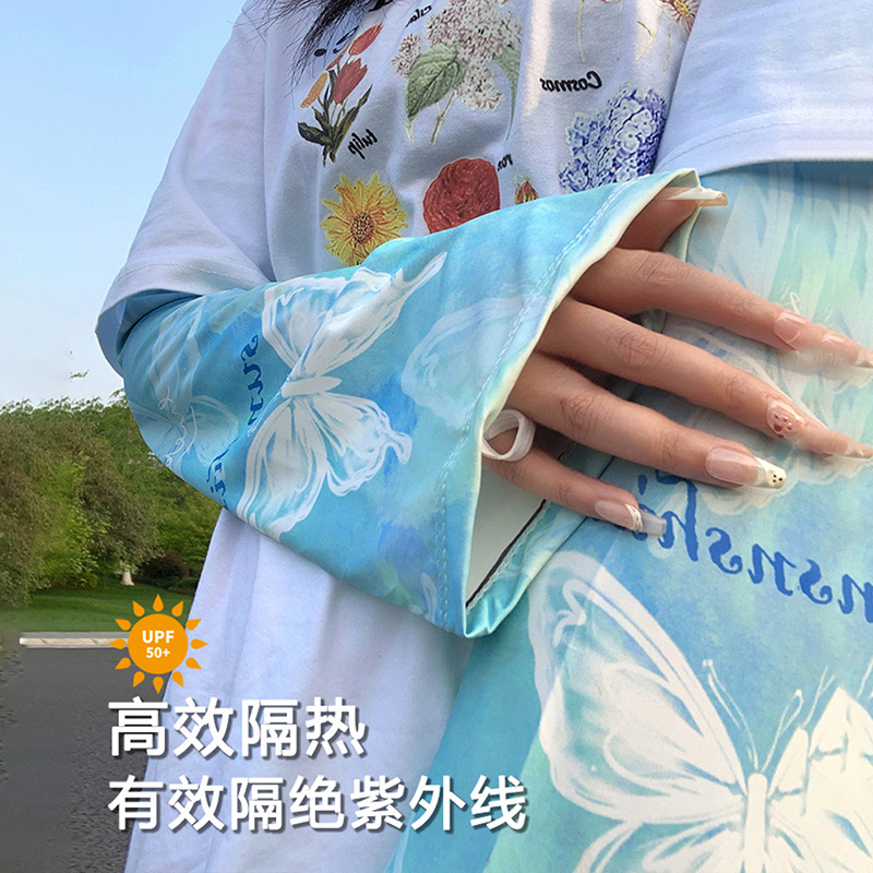 防晒冰袖夏季蝴蝶套袖护臂袖冰丝防紫外线宽松大码女遮阳大袖口彩