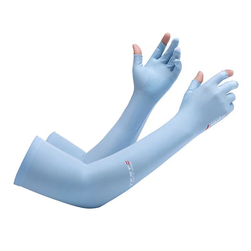 夏季防晒男女护臂冰袖防紫外线户外骑行钓鱼露二指冰丝袖套手套