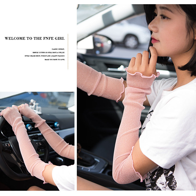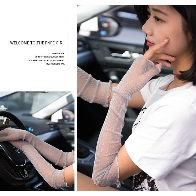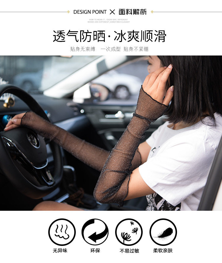 夏季户外冰袖 薄网纱袖套脚套 半指蕾丝手臂套 金银丝防晒袖套