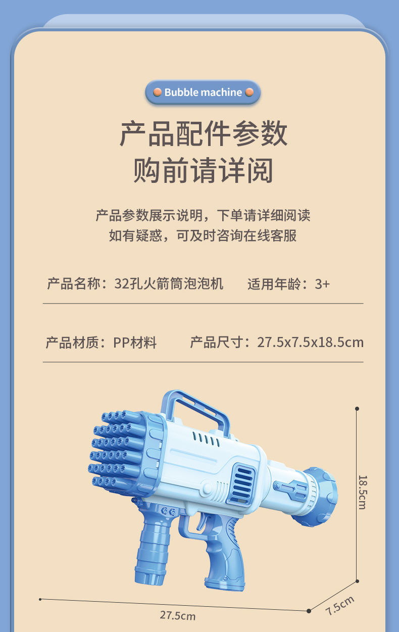 抖音网红同款32孔火箭筒泡泡机手持儿童电动吹泡泡枪地摊玩具批发