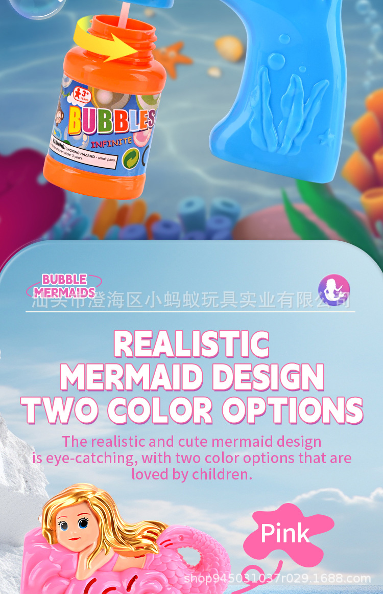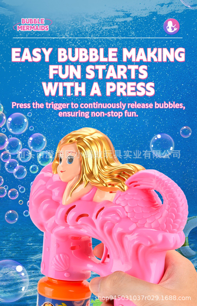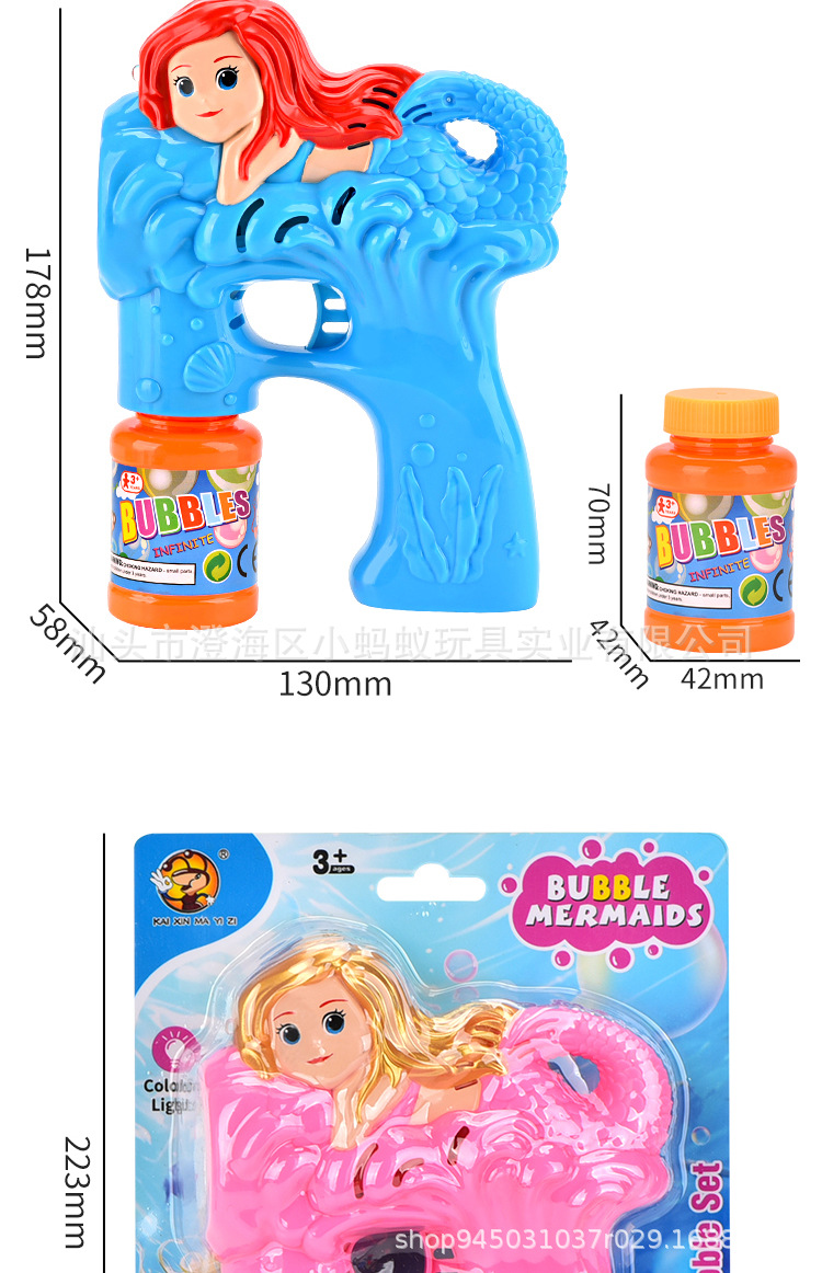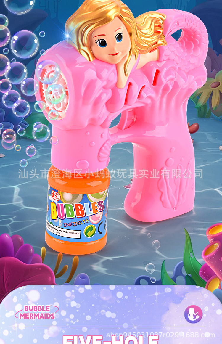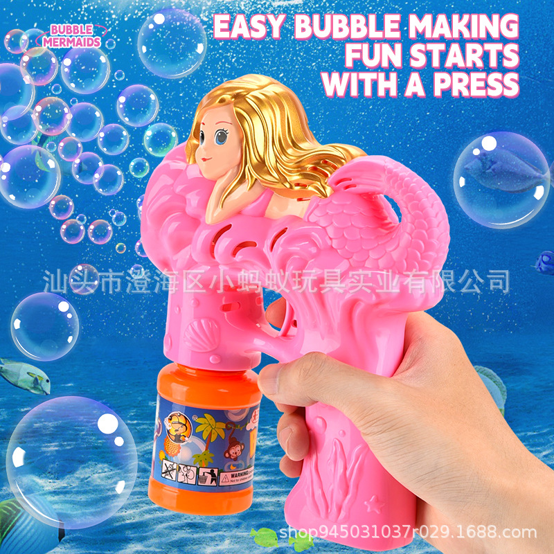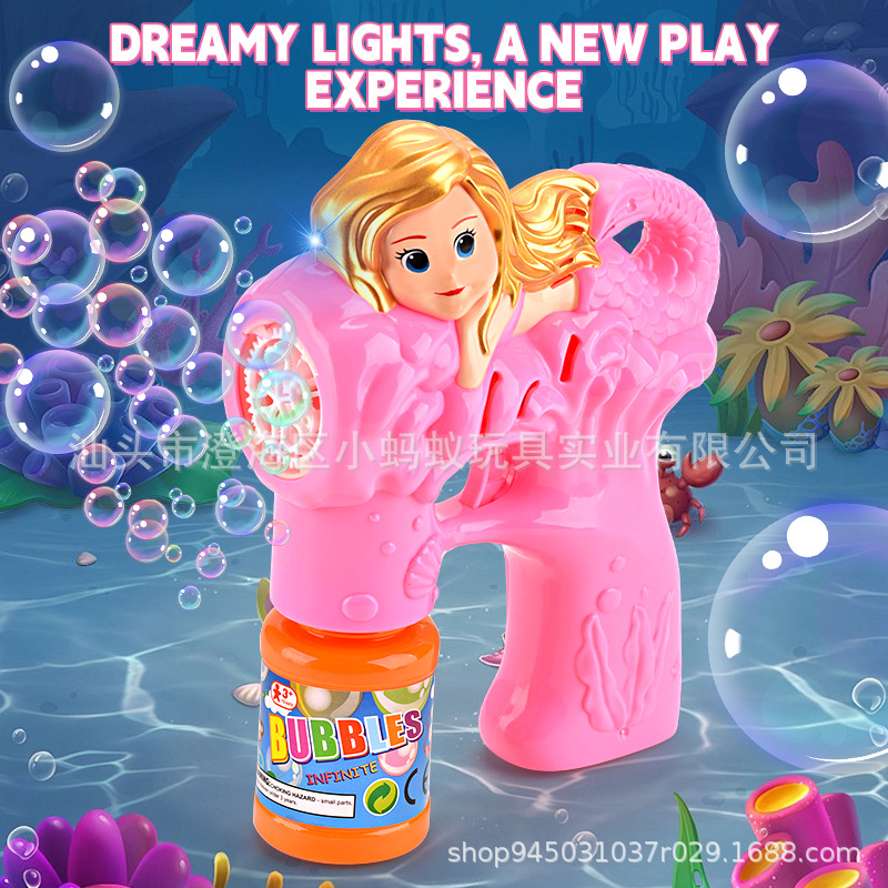 跨境电动卡通小美人鱼泡泡枪带灯光萌趣