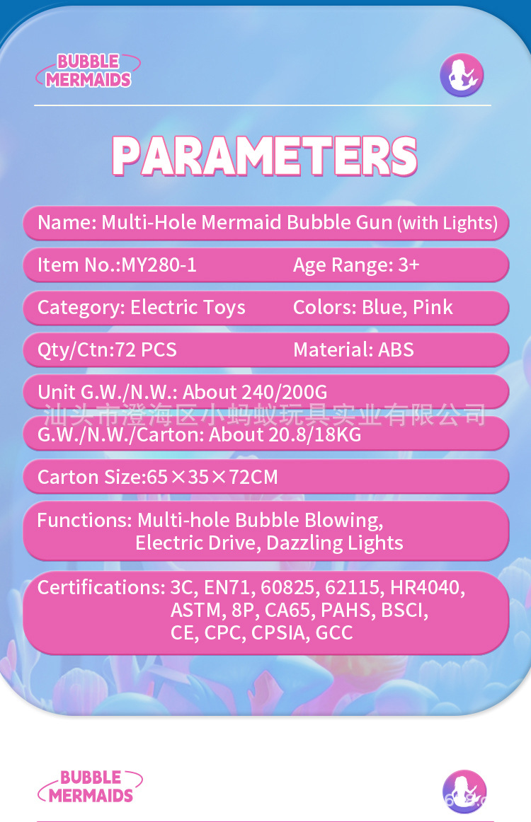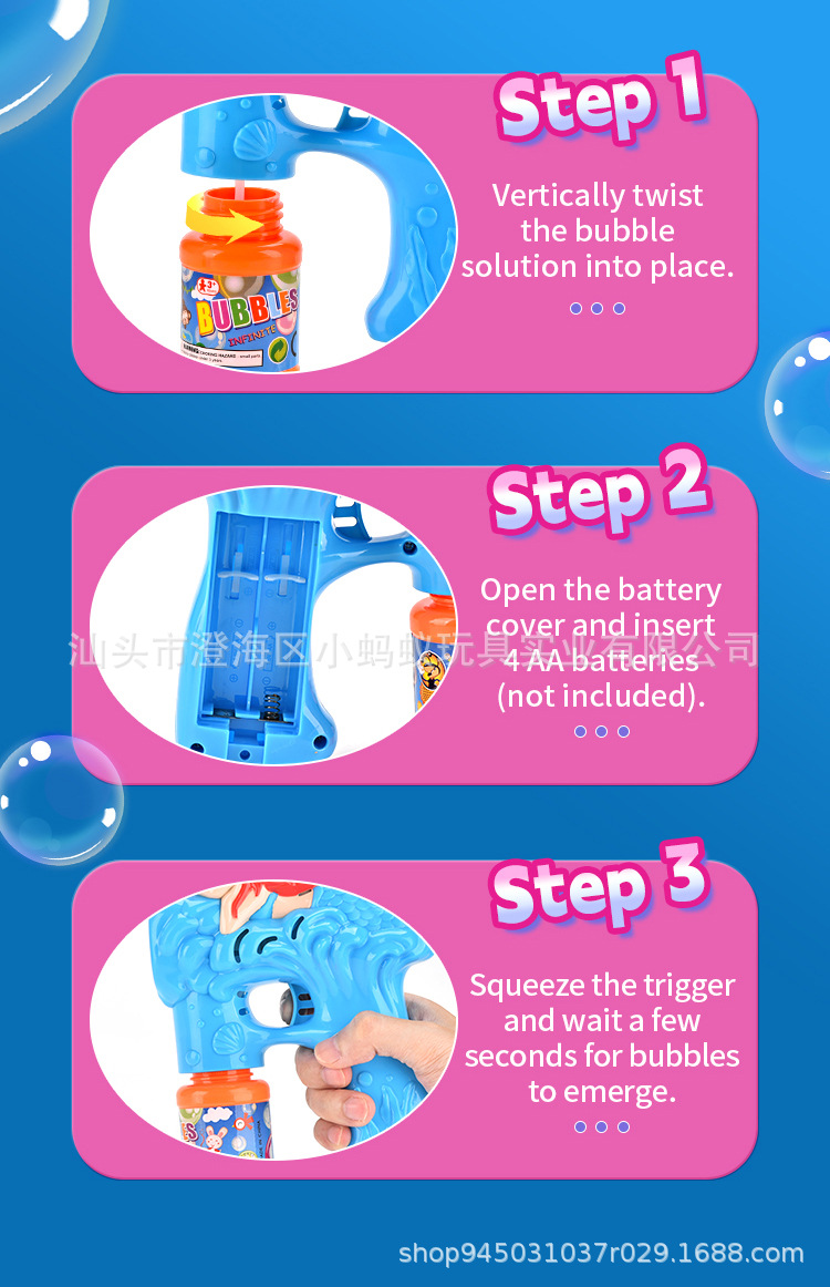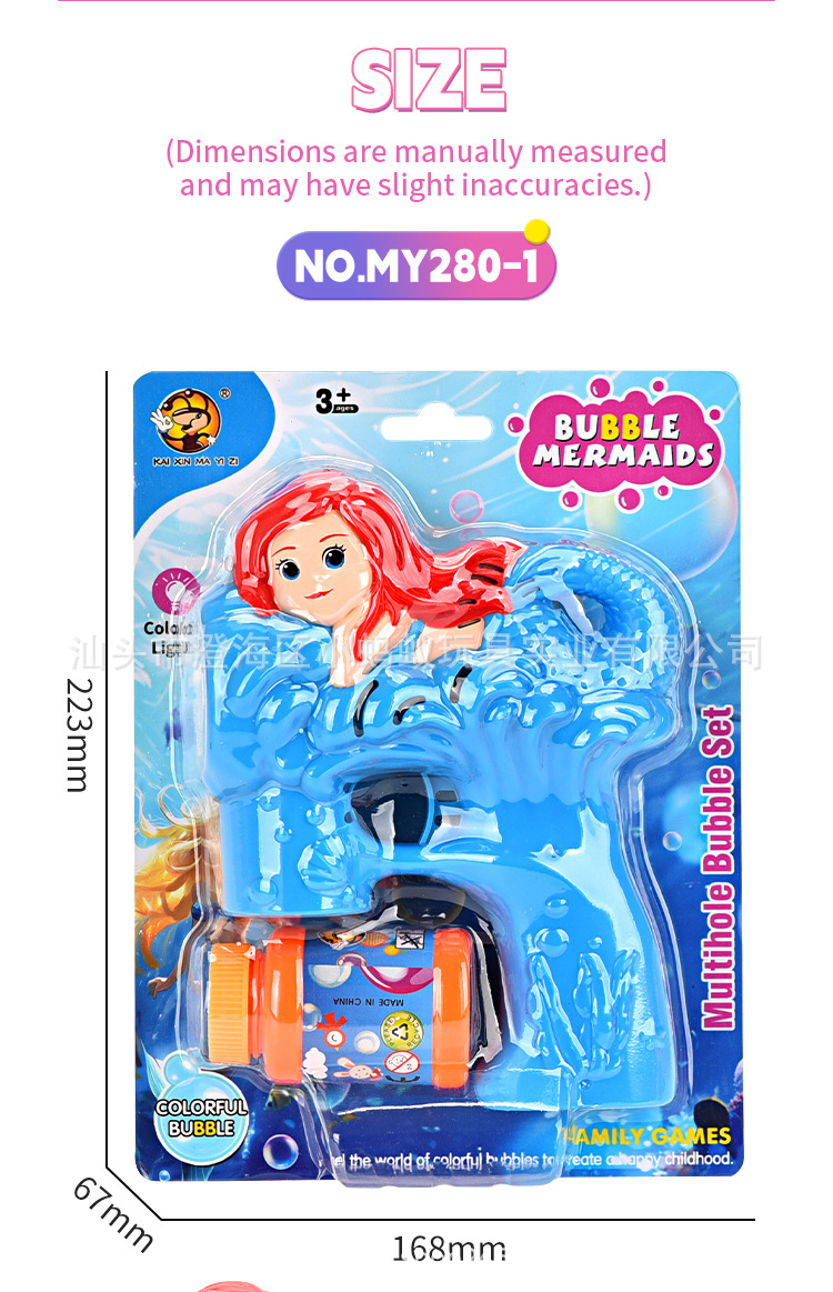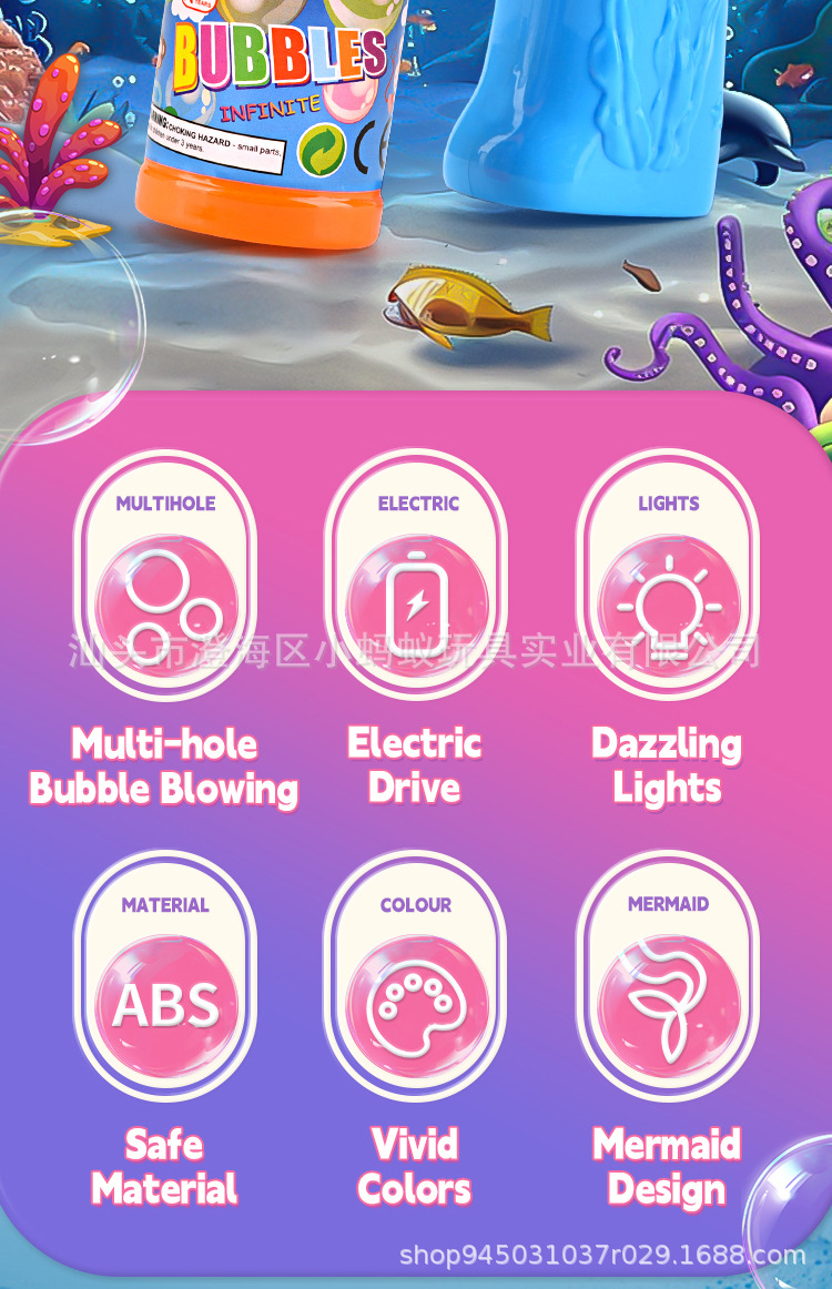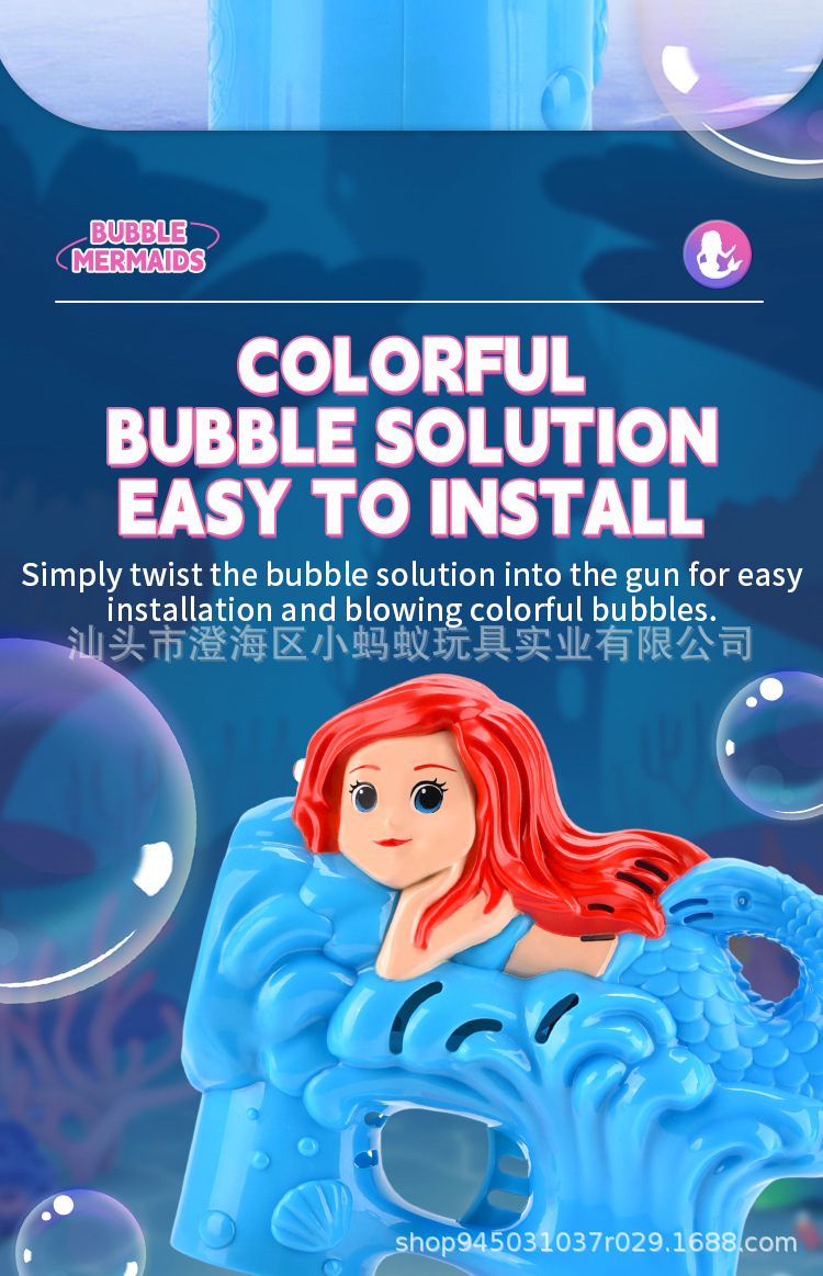 跨境电动卡通小美人鱼泡泡枪带灯光萌趣
