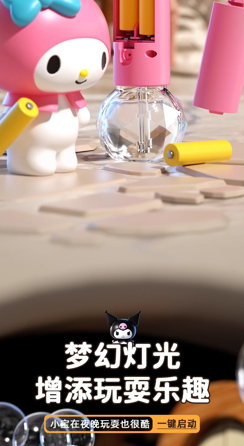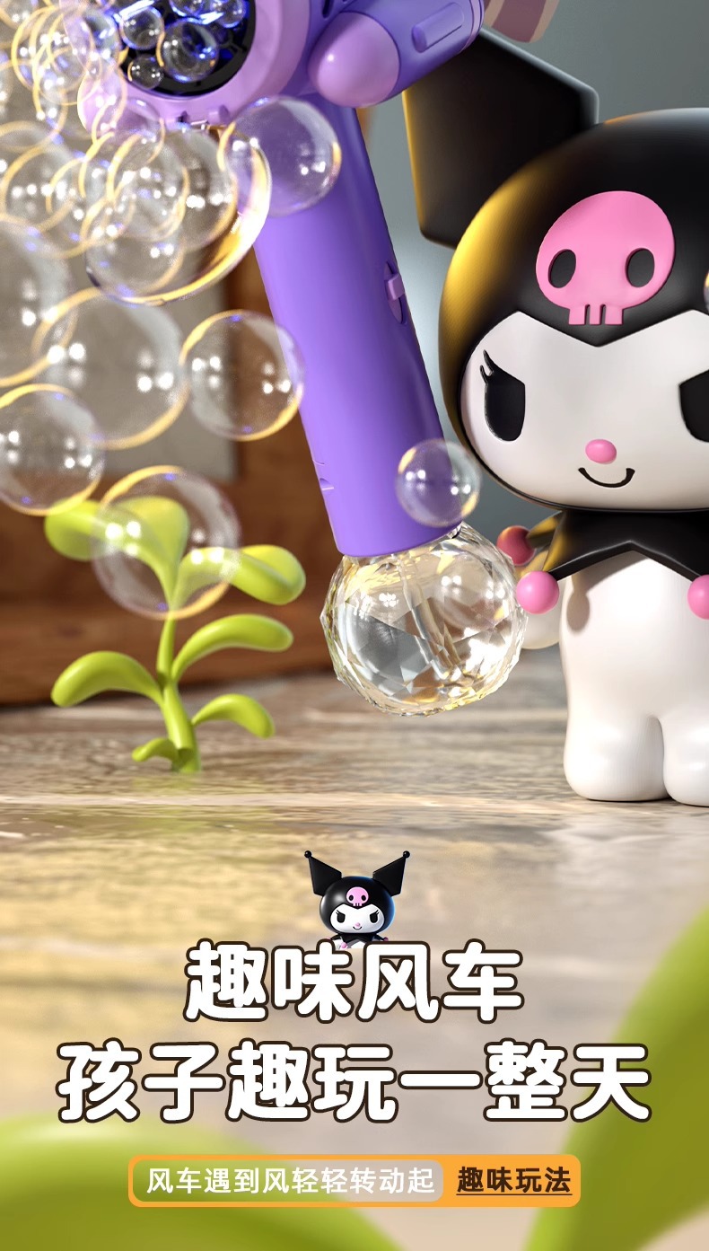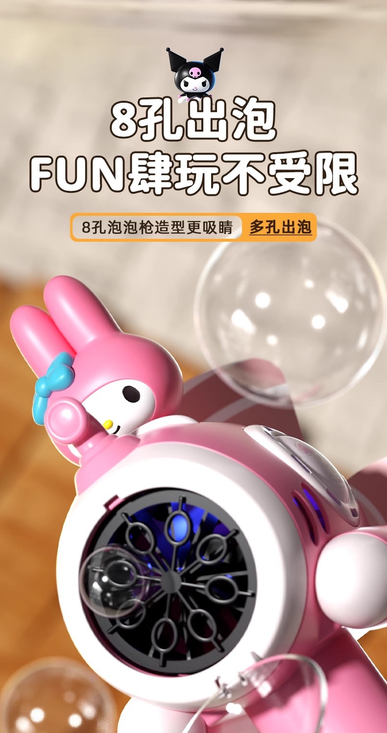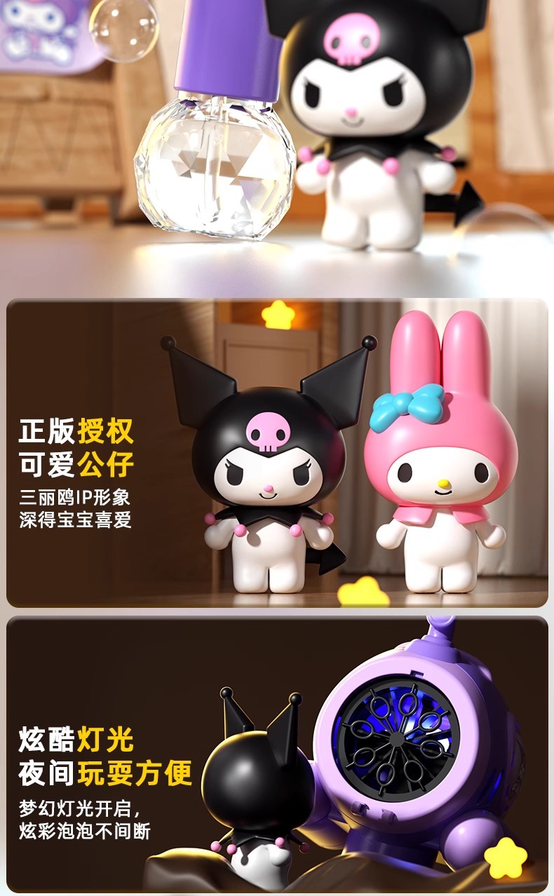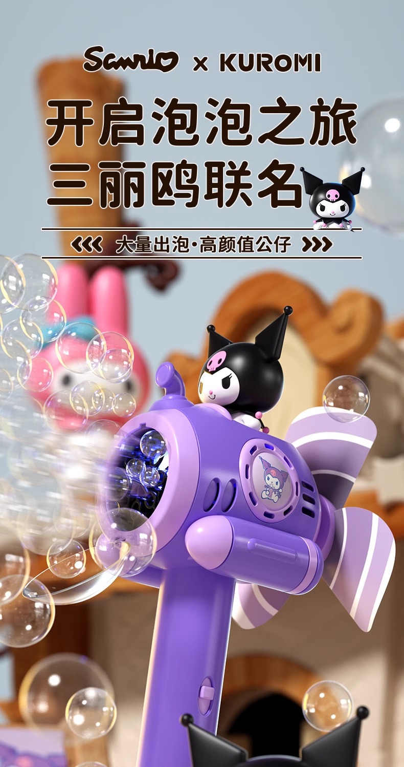新款三丽鸥手持电动泡泡机风车泡泡棒库洛米儿童全自动吹泡泡枪