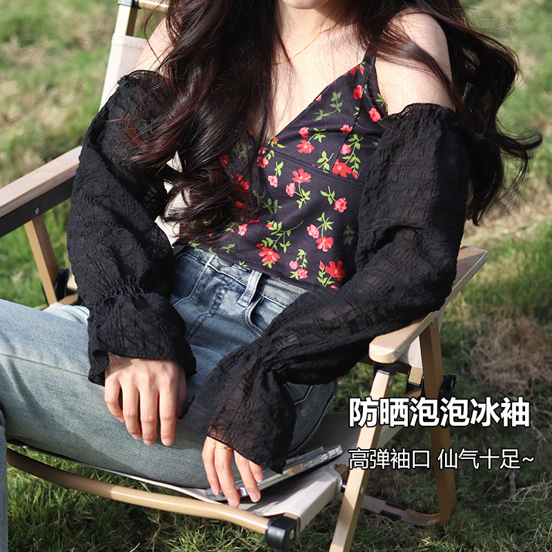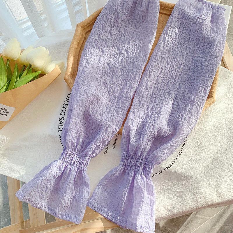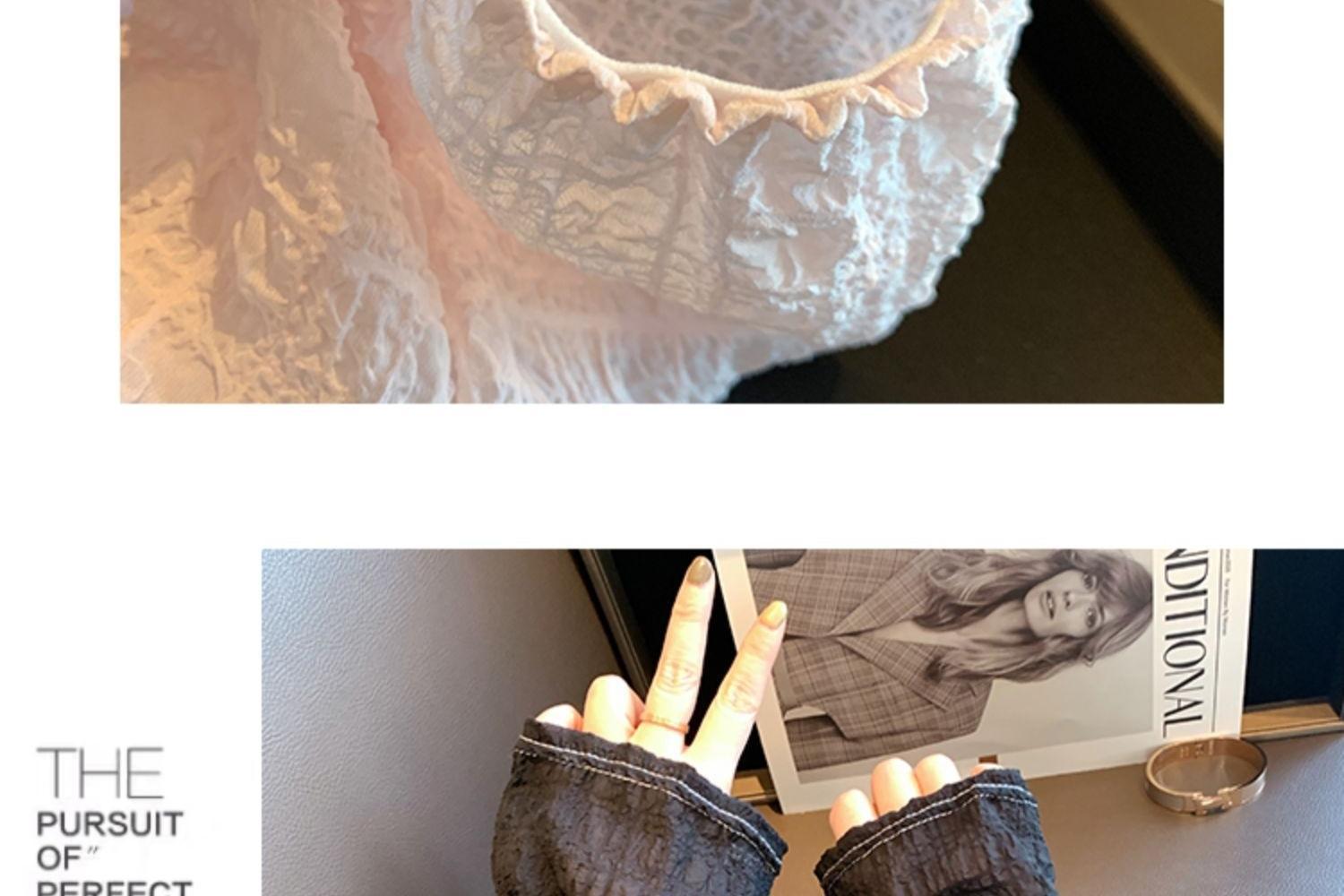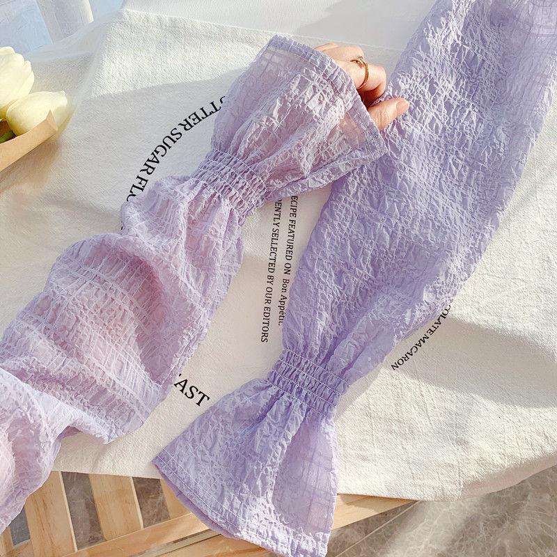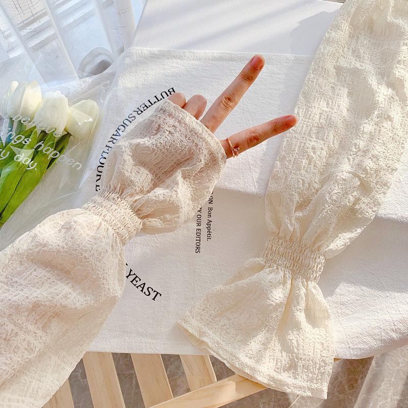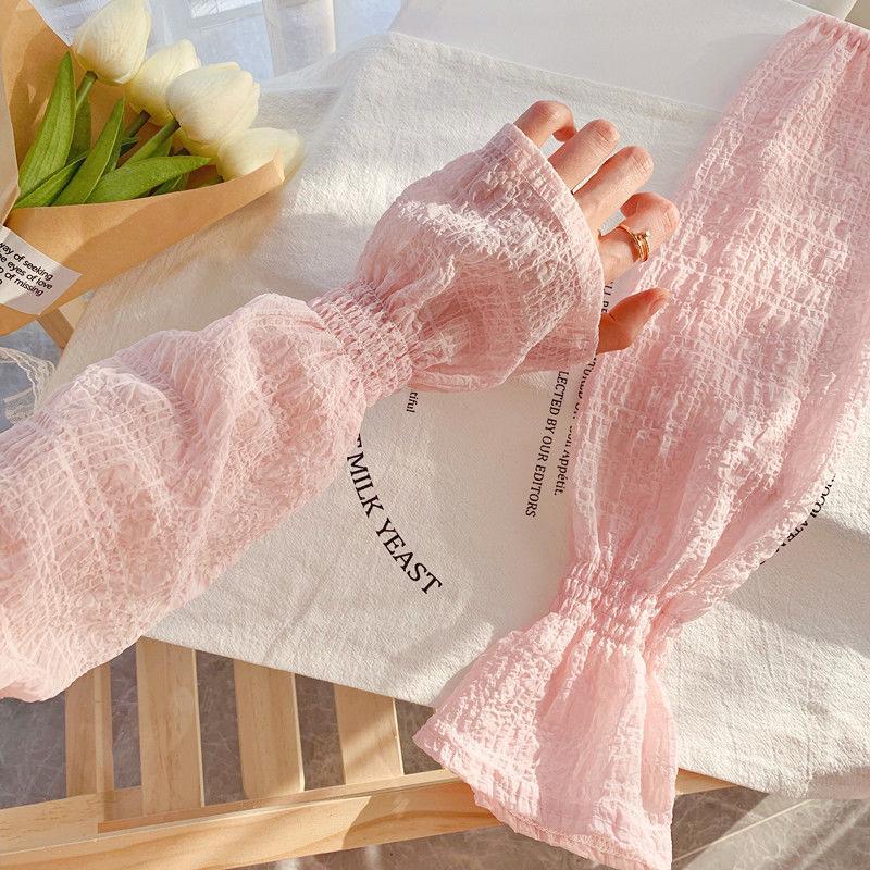夏季户外防晒可爱少女韩版宽松蕾丝袖纯色袖套女防紫外线冰丝手袖