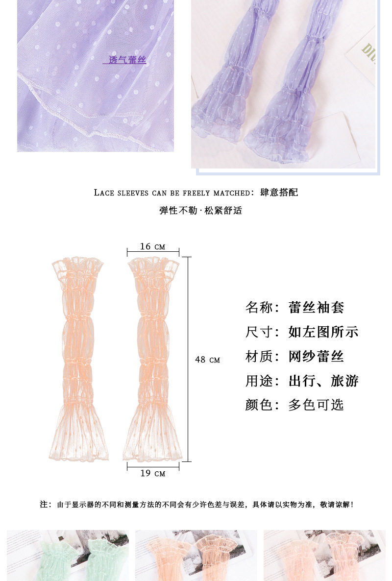 蕾丝防晒袖套女夏季冰袖大码冰丝套袖防紫外线遮阳护臂套冰袖波点
