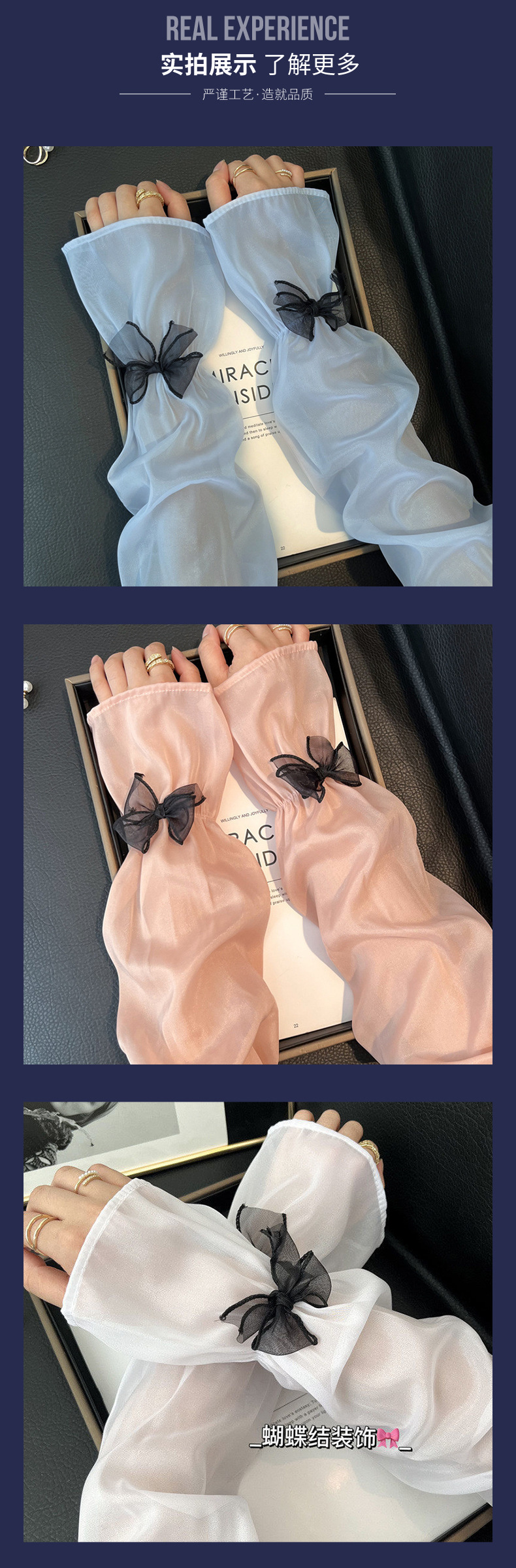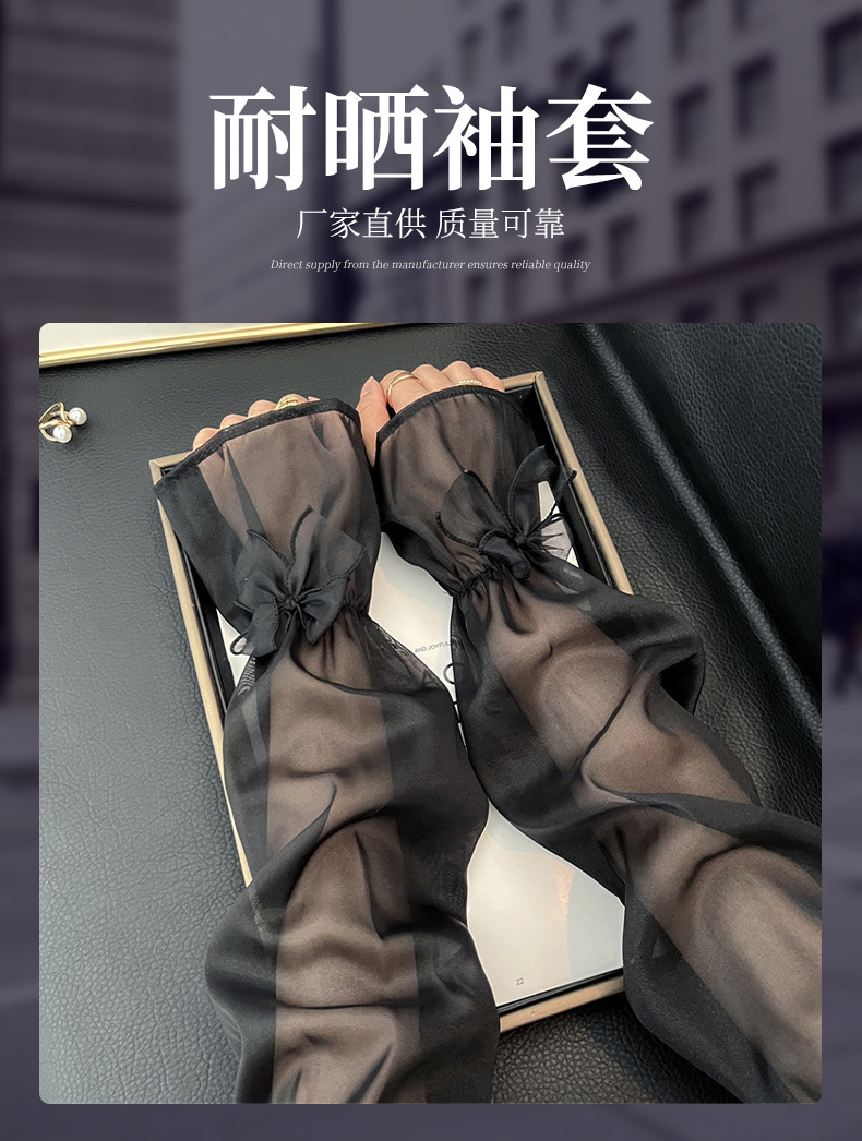 2025夏季网纱蝴蝶结袖套户外开车骑行冰袖遮紫外线喇叭口防晒袖套
