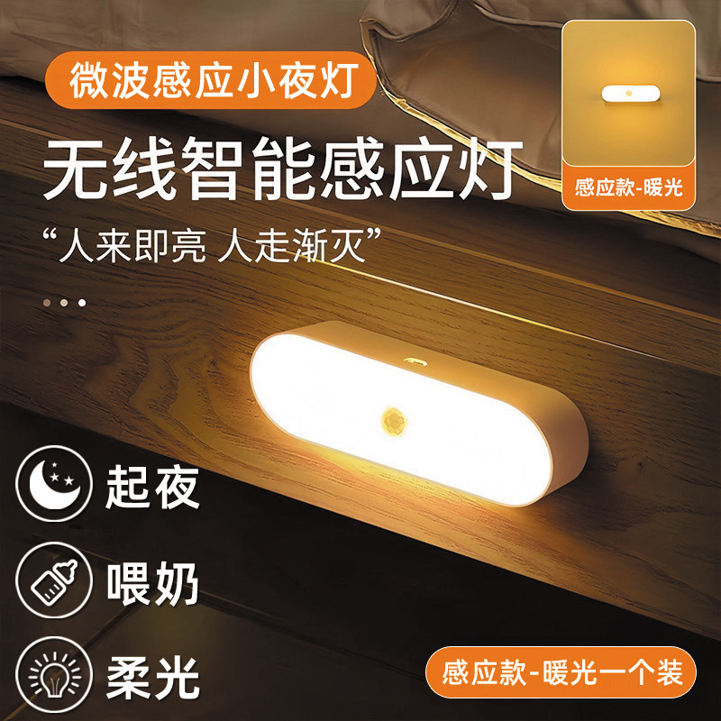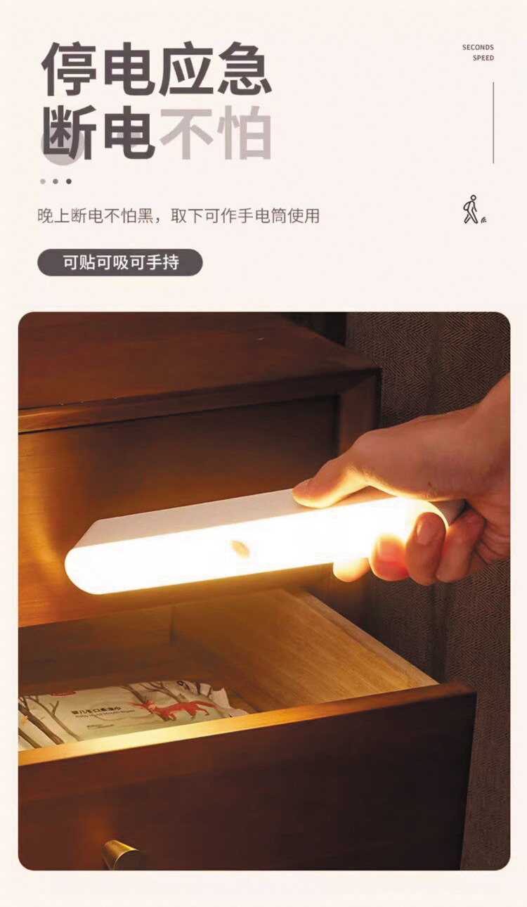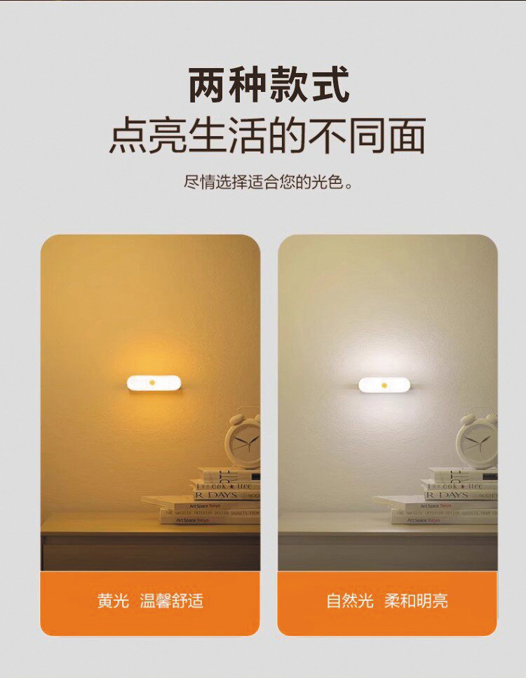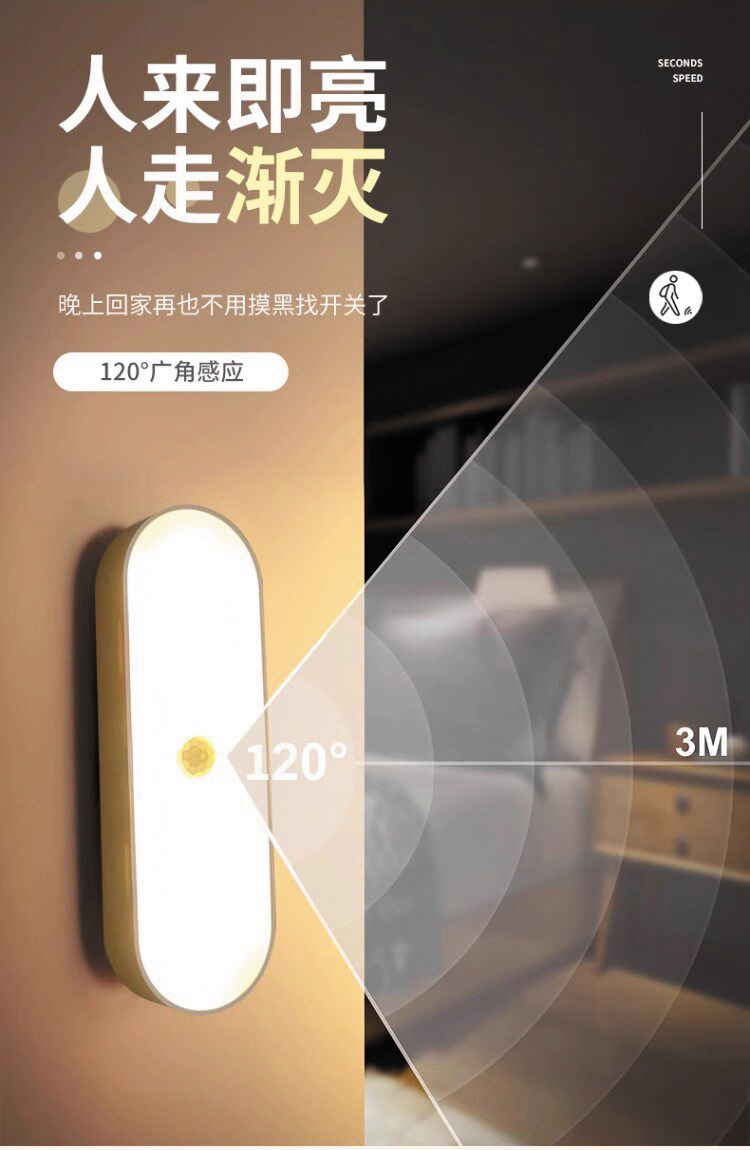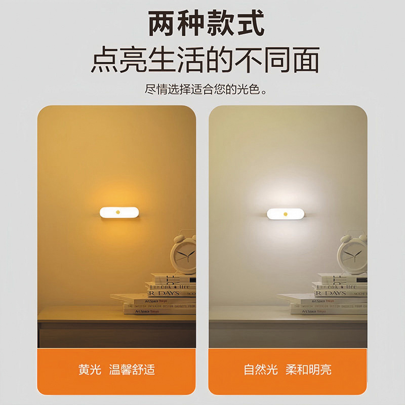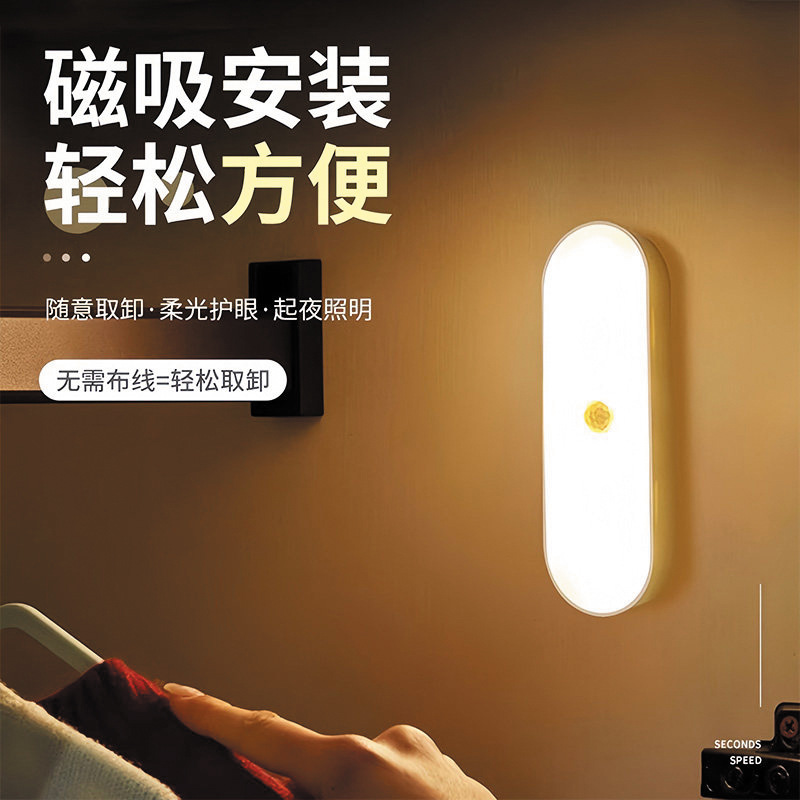 人体感应小夜灯墙壁磁吸充电式应急灯家用无线过道起夜楼道手持灯