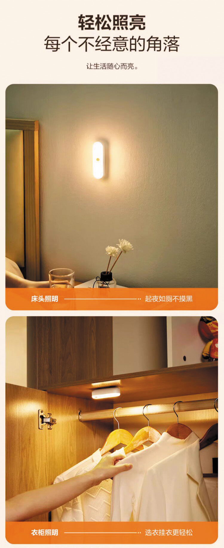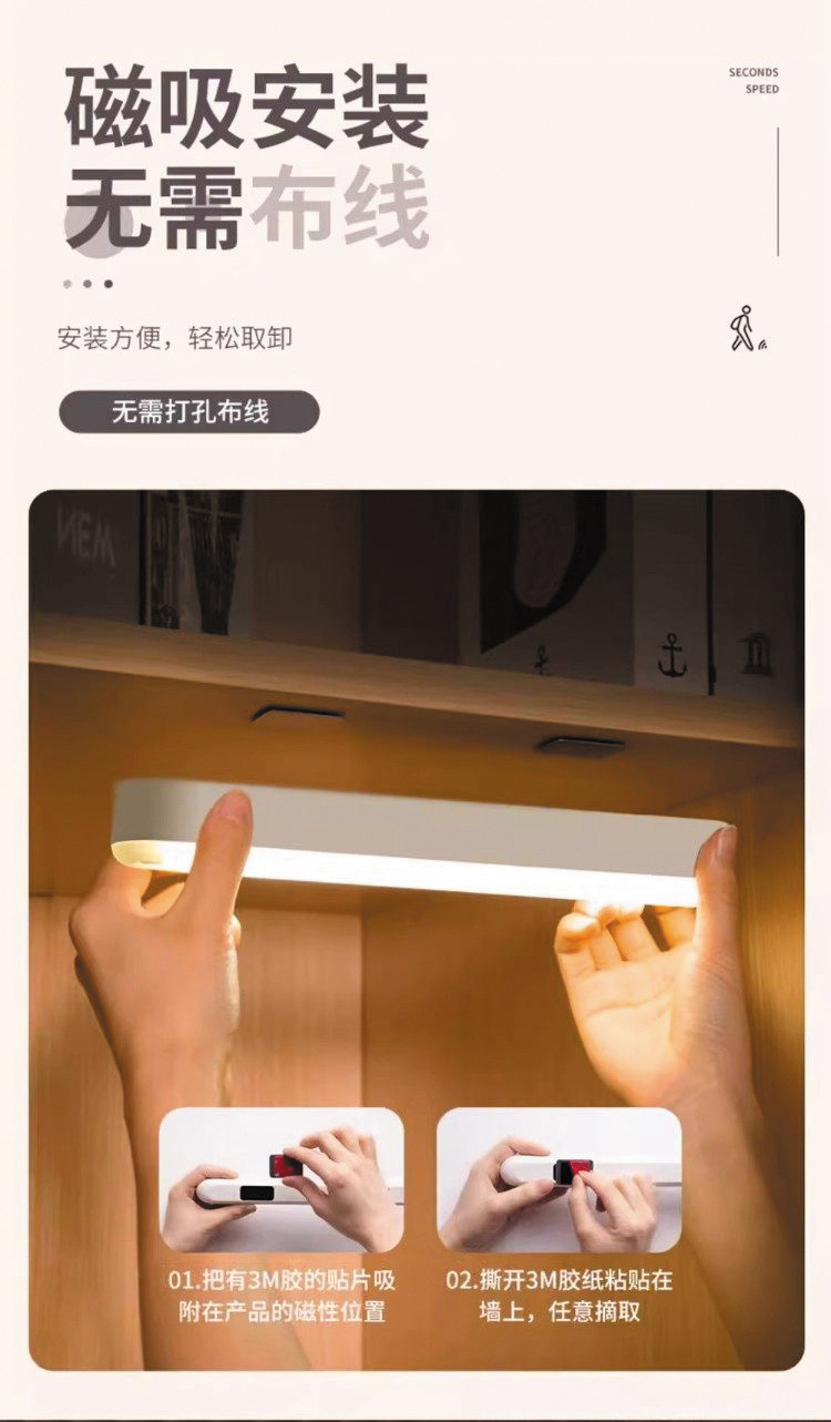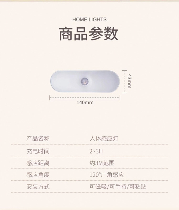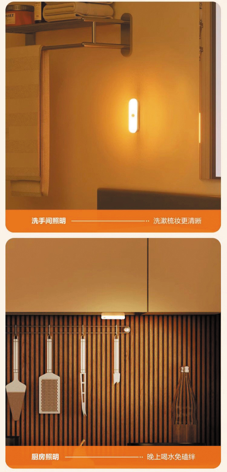 人体感应小夜灯墙壁磁吸充电式应急灯家用无线过道起夜楼道手持灯