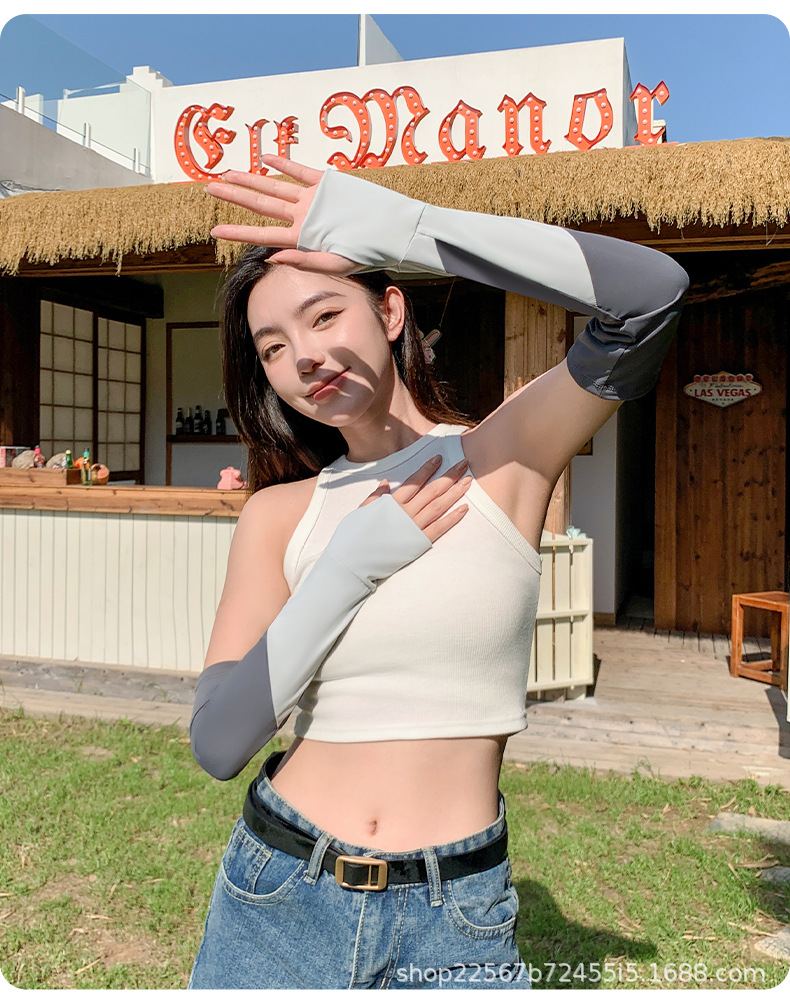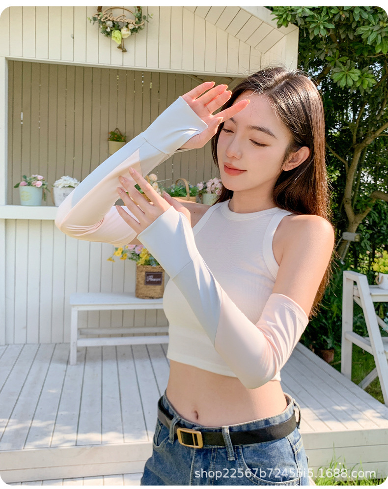 防晒冰袖夏天女冰丝护手臂袖套开车防紫外线运动骑车透气清凉