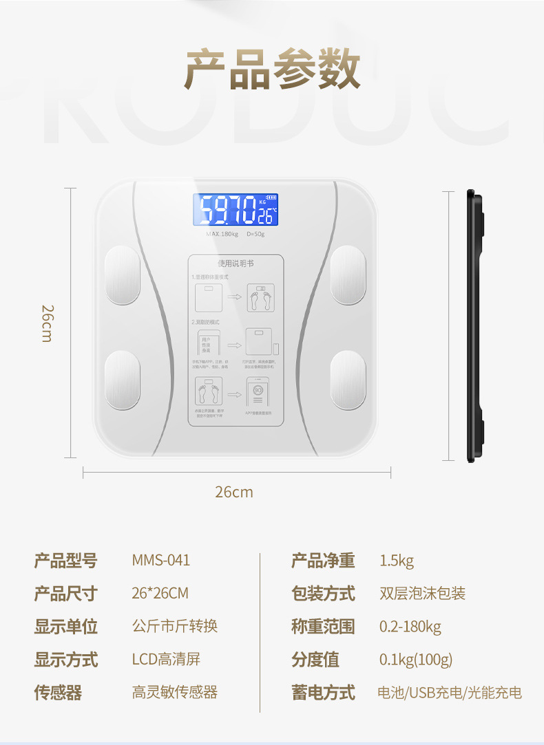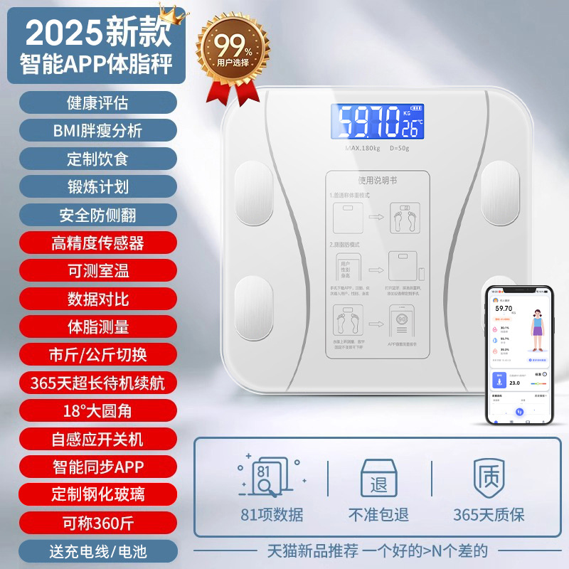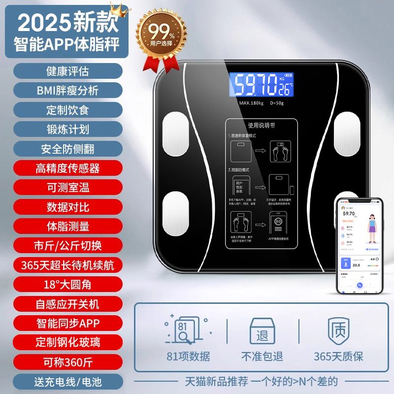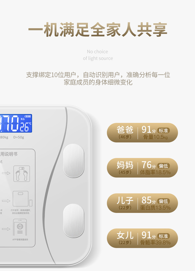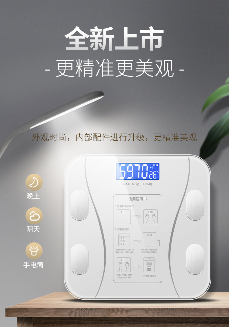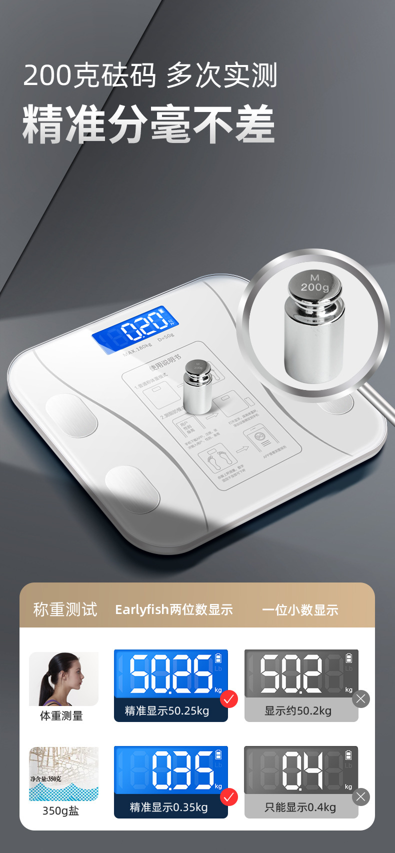 早鱼体重秤智能体脂秤家用小型耐用充电称重电子秤高精准人体秤