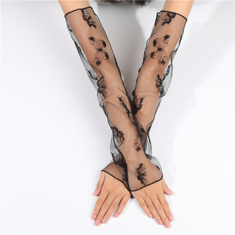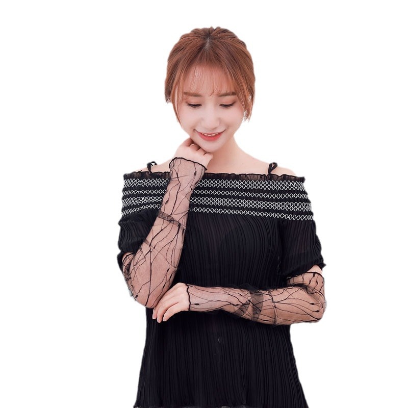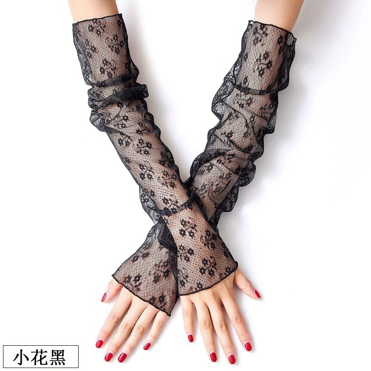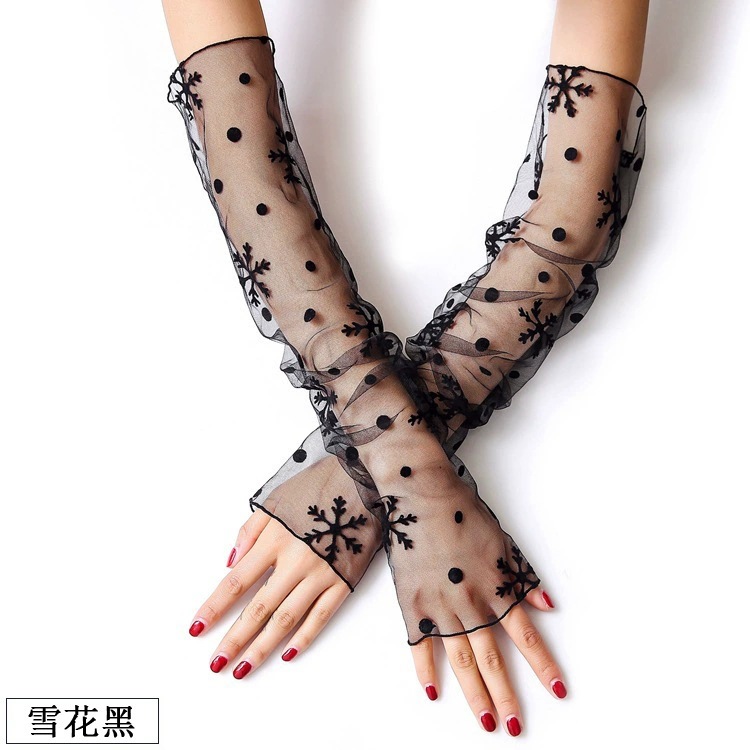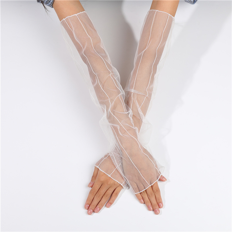 新品网纱冰袖 女夏季蕾丝防紫外线薄款长袖骑车手套 开车防晒袖套