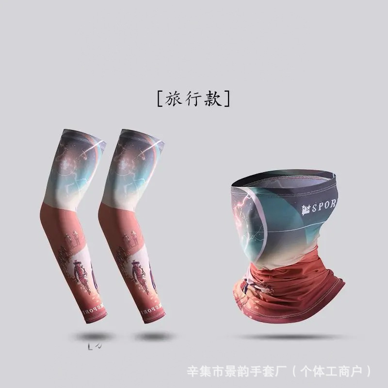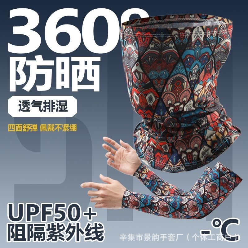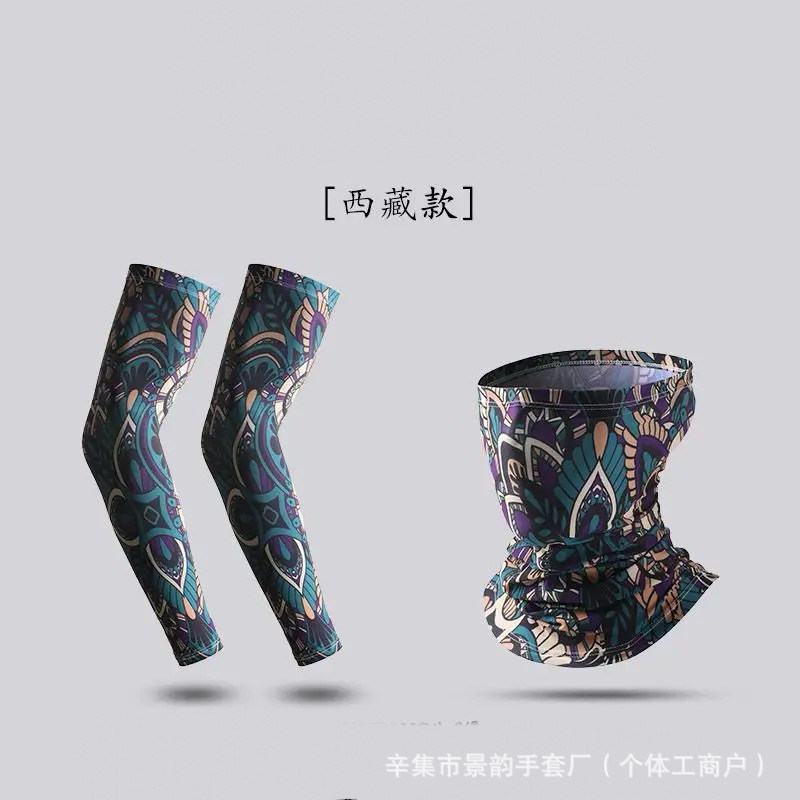 防晒袖套夏季运动薄款冰袖时尚骑行开车护臂户外登山男女面罩防晒