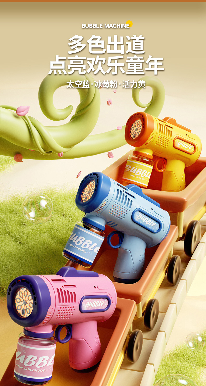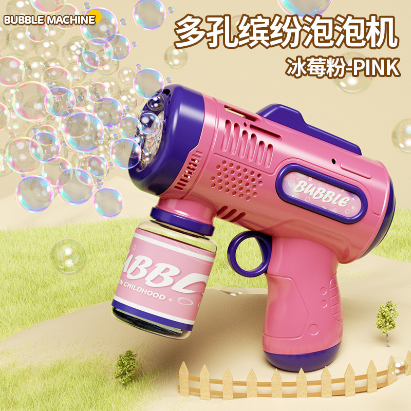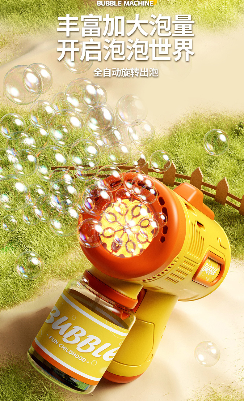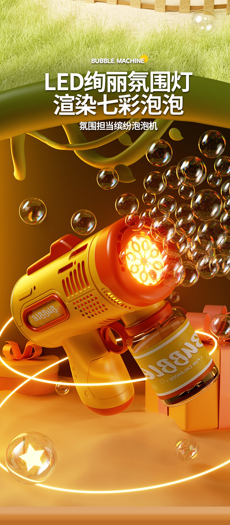 批发跨境圆筒多孔泡泡枪儿童玩具户外互动手持黄色泡泡机不漏液