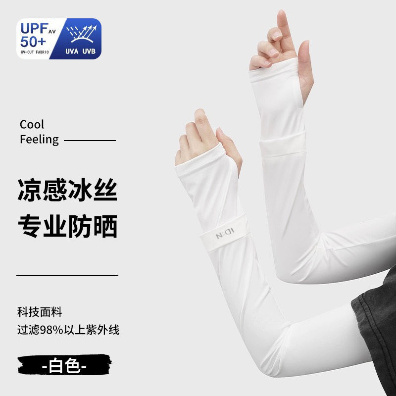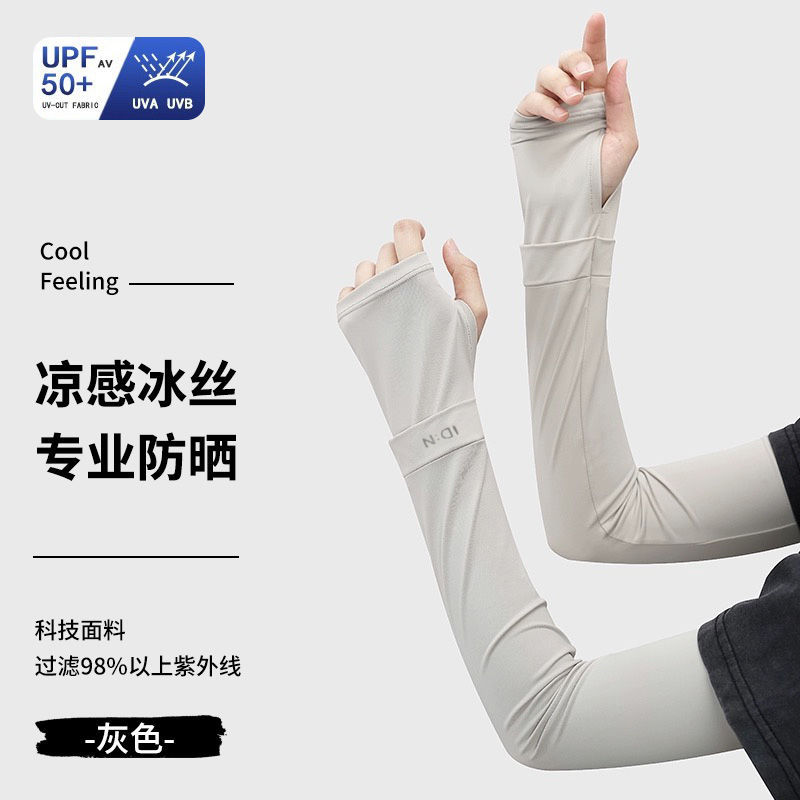 防晒冰袖男女夏季开车防紫外线薄款冰丝袖套一体手套骑行钓鱼遮阳