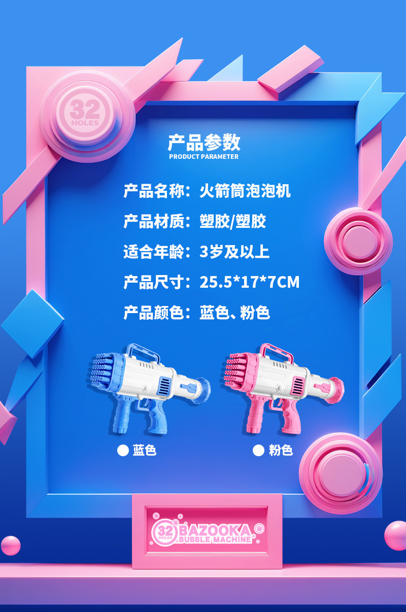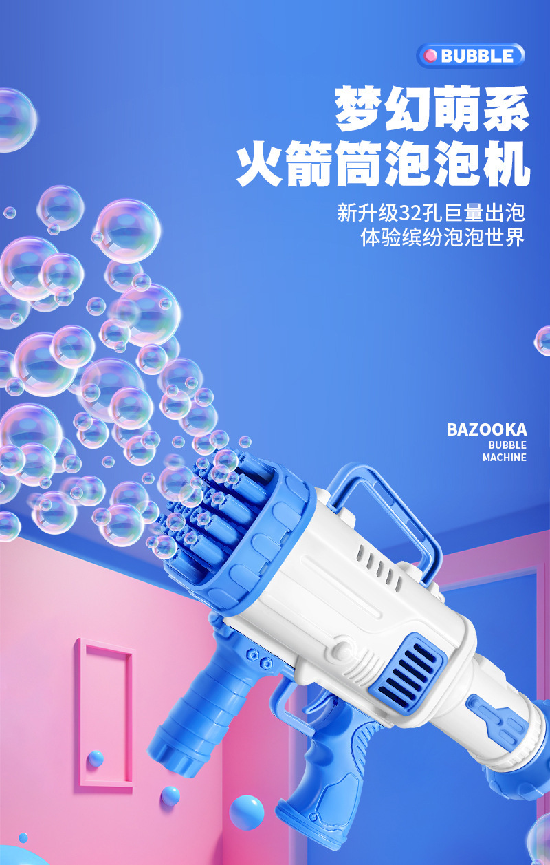 网红32孔火箭筒泡泡机多孔出泡加特林手持泡泡枪儿童玩具地摊热卖