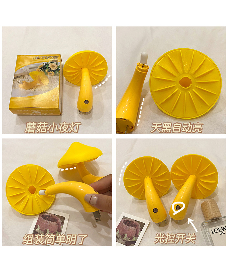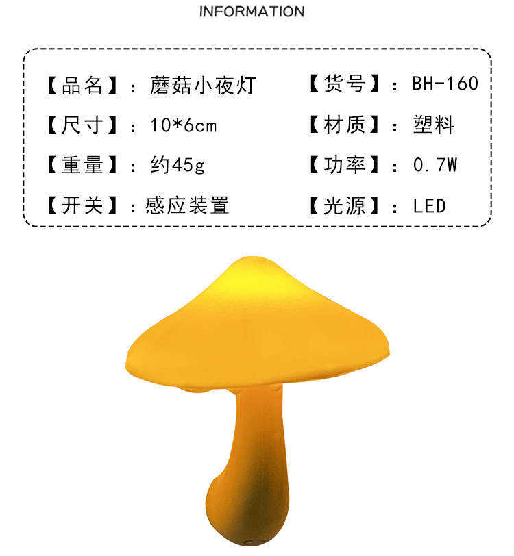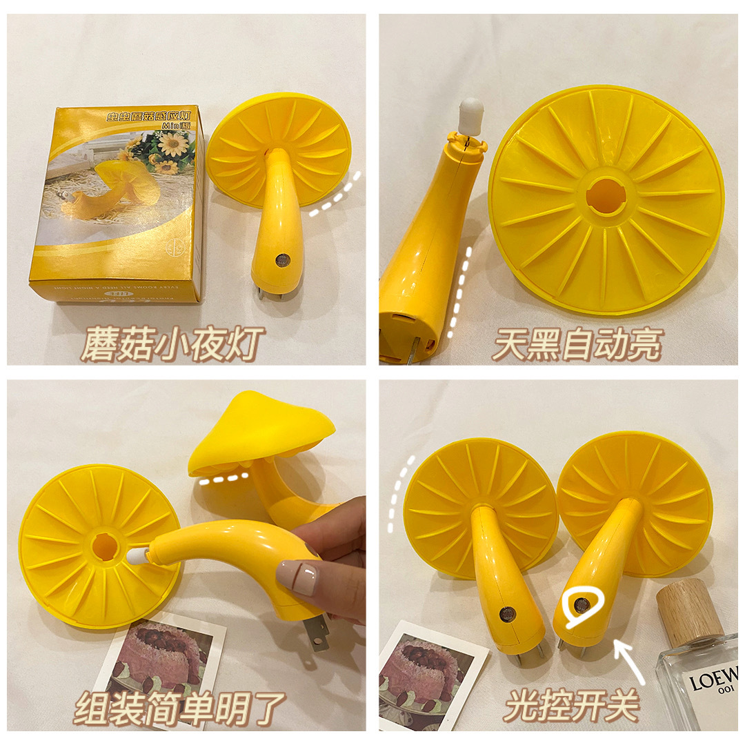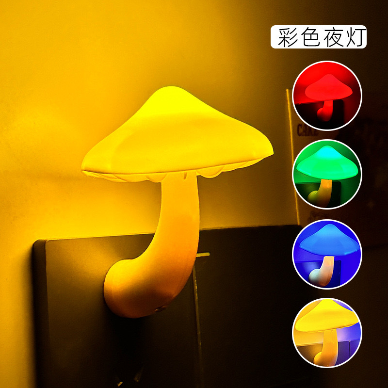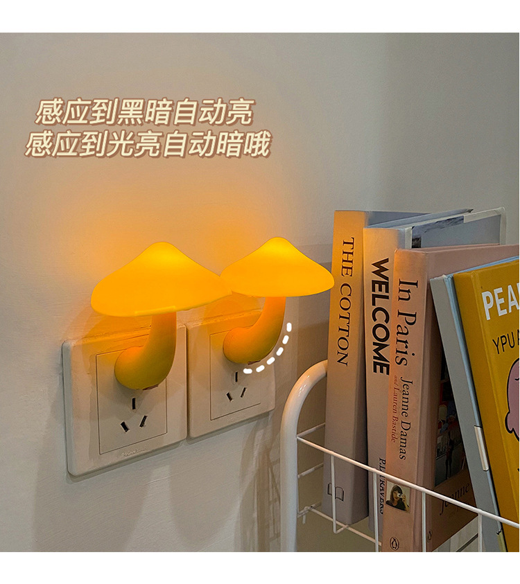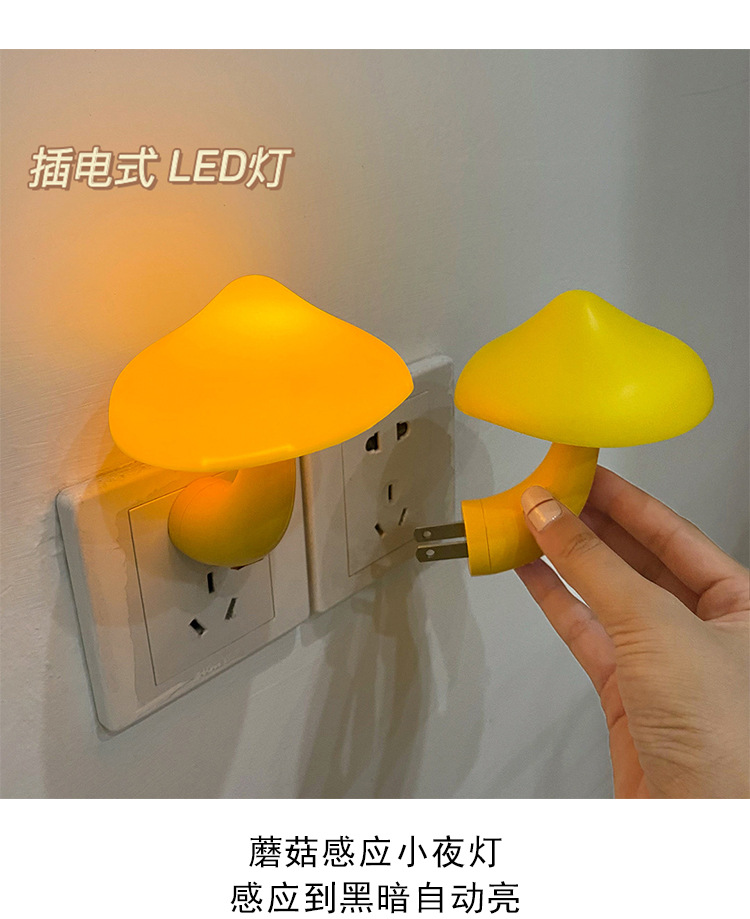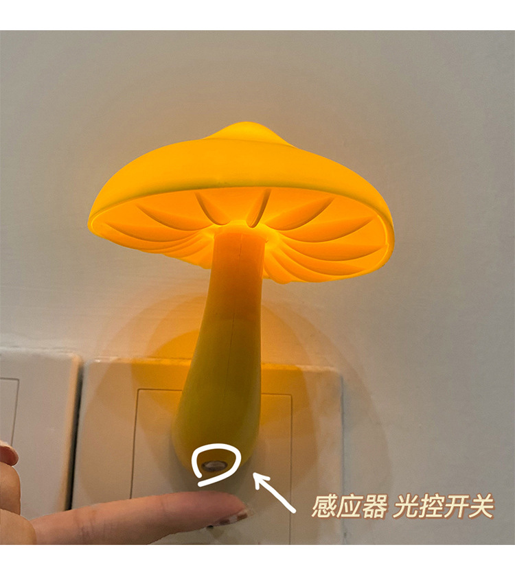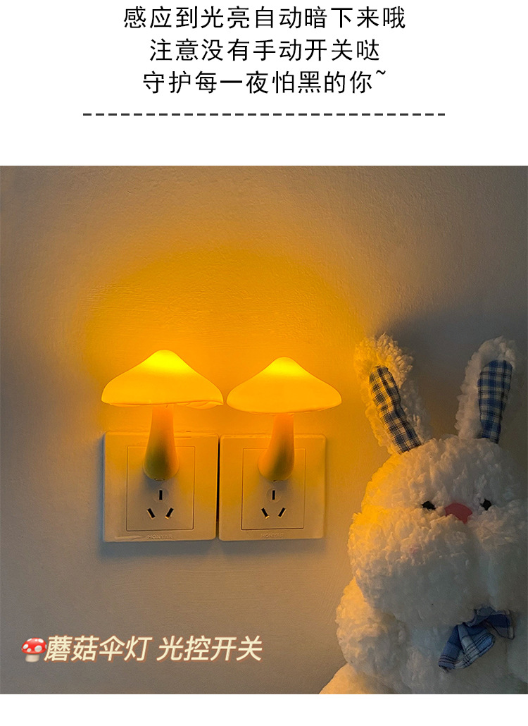 创意蘑菇插电LED床头小夜灯光控感应卧室睡眠起夜喂奶灯欧规美规