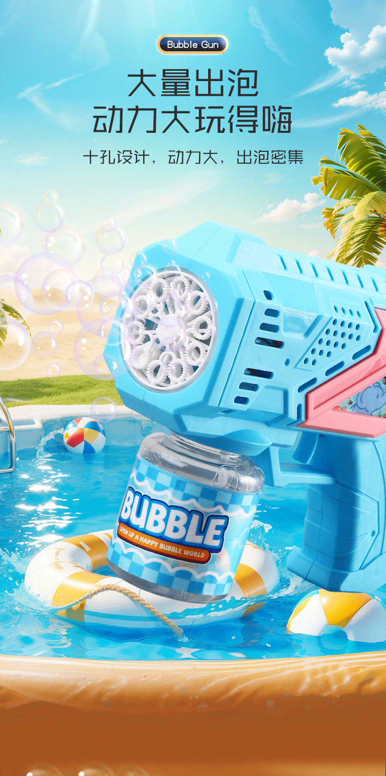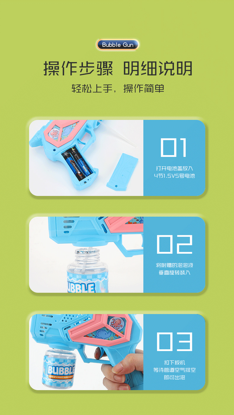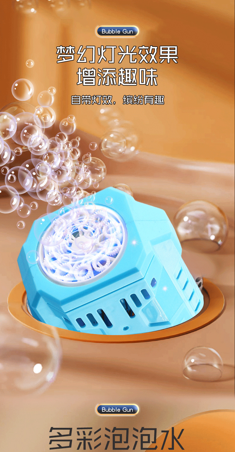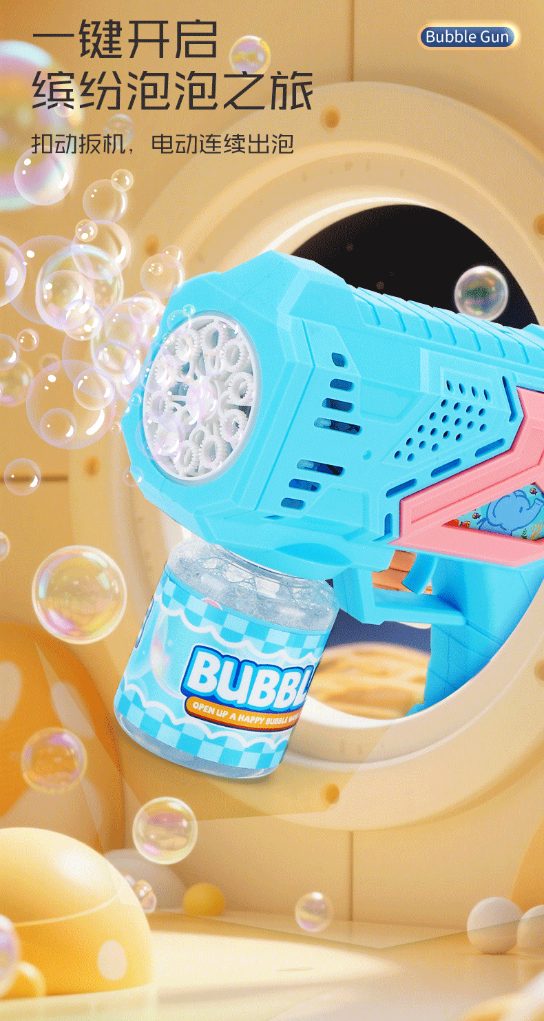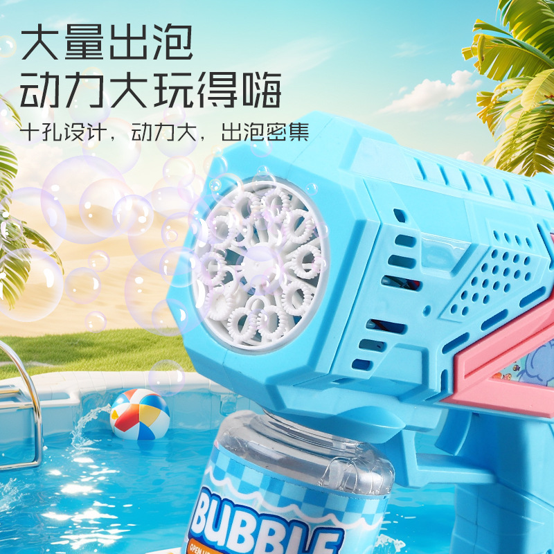 跨境卡通泡泡枪儿童玩具电动灯光多孔手持泡泡男女孩玩具厂家批发