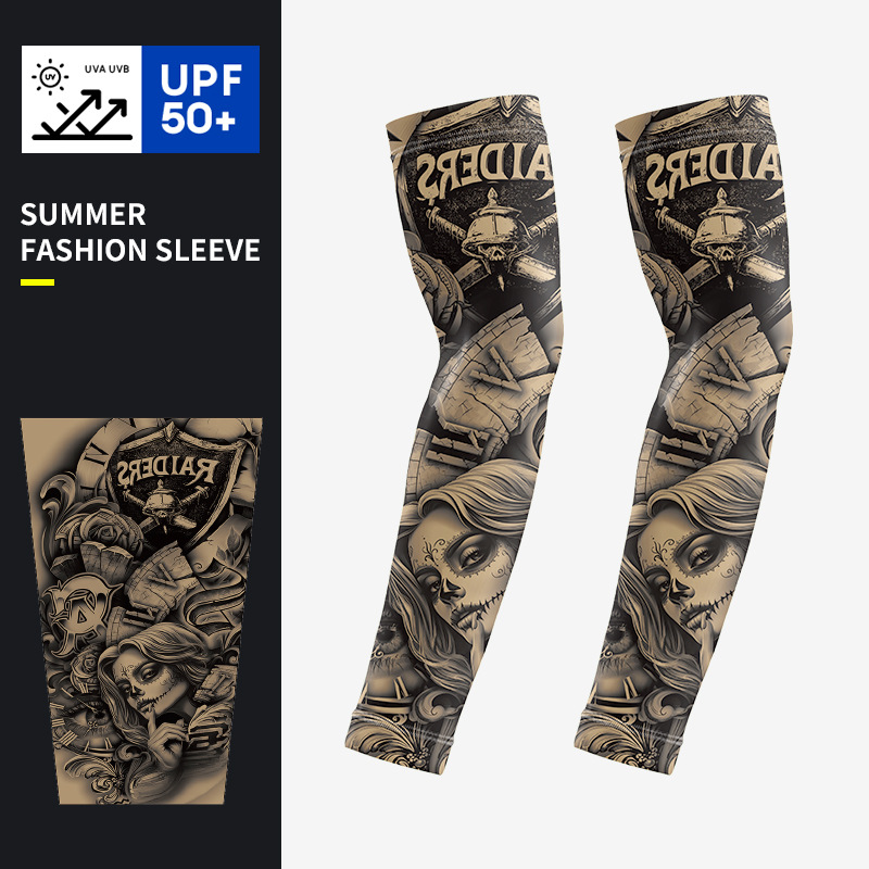 防晒冰袖套男夏季薄款花臂纹身袖套女防紫外线护臂手臂套开车户外