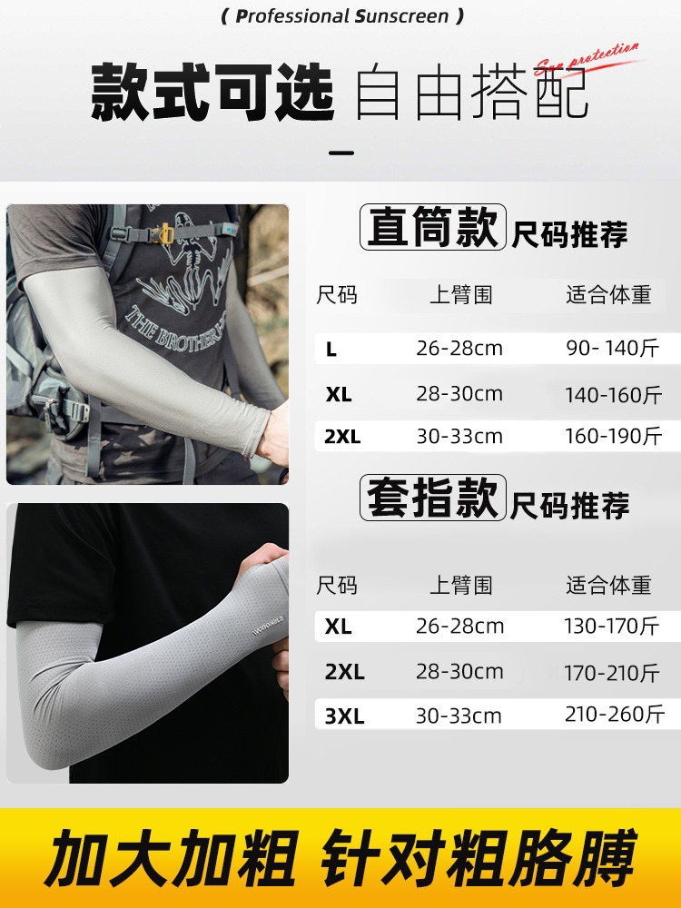 防晒袖套男加大码粗宽松夏季防紫外线女冰丝护臂冰感袖套男冰袖