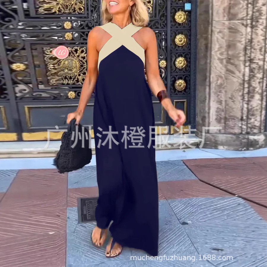 2026夏季新款跨境女装亚马逊速卖通外贸长裙交叉性感美背连衣裙