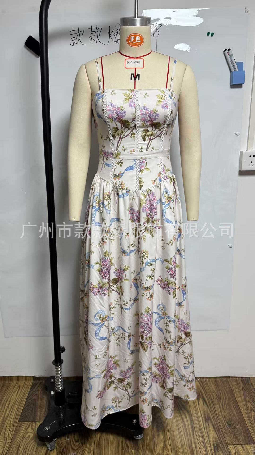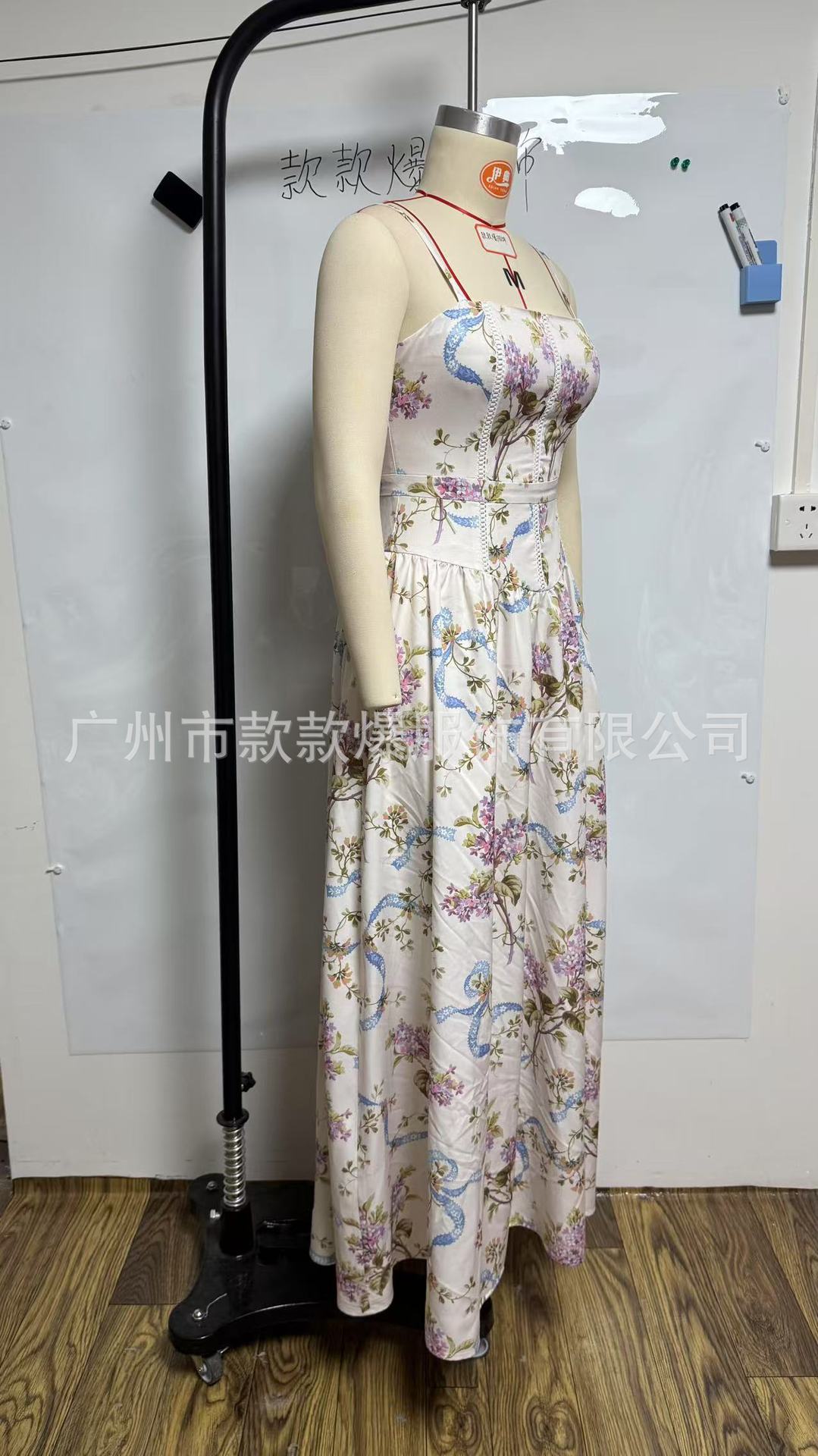 新款亚马逊跨境欧美气质优雅温柔风显瘦碎花吊带连衣裙仙气
