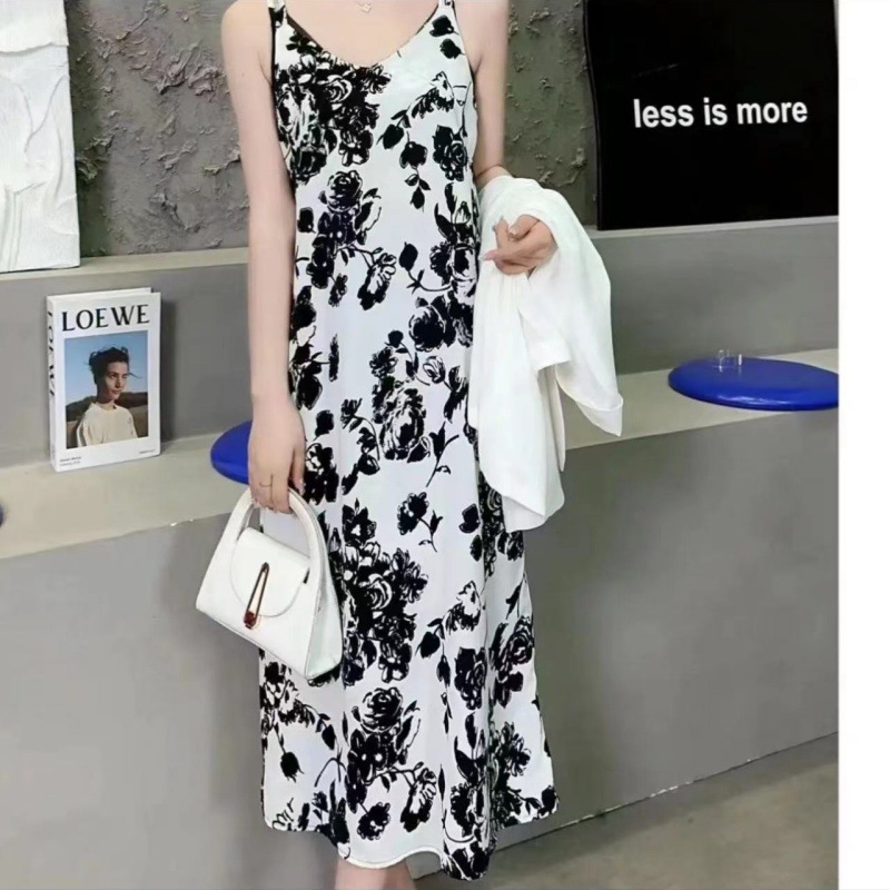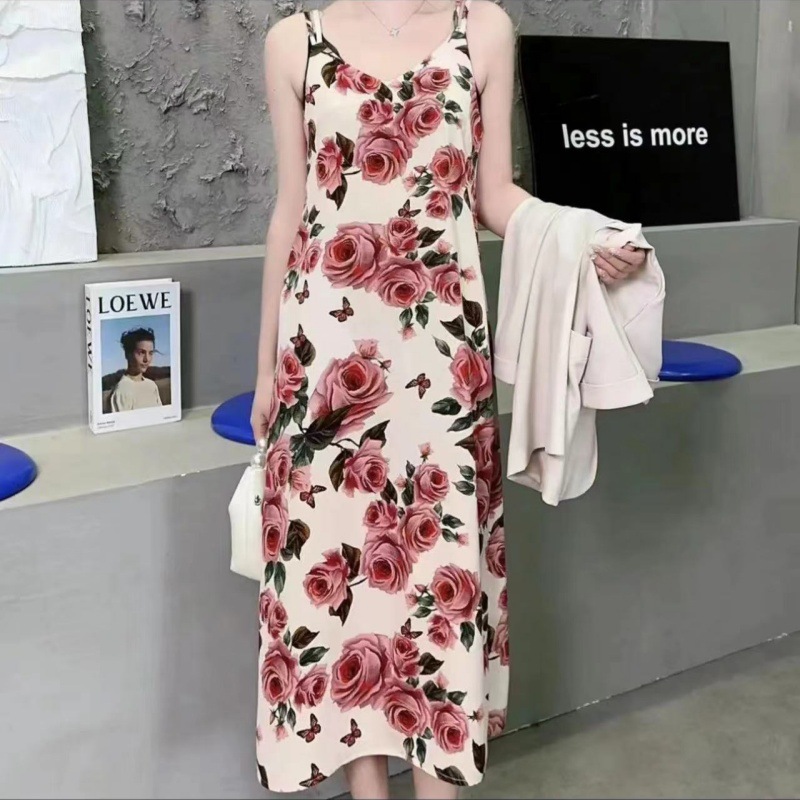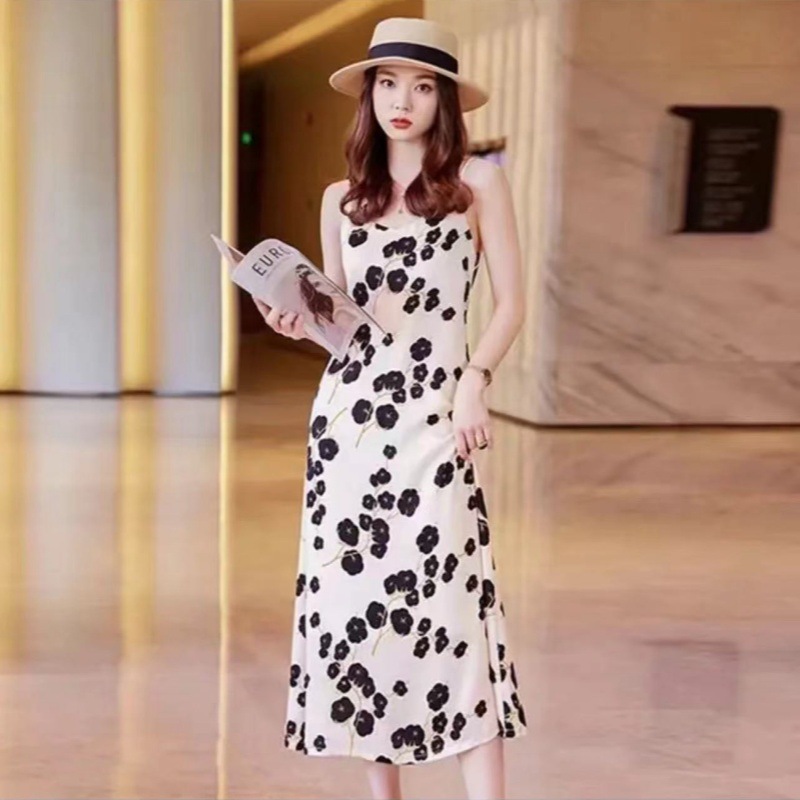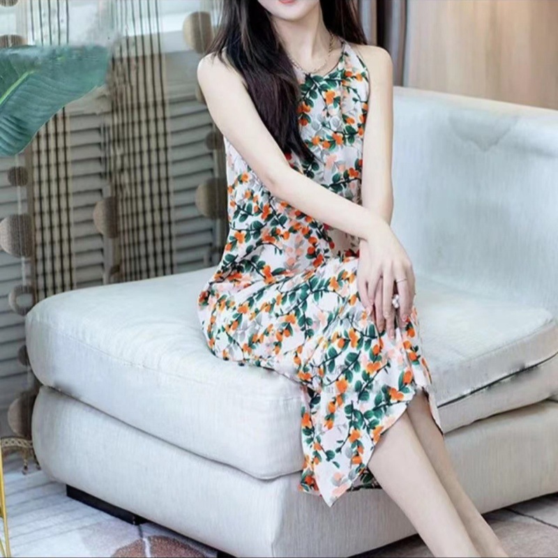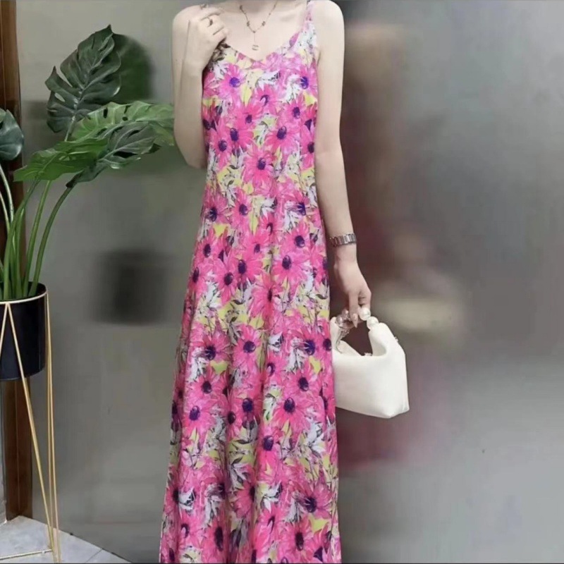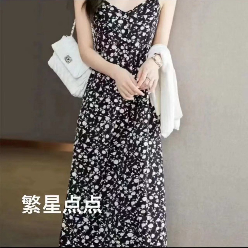 连衣裙气质印花吊带裙碎花时尚长裙女无袖新中式吊带裙碎花裙外穿