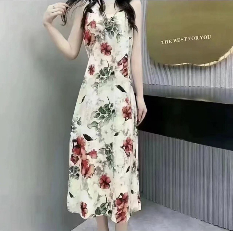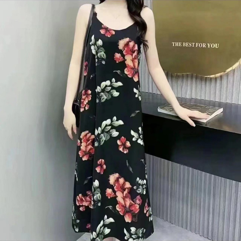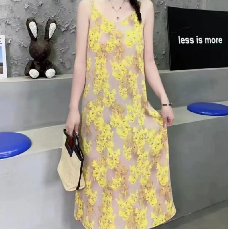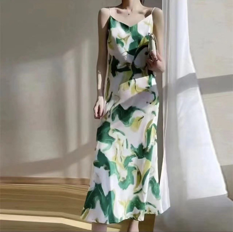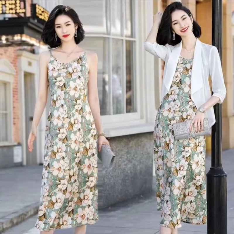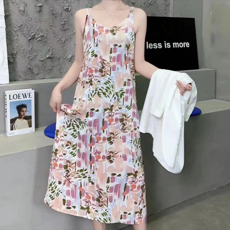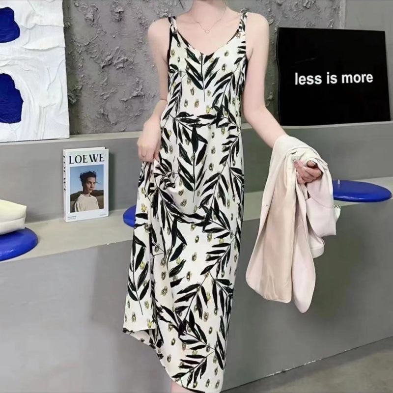 连衣裙气质印花吊带裙碎花时尚长裙女无袖新中式吊带裙碎花裙外穿