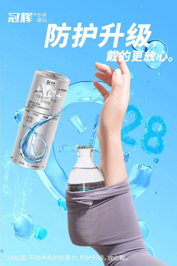 冠辉夏季防晒防紫外线冰袖冰丝7A透气袖子户外骑行伴手礼护臂批发