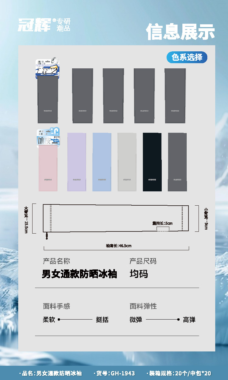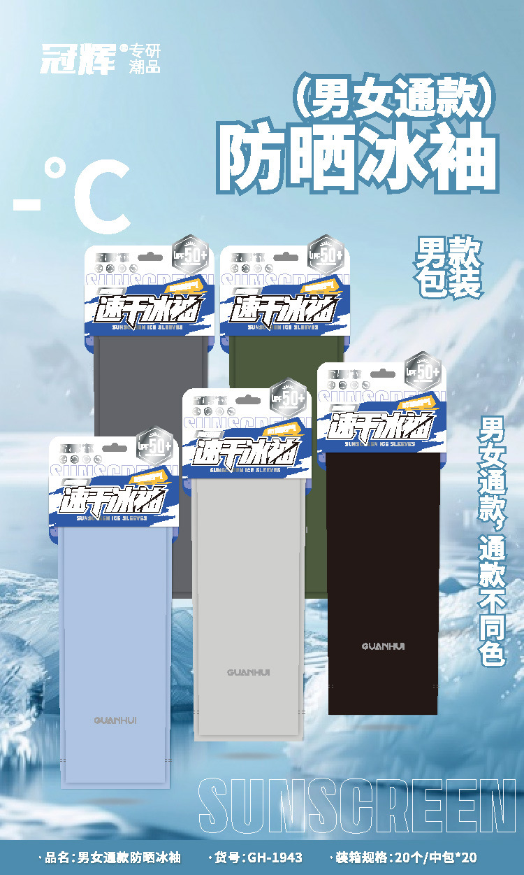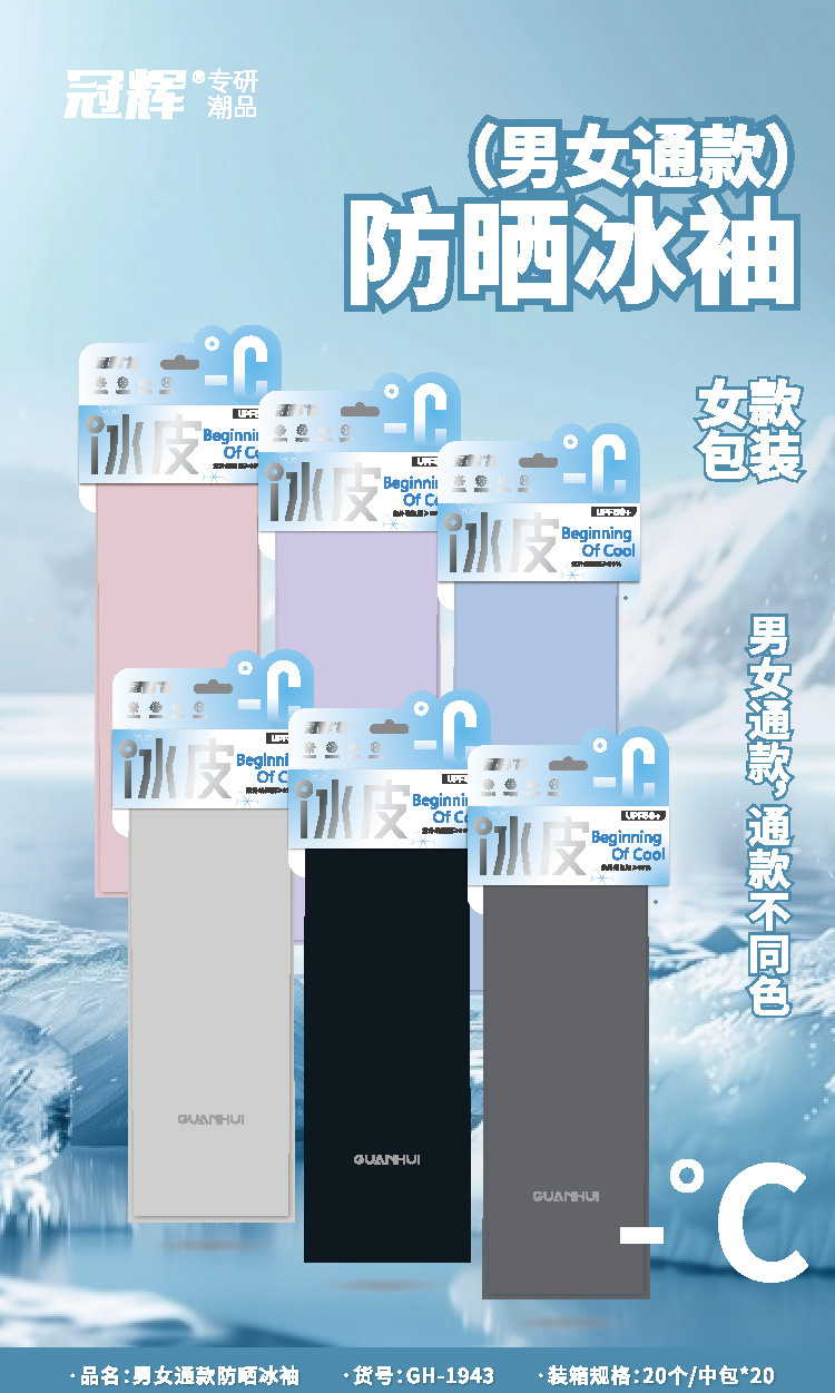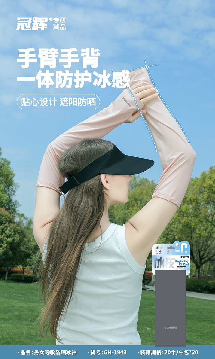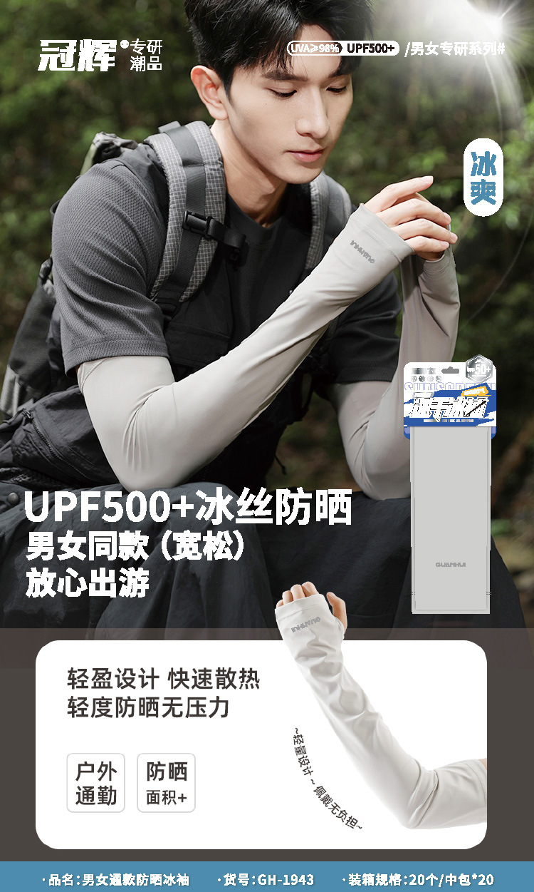冠辉冰袖男女款夏季防晒袖套宽松透气户外骑行套袖防紫外线冰丝手