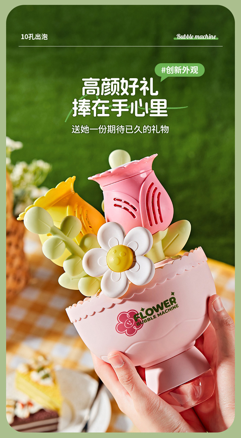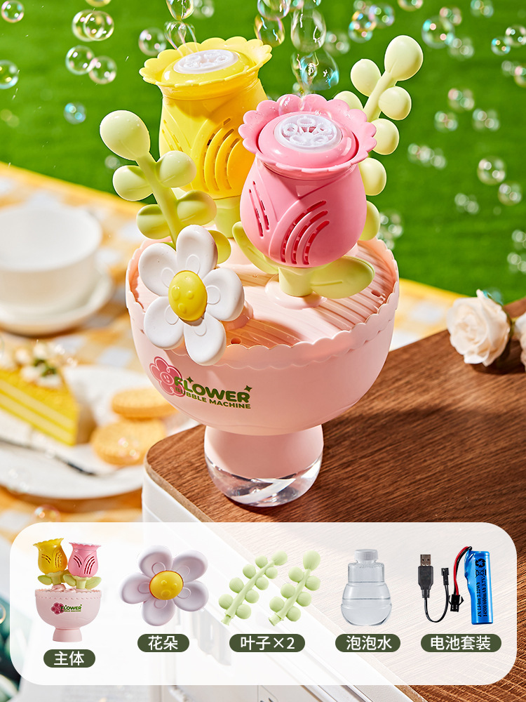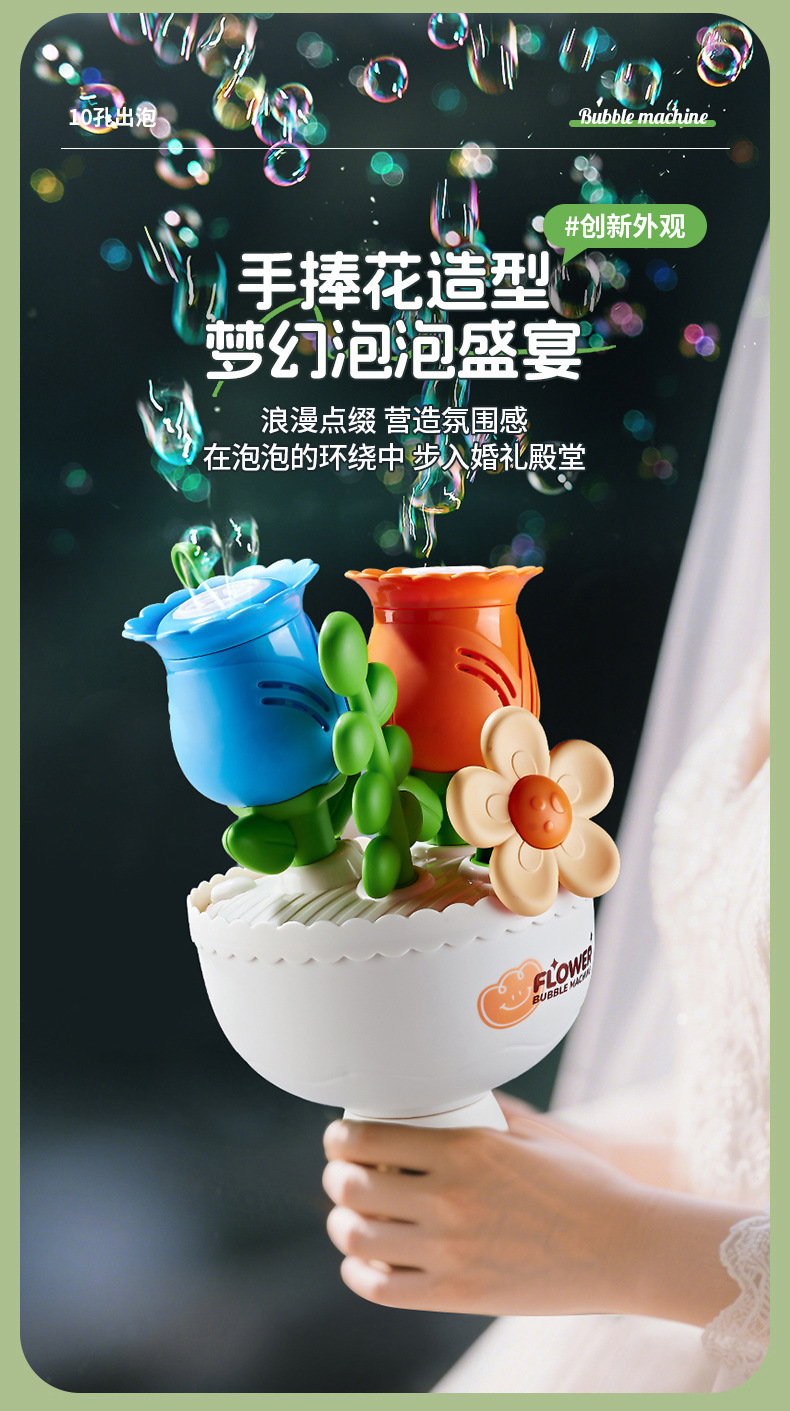手捧花束泡泡机婚礼道具全自动出泡发光地摊儿童玩具生日庆典礼物