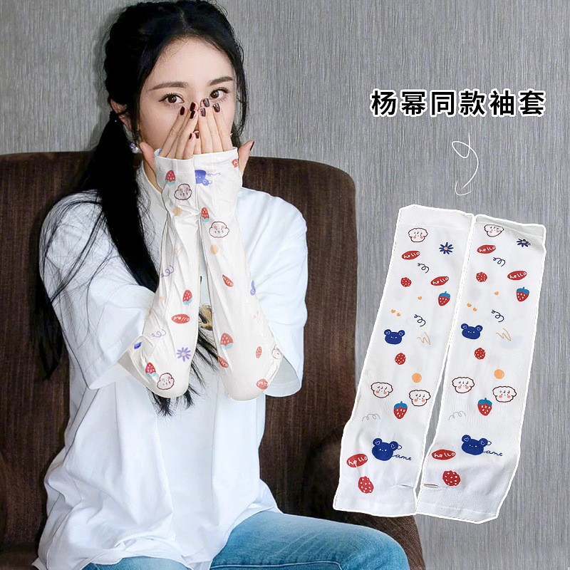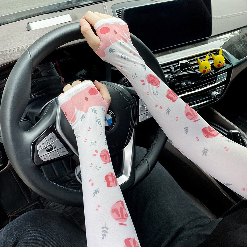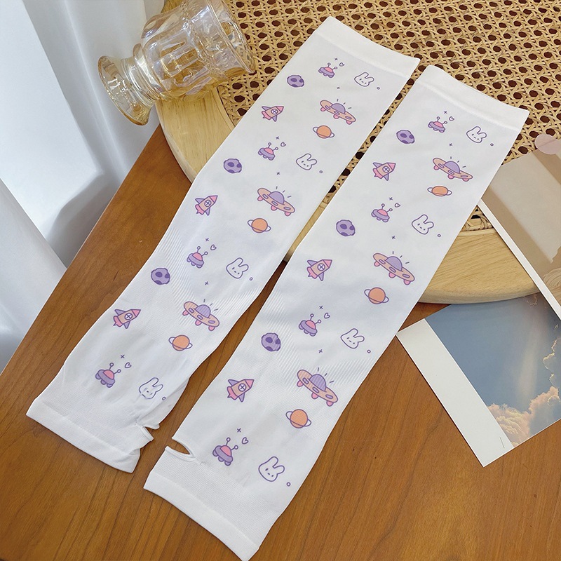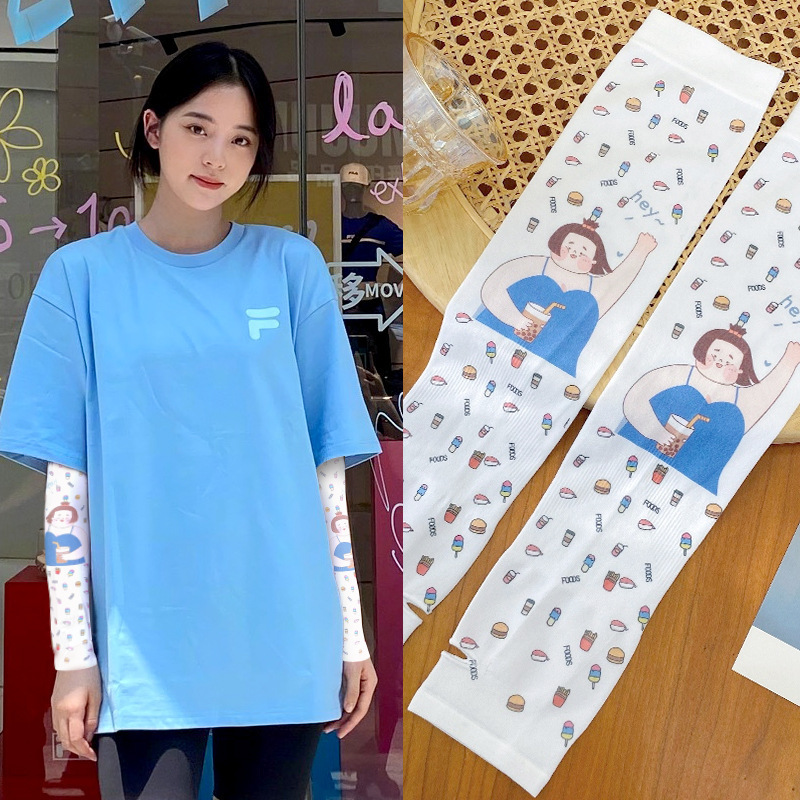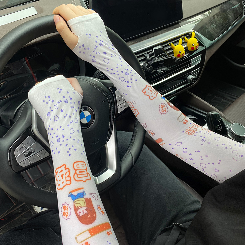 印花卡通驱蚊冰袖女韩国网红夏季户外冰丝防晒袖套可爱护臂防晒袖