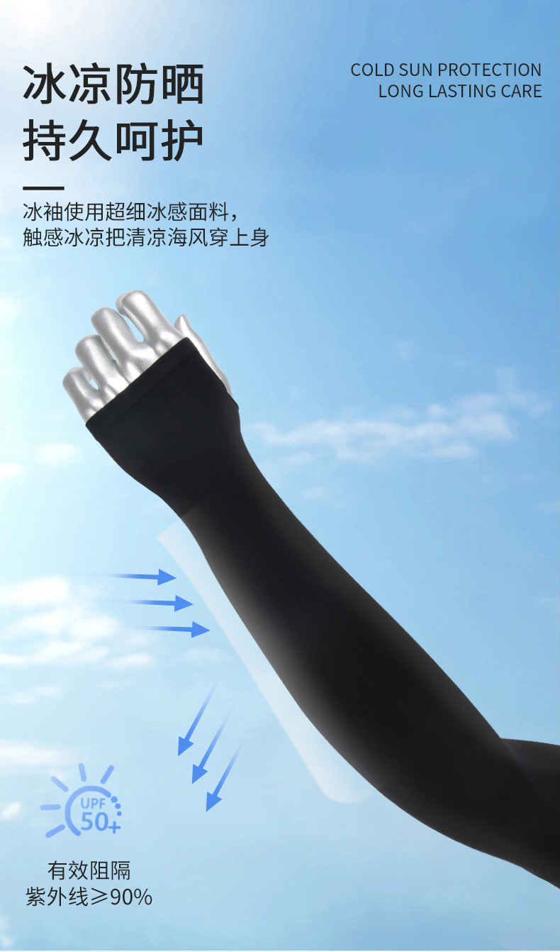 加长冰袖厂家批发冰丝袖防晒袖套女夏季防紫外线冰爽男女护臂套