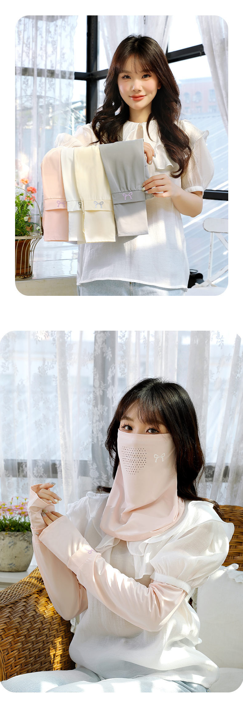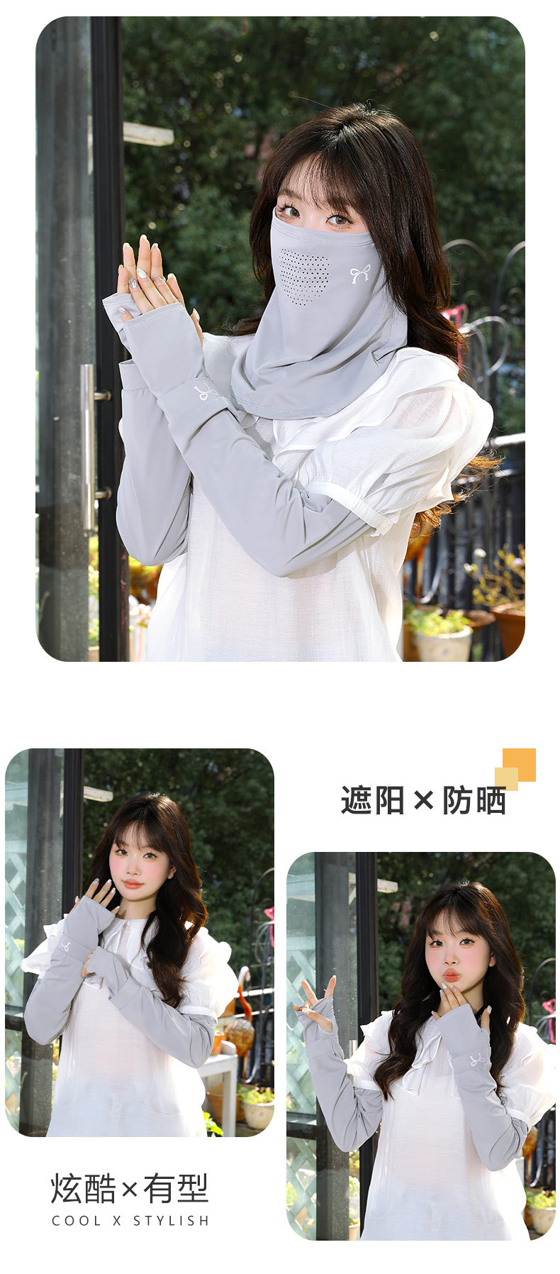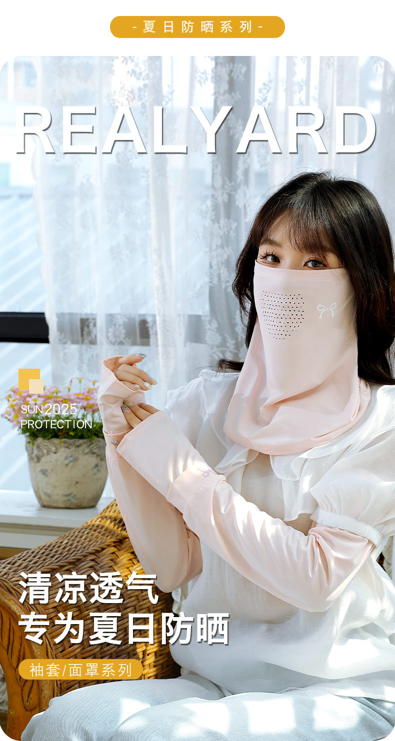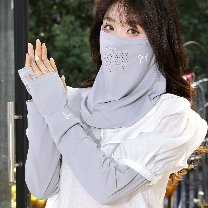 防晒面罩袖套两件套女夏季围脖冰丝户外女士挂耳脖套遮脸护颈冰袖