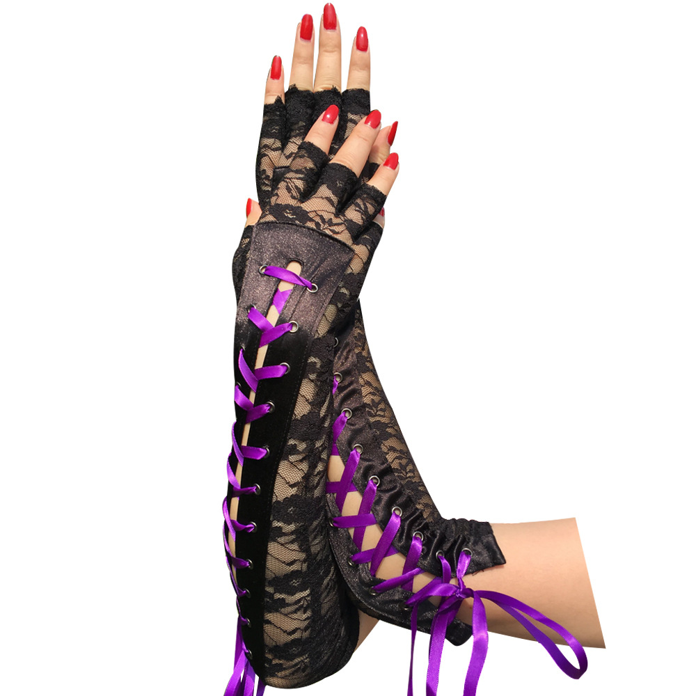 长款蕾丝半指手套jk蕾丝绑带手套黑色复古lolita潮暗黑朋克手袖套