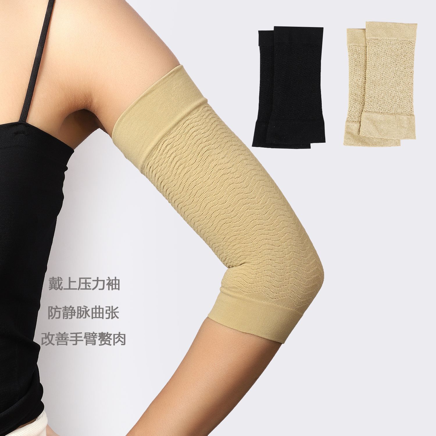 跨境塑型压力袖套保护肘胳膊弹力套男女轻薄束臂瑜伽手臂防晒护套