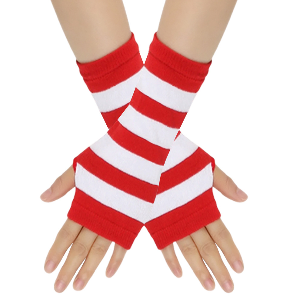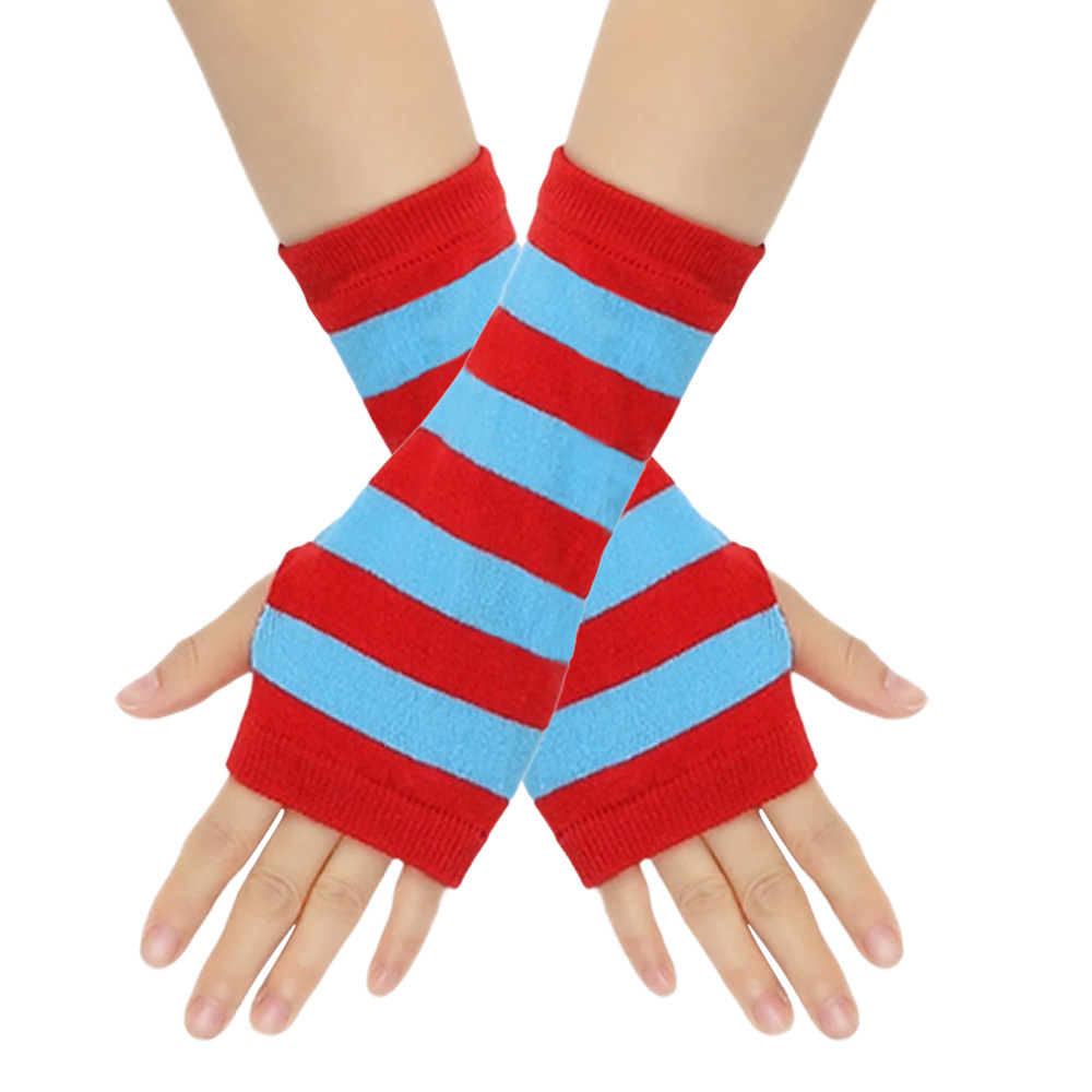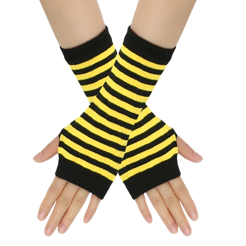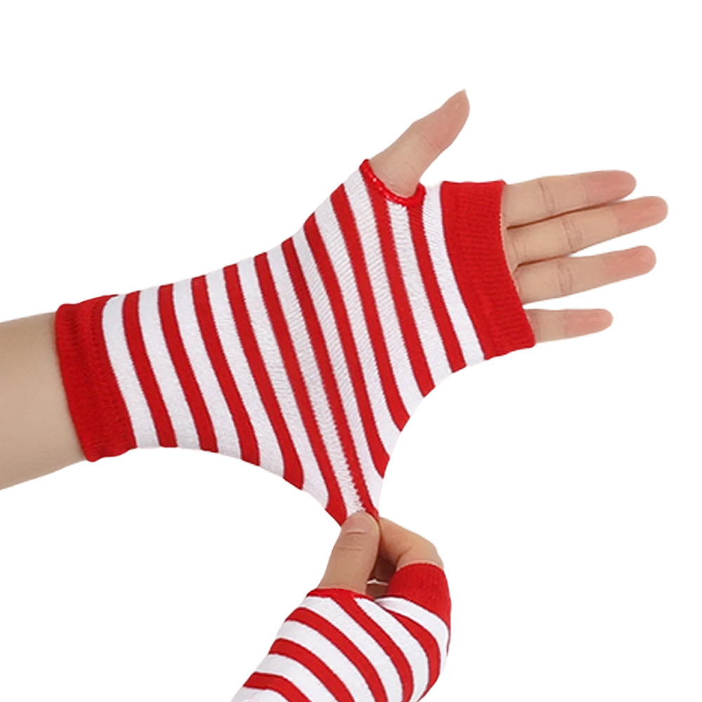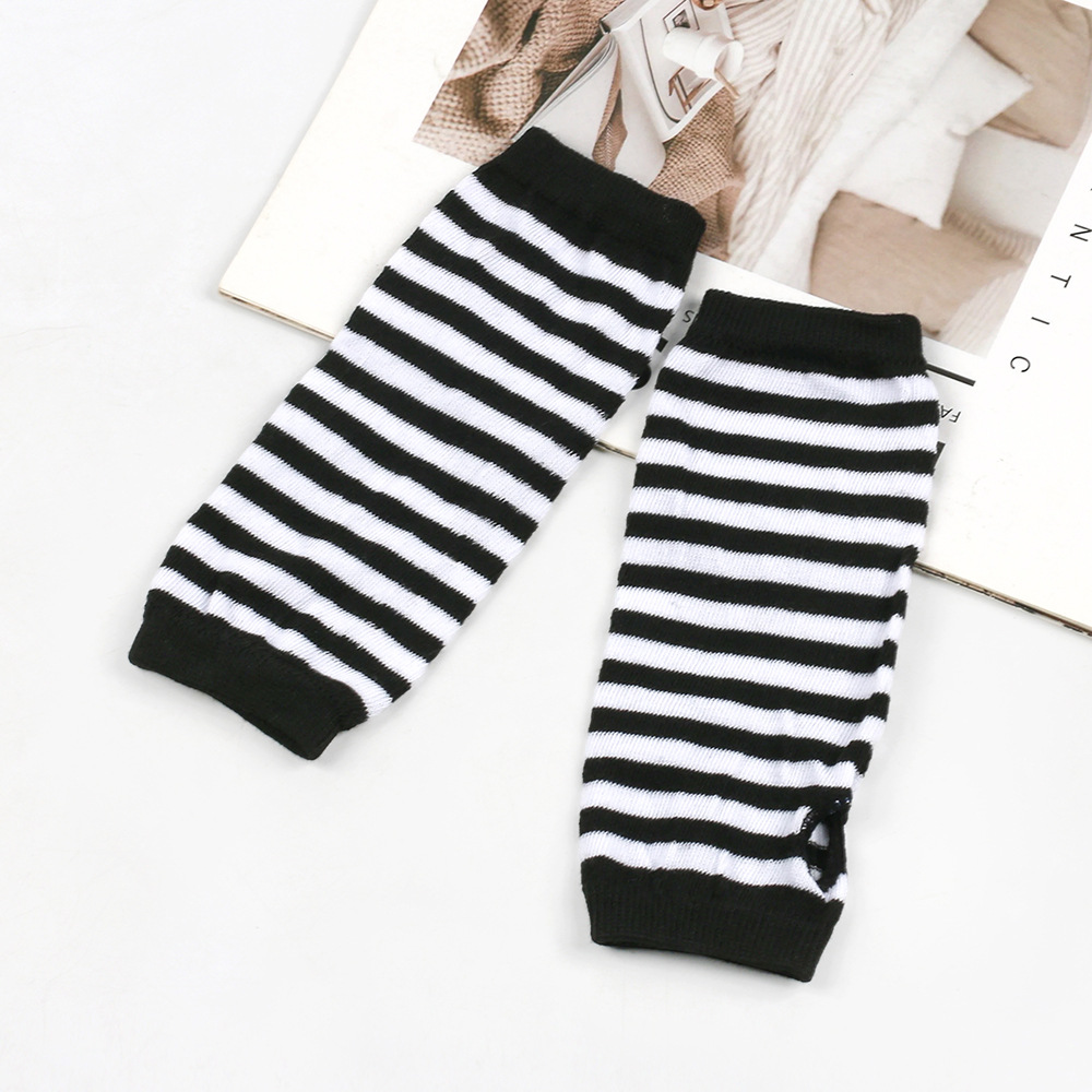 跨境针织漏指手套cospla动漫条纹穿指手腕袖套儿童露指手臂套薄款