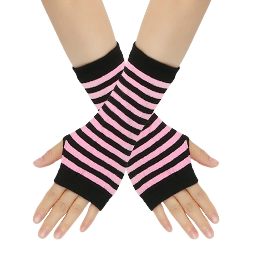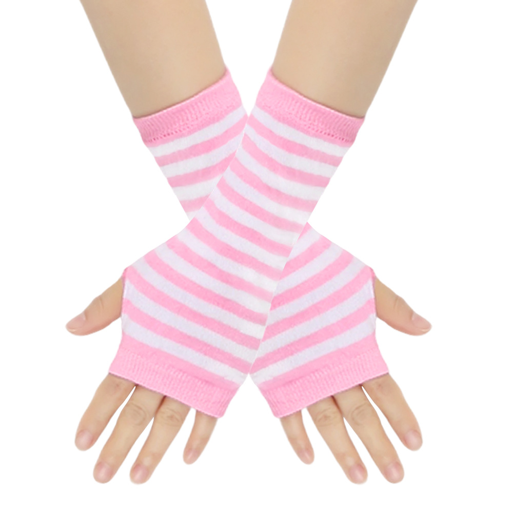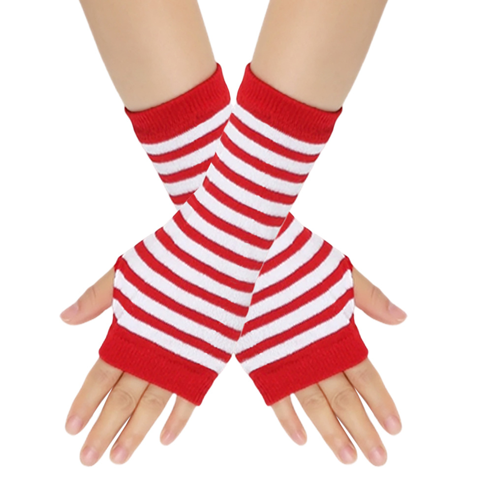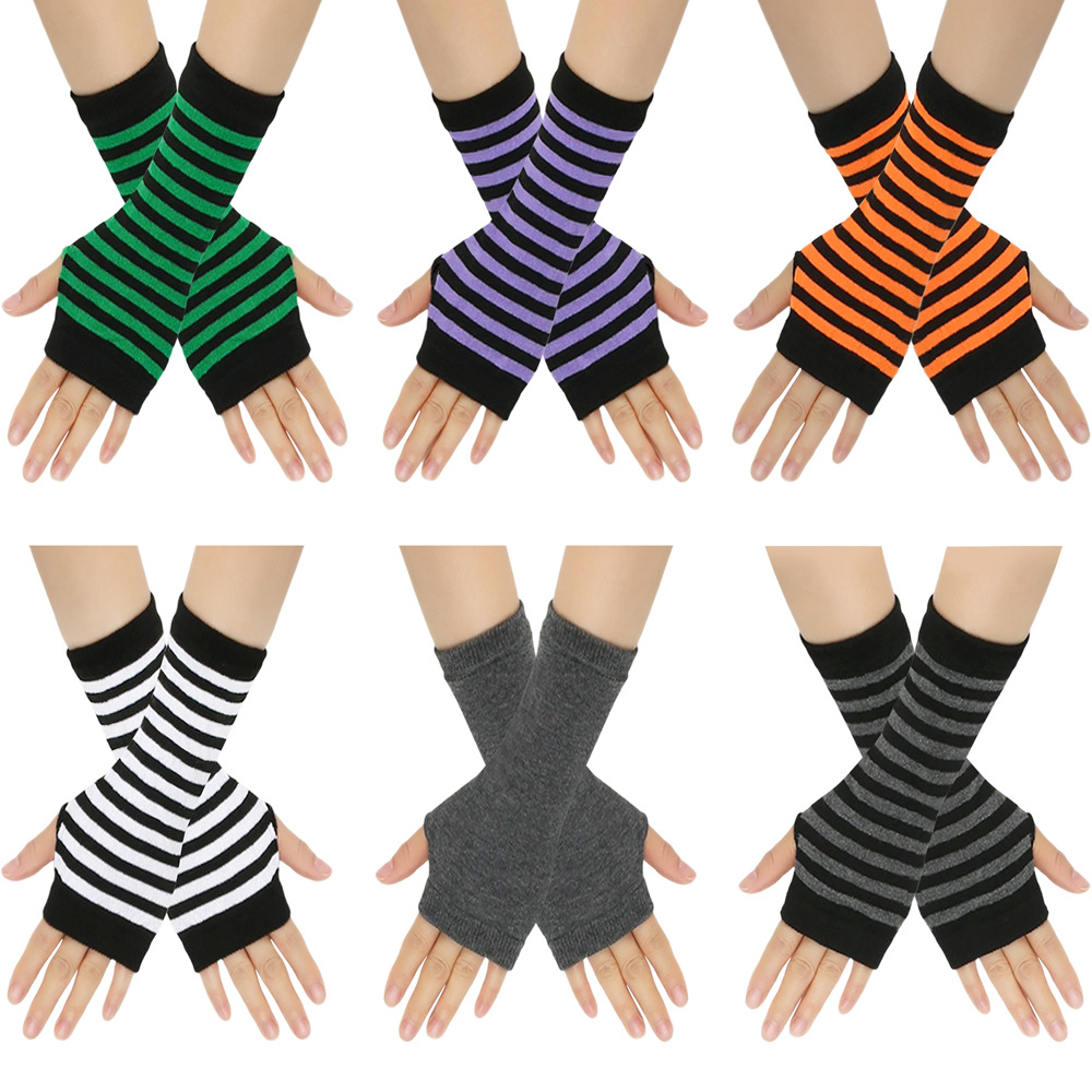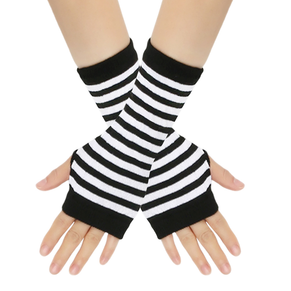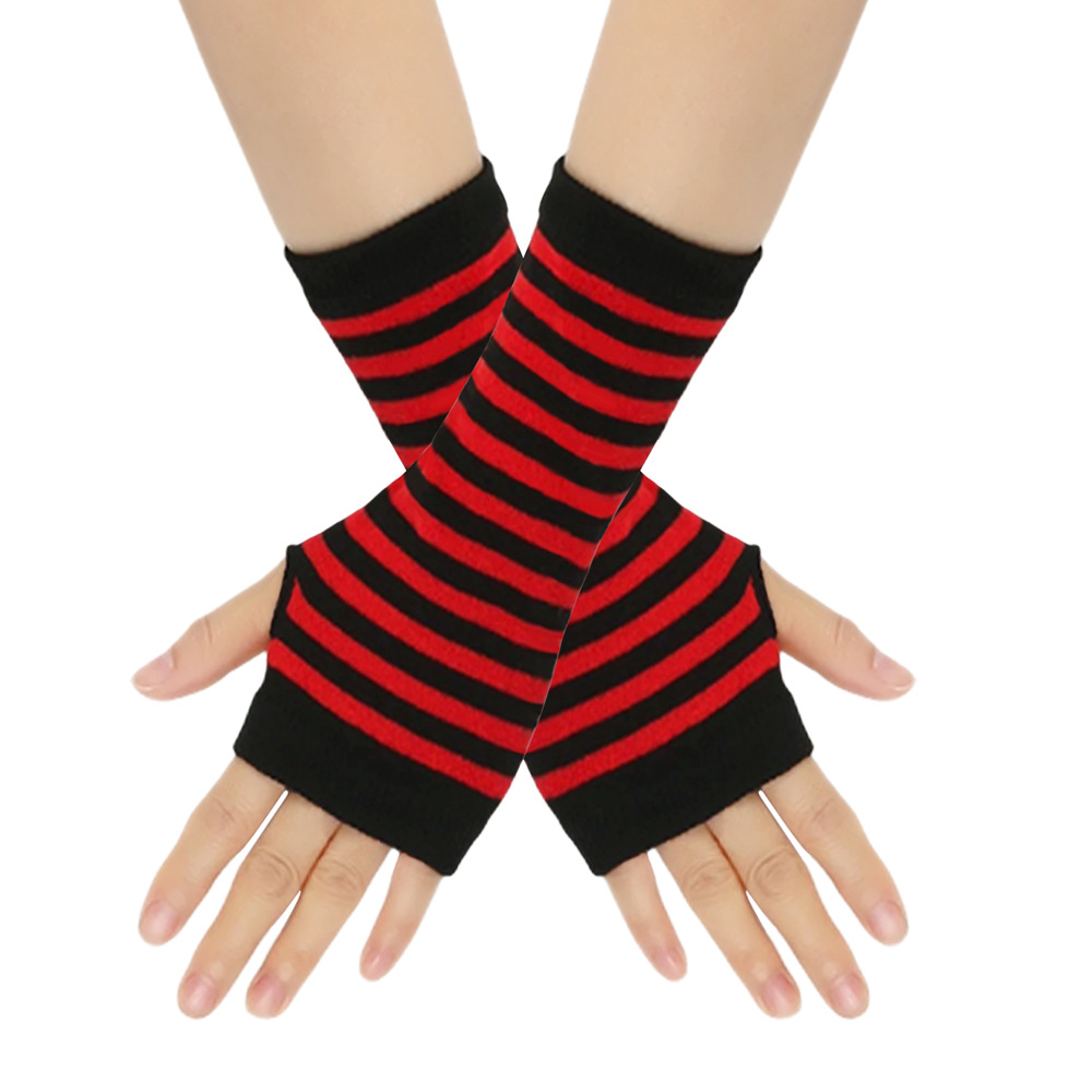 跨境针织漏指手套cospla动漫条纹穿指手腕袖套儿童露指手臂套薄款